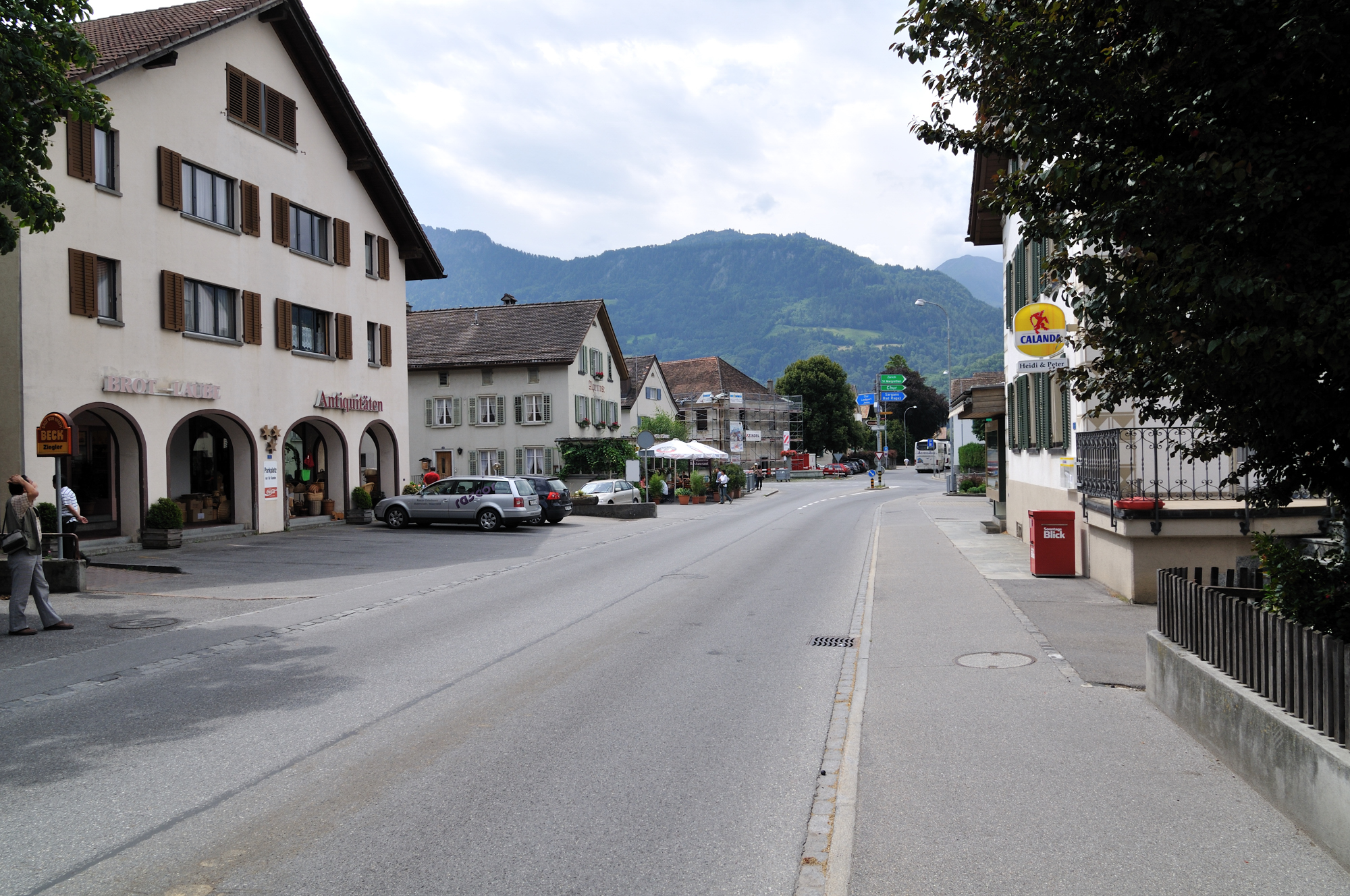 | サン・モリッツ[Saint Moritz]からマイエンフェルト[Maienfeld]へ ローマ街道のひとつでもあった歴史的なユリア峠 [Julierpass] を通り抜けサン・モリッツからマイエンフェルトへ向かう。 ジュリアス・シーザー の名を冠するこのユリア峠 [Julierpass] はローマ皇帝ジュリアス・シーザーが開設した古い峠道であり、アルブラ山群を越えて中央スイスさらには中部ヨーロッパへとつながる古代より交易・軍事上で重要な位置を占める峠道である。 そのことを裏付けるかのごとく、今でも戦車の通行阻害のための大きな石が、道路以外の峠を塞いでいる。 常備軍をもたないスイスでは、兵役はすべての20~42歳の男子の義務であり、兵役終了後はライフル銃、制服、その他の備品を各自の家で保管しているため、有事の際には48時間以内に臨戦態勢がとれるとのこと。 (過去に、これらの武器による犯罪は皆無) また、全ての国民を収容するため、多くの核シェルターを町の要所に設置している。 (平時は食料倉庫などに利用している) |