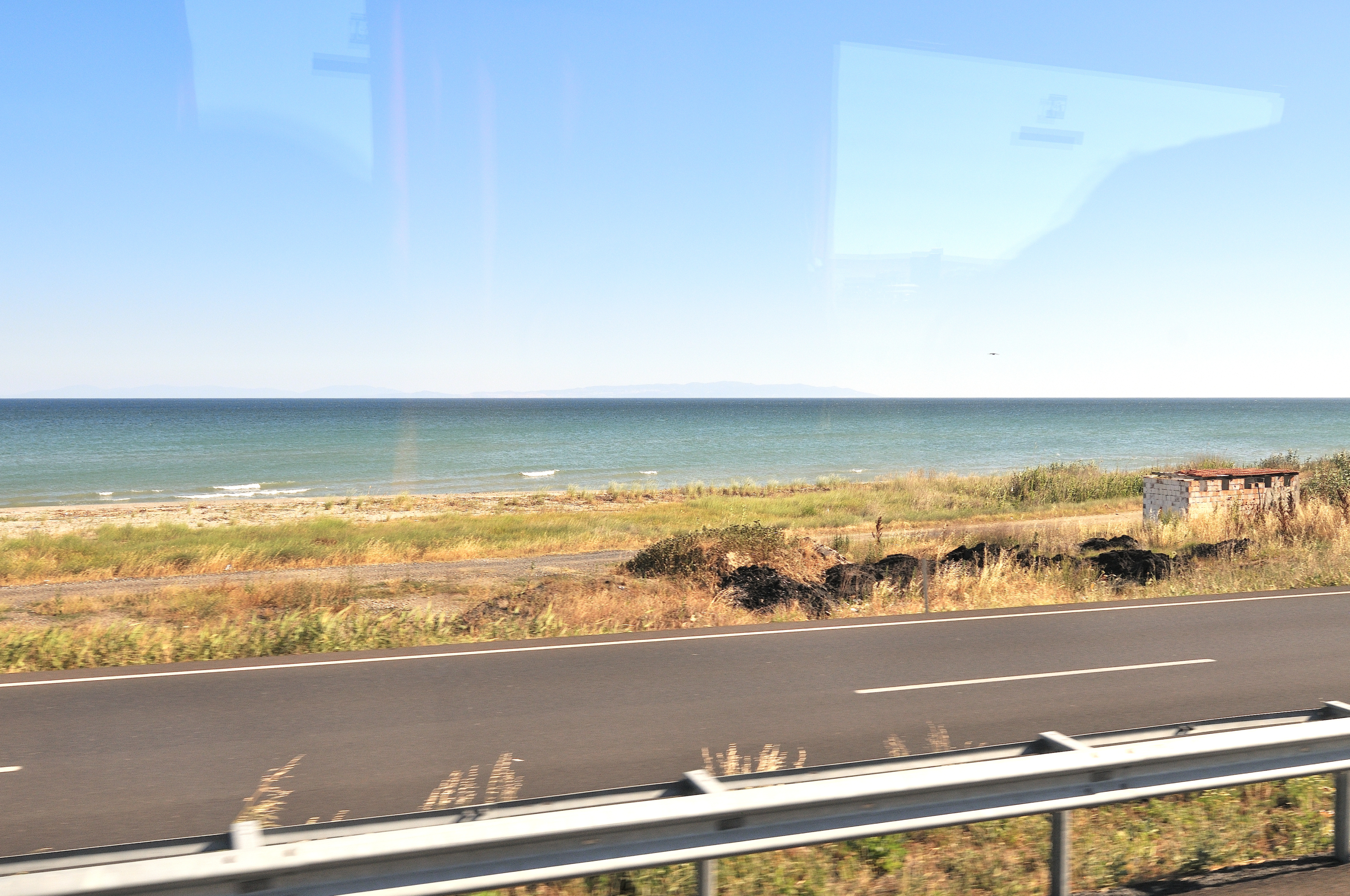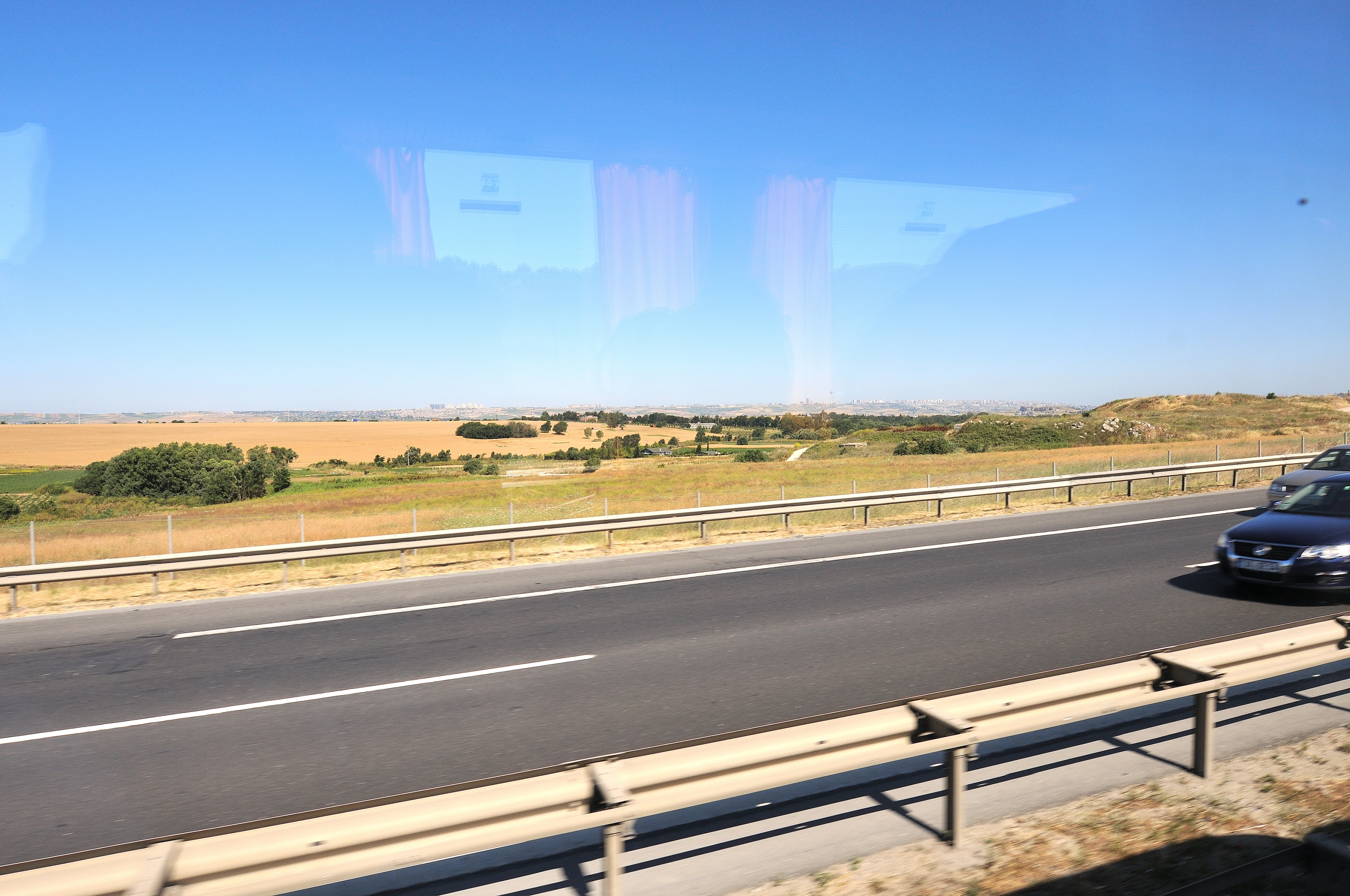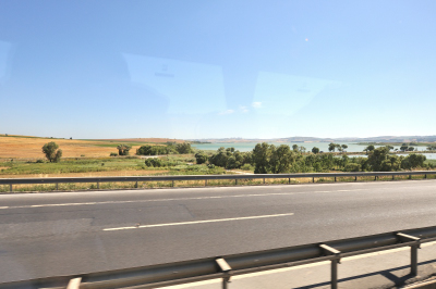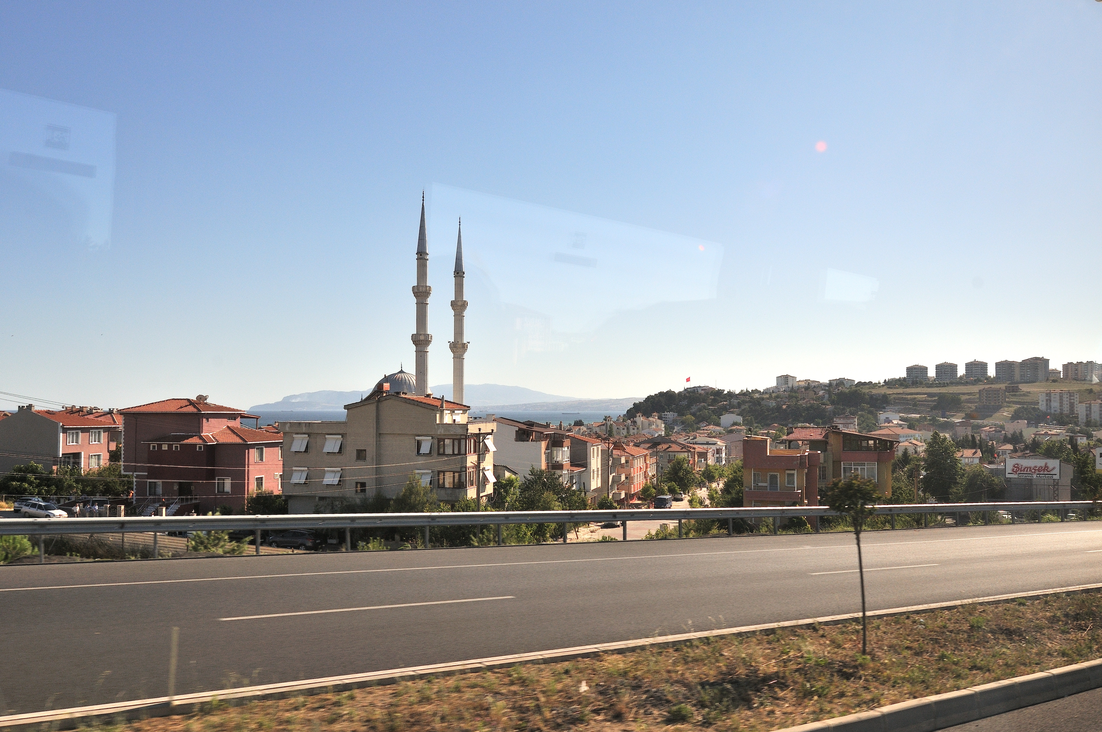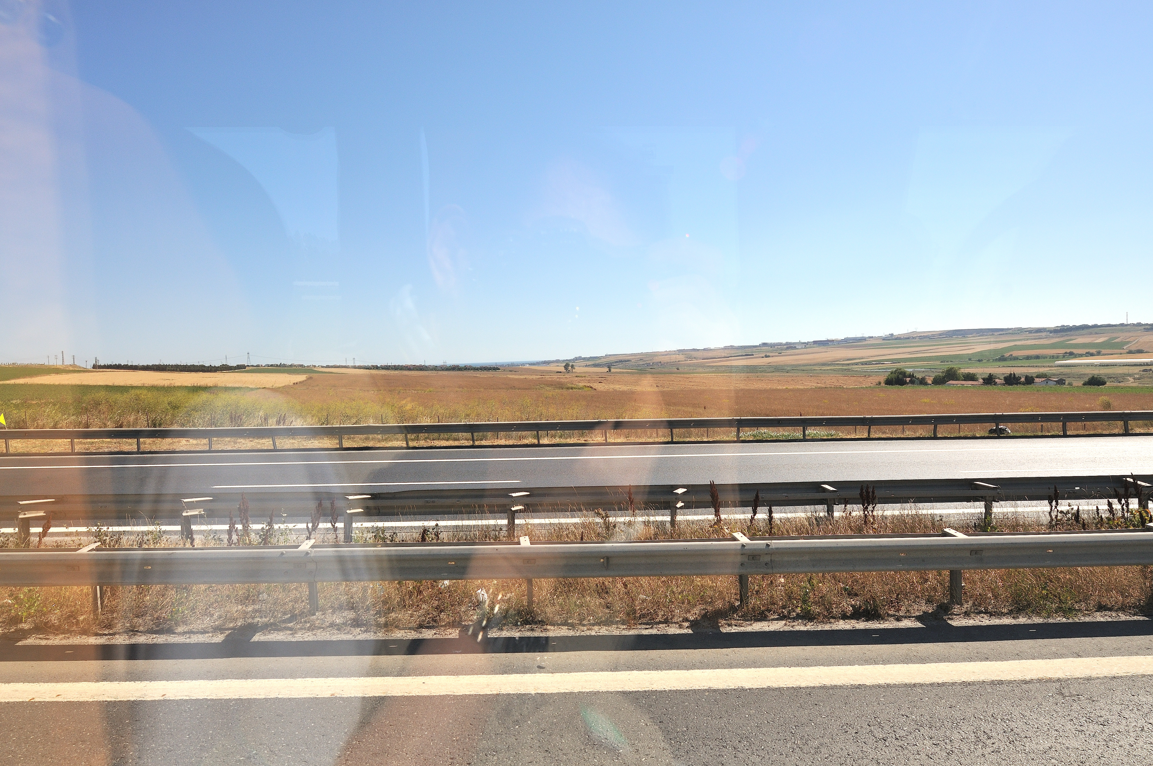 | イスタンブール空港 [Atatürk Havalimanı] ~ ゲリボル港 [Gelibolu Limanı] イスタンブール空港 (アタチュルク国際空港) に 14:55 到着 (TK47便) その後バスに乗り換え、マルマラ海 [Marmara Denizi] に沿ってヨーロッパ側にあるゲリボル港へ向かう。 車窓からの風景はマルマラ海、向日葵畑、麦畑が主で、長閑な風景が広がっている。 マルマラ海の呼び名は大理石を意味する "Mermer" が起源と言われ、トルコではマルマラ海に浮かぶマルマラ島を始め、各地で多くの大理石が採石されている。 向日葵は、ひまわり油と種子の採取を目的として、多く栽培され、最盛期には美しい景色の造形にも、一役買っている。 |