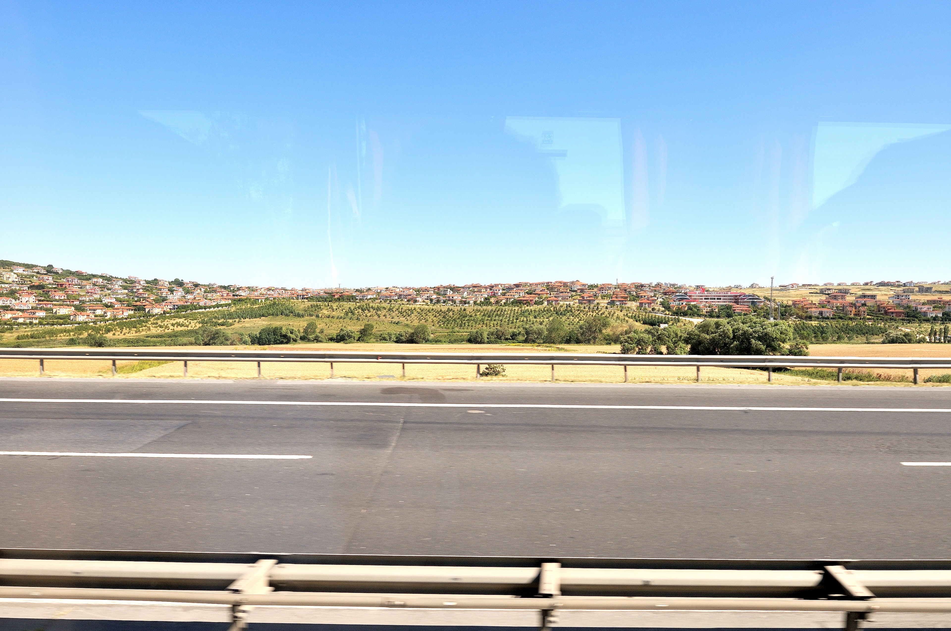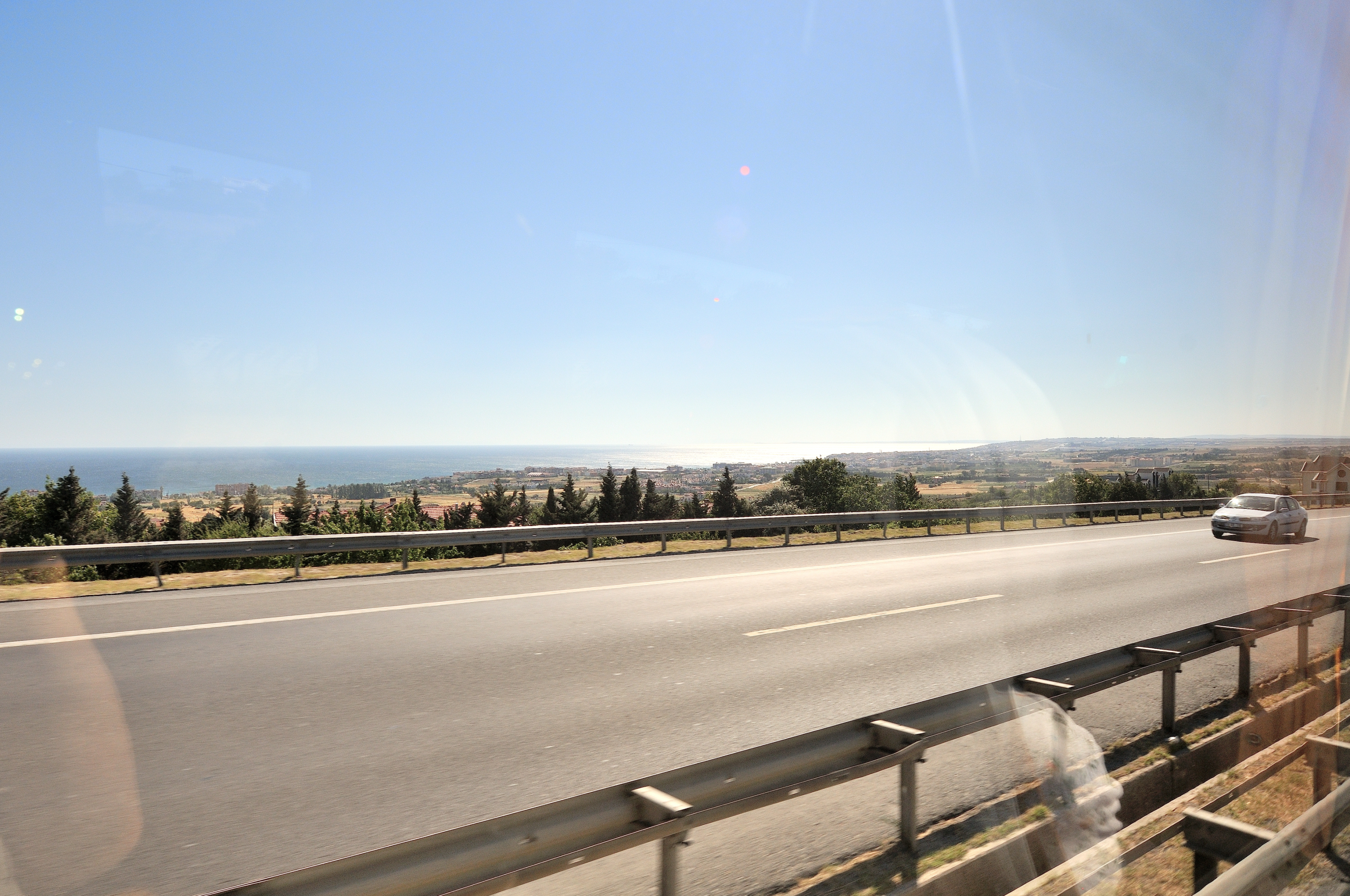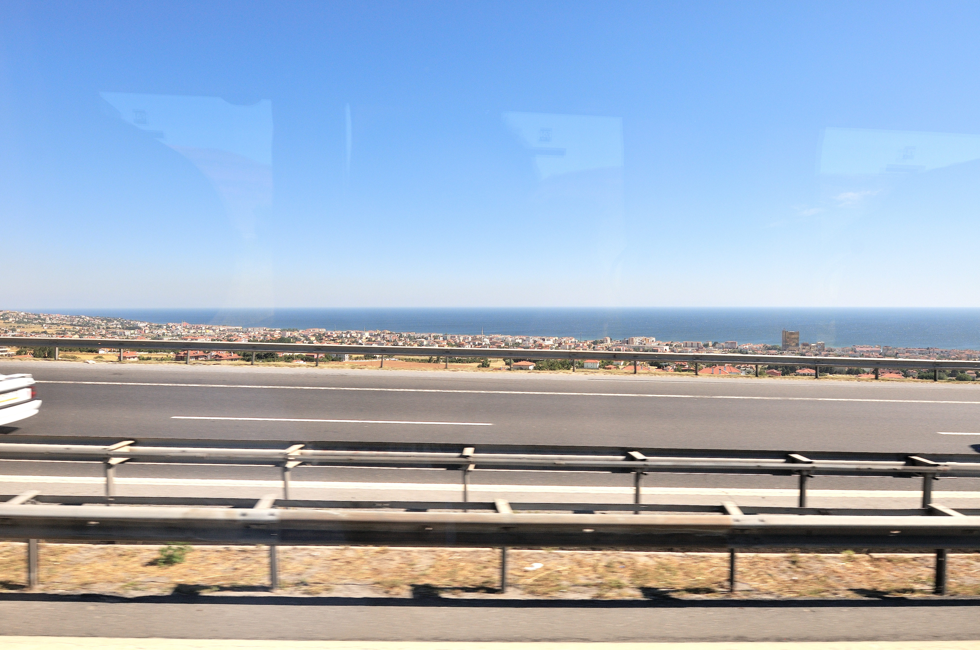 | イスタンブール空港 [Atatürk Havalimanı] ~ ゲリボル港 [Gelibolu Limanı] イスタンブール空港 (アタチュルク国際空港) に 14:55 到着 (TK47便) その後バスに乗り換え、マルマラ海 [Marmara Denizi] に沿ってヨーロッパ側にあるゲリボル港へ向かう。 車窓からの風景はマルマラ海、向日葵畑、麦畑が主で、長閑な風景が広がっている。 マルマラ海の呼び名は大理石を意味する "Mermer" が起源と言われ、トルコではマルマラ海に浮かぶマルマラ島を始め、各地で多くの大理石が採石されている。 向日葵は、ひまわり油と種子の採取を目的として、多く栽培され、最盛期には美しい景色の造形にも、一役買っている。 |