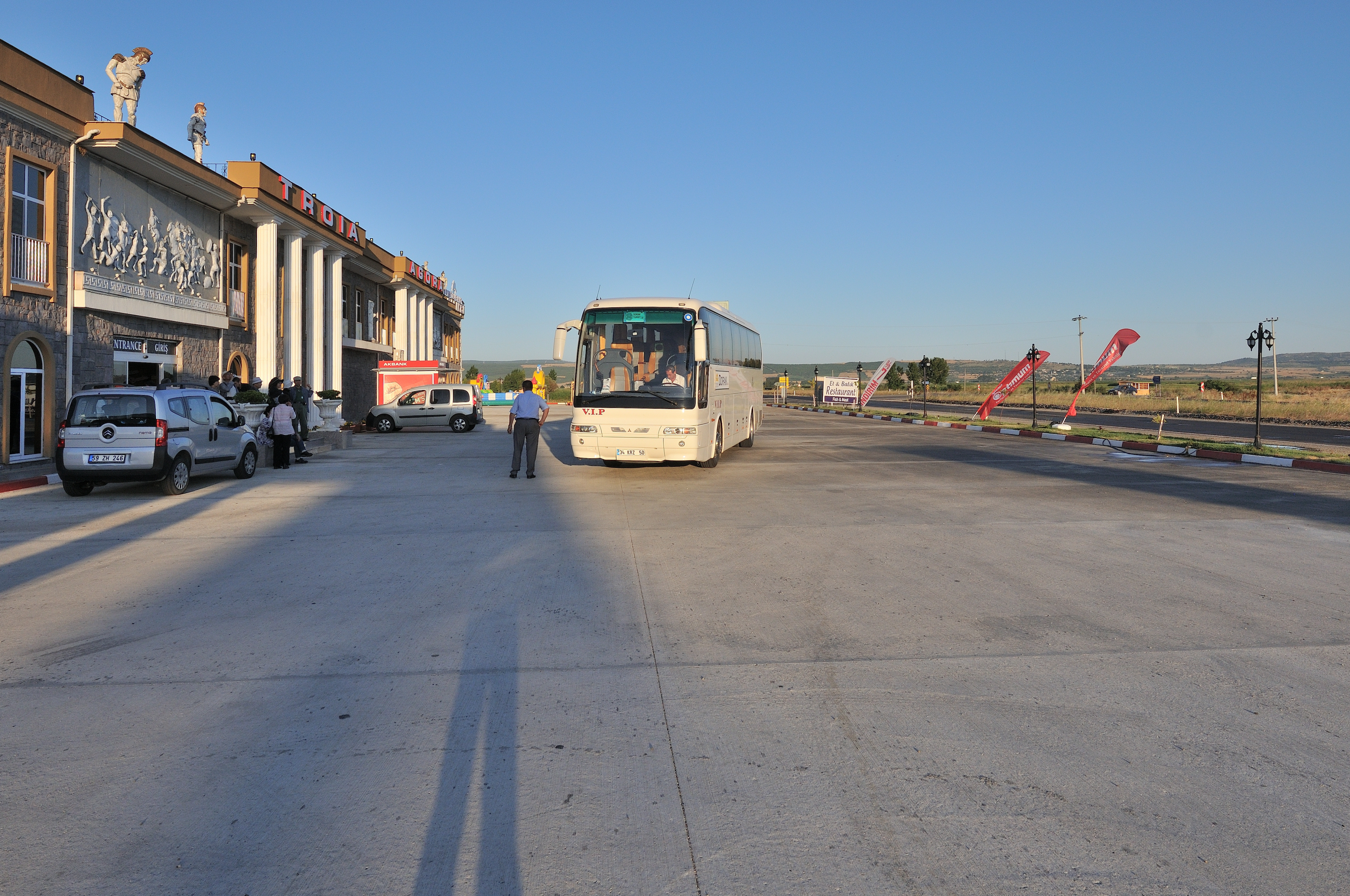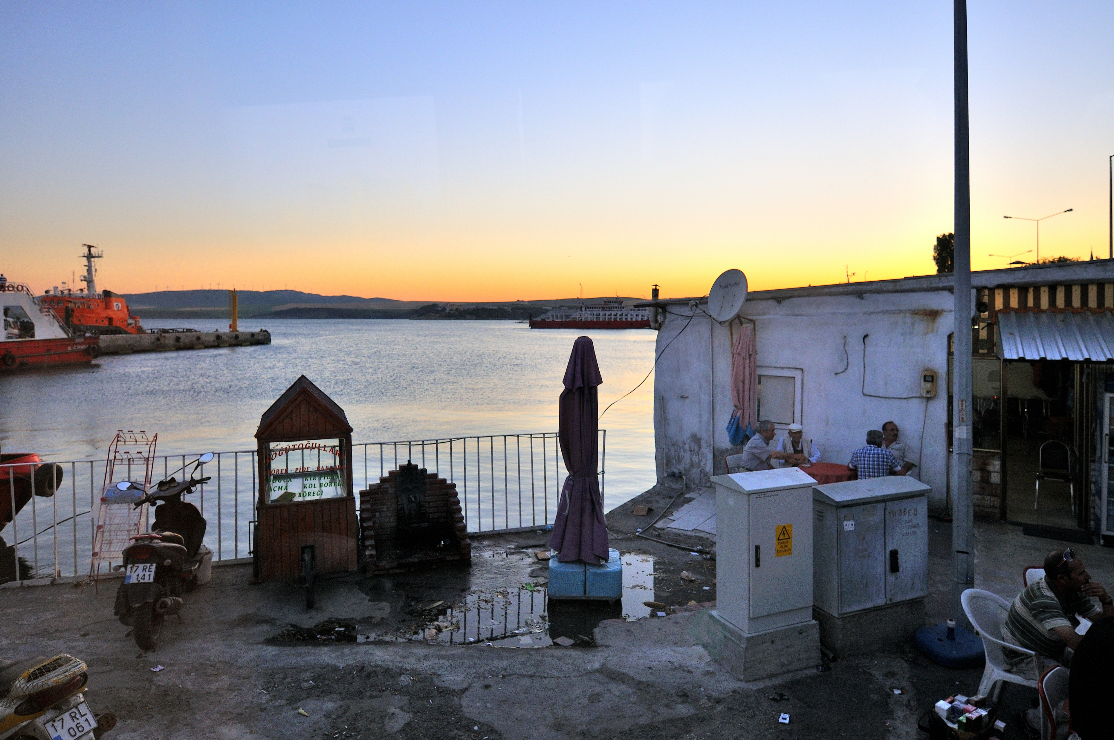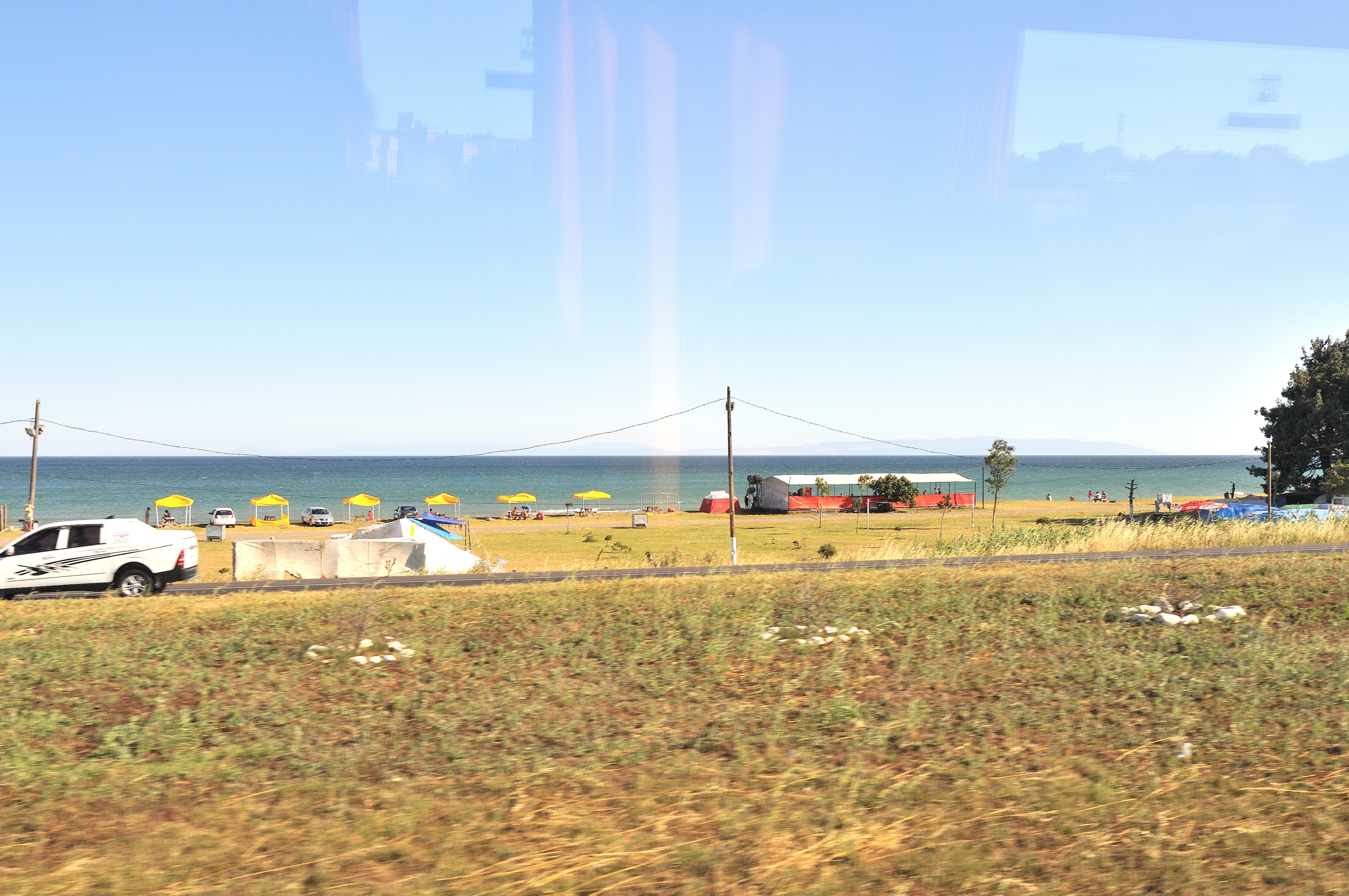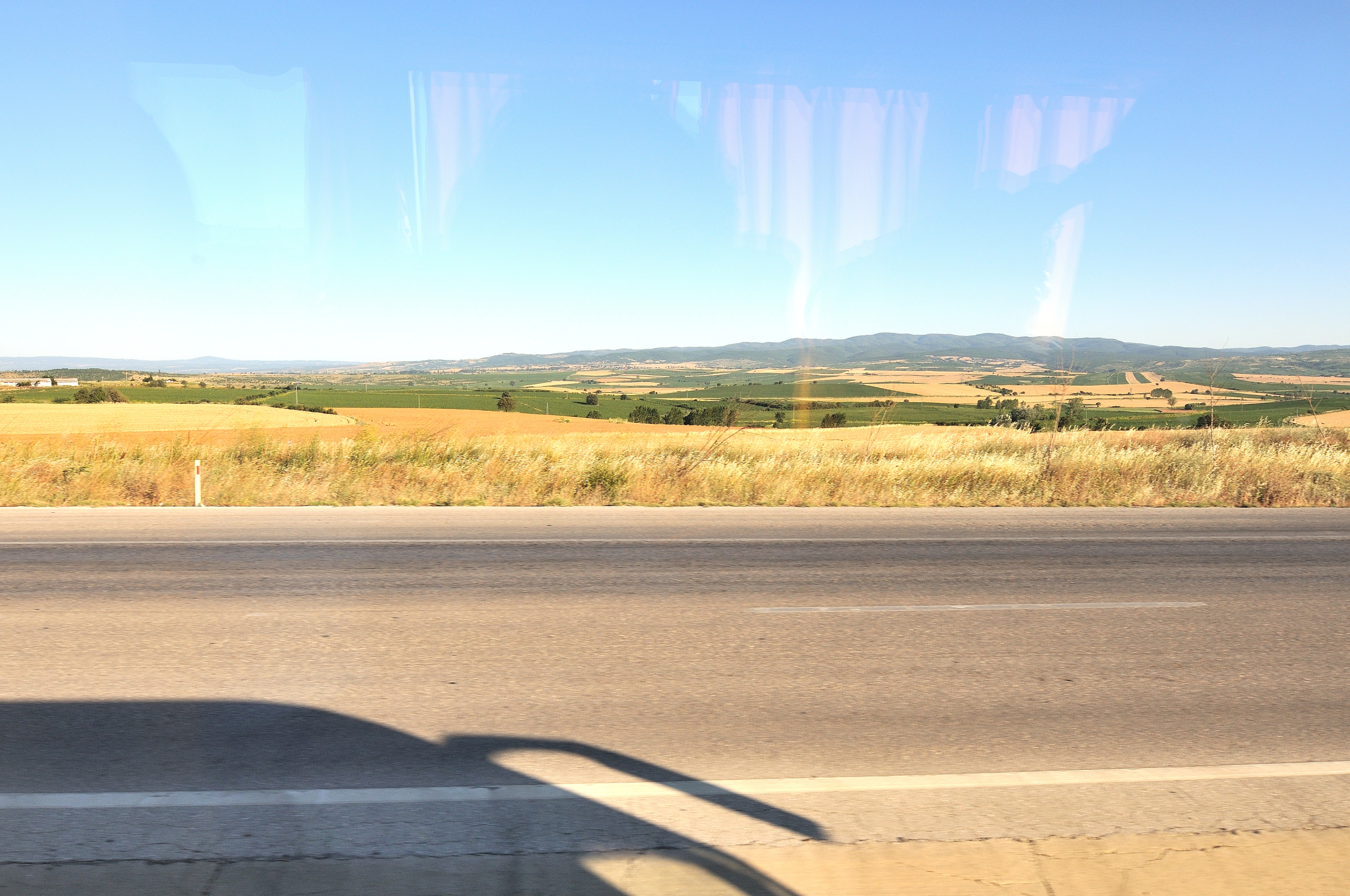 | イスタンブール空港 [Atatürk Havalimanı] ~ ゲリボル港 [Gelibolu Limanı] イスタンブール空港 (アタチュルク国際空港) に 14:55 到着 (TK47便) その後バスに乗り換え、マルマラ海 [Marmara Denizi] に沿ってヨーロッパ側にあるゲリボル港へ向かう。 車窓からの風景はマルマラ海、向日葵畑、麦畑が主で、長閑な風景が広がっている。 マルマラ海の呼び名は大理石を意味する "Mermer" が起源と言われ、トルコではマルマラ海に浮かぶマルマラ島を始め、各地で多くの大理石が採石されている。 向日葵は、ひまわり油と種子の採取を目的として、多く栽培され、最盛期には美しい景色の造形にも、一役買っている。 |