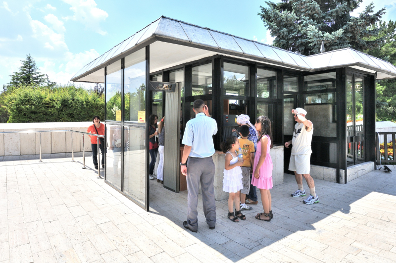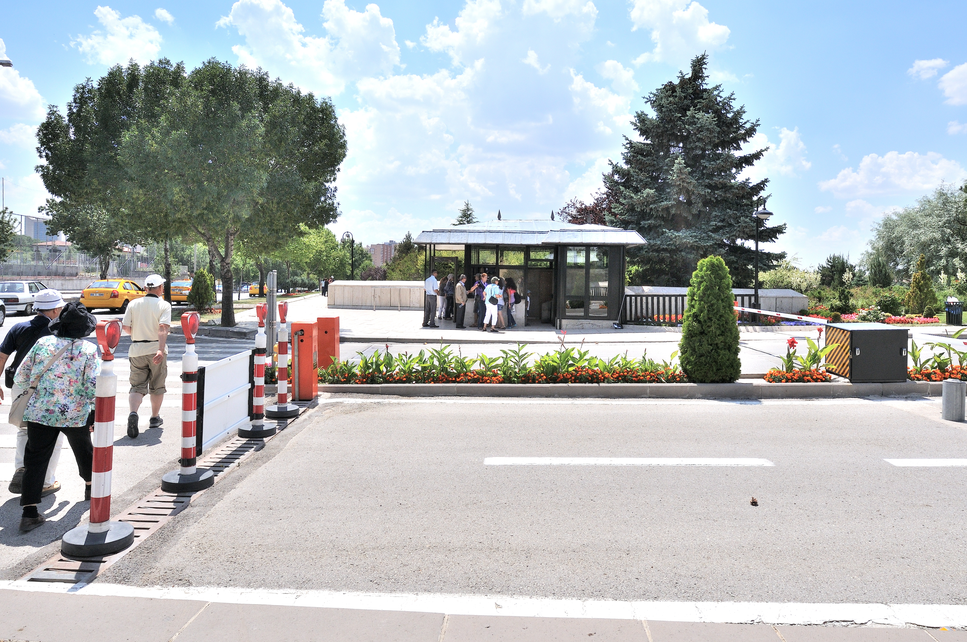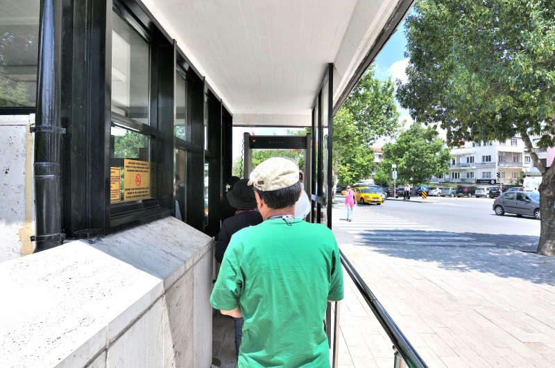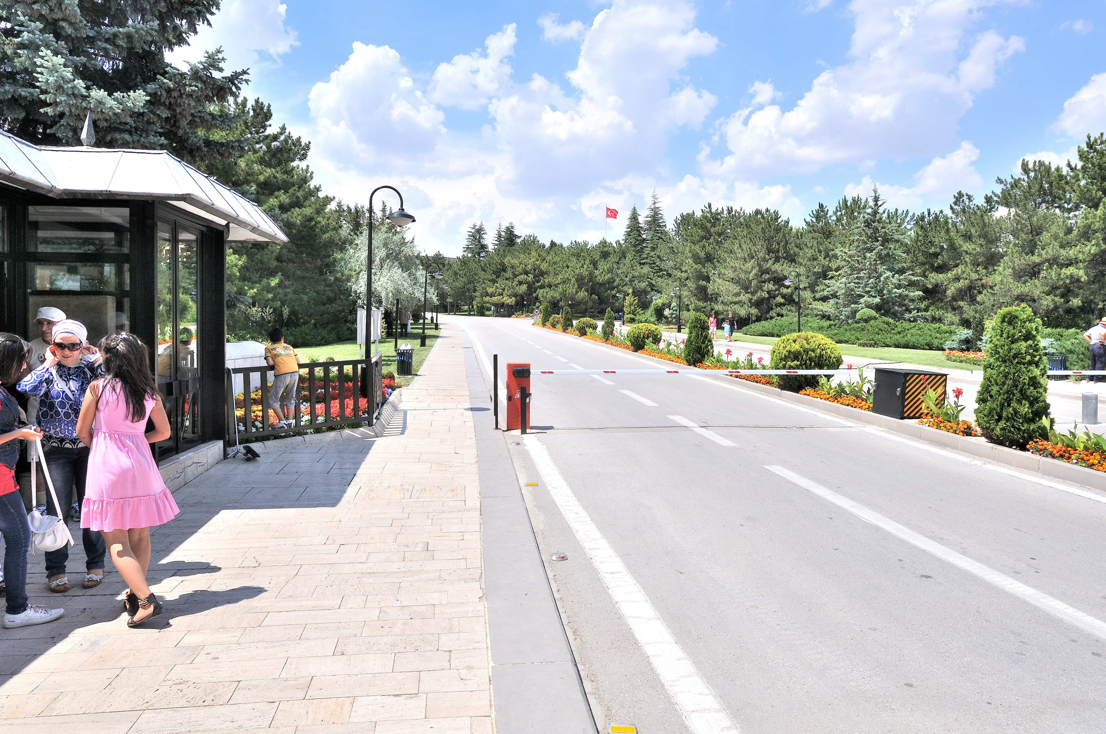 | アタテュルク廟 [Anıtkabir] のゲート (14:09) このゲートはトルコ軍が管轄しており、空港のような荷物チェックが行われる。 「東北東」MAPLay. 2 C |
