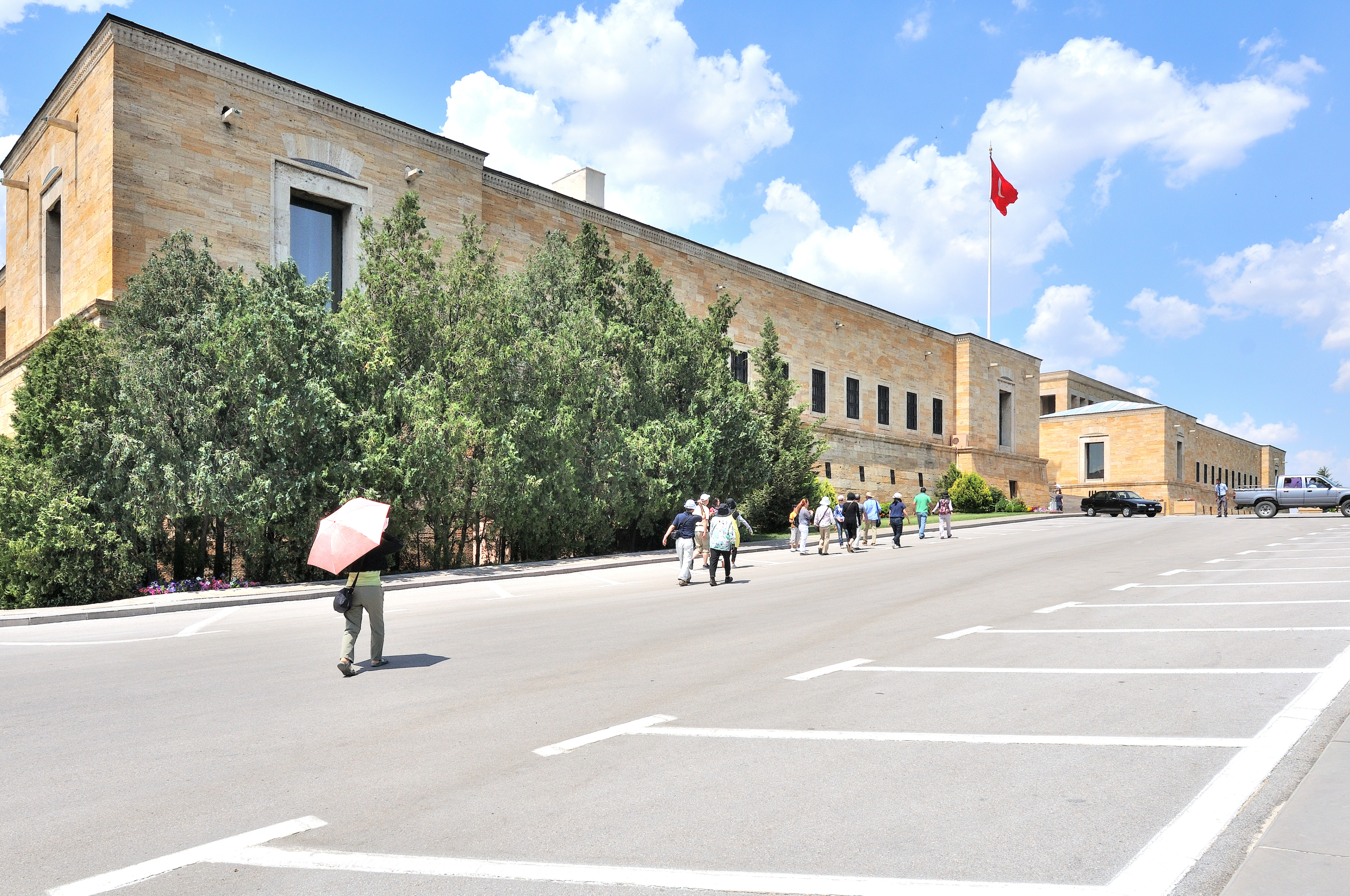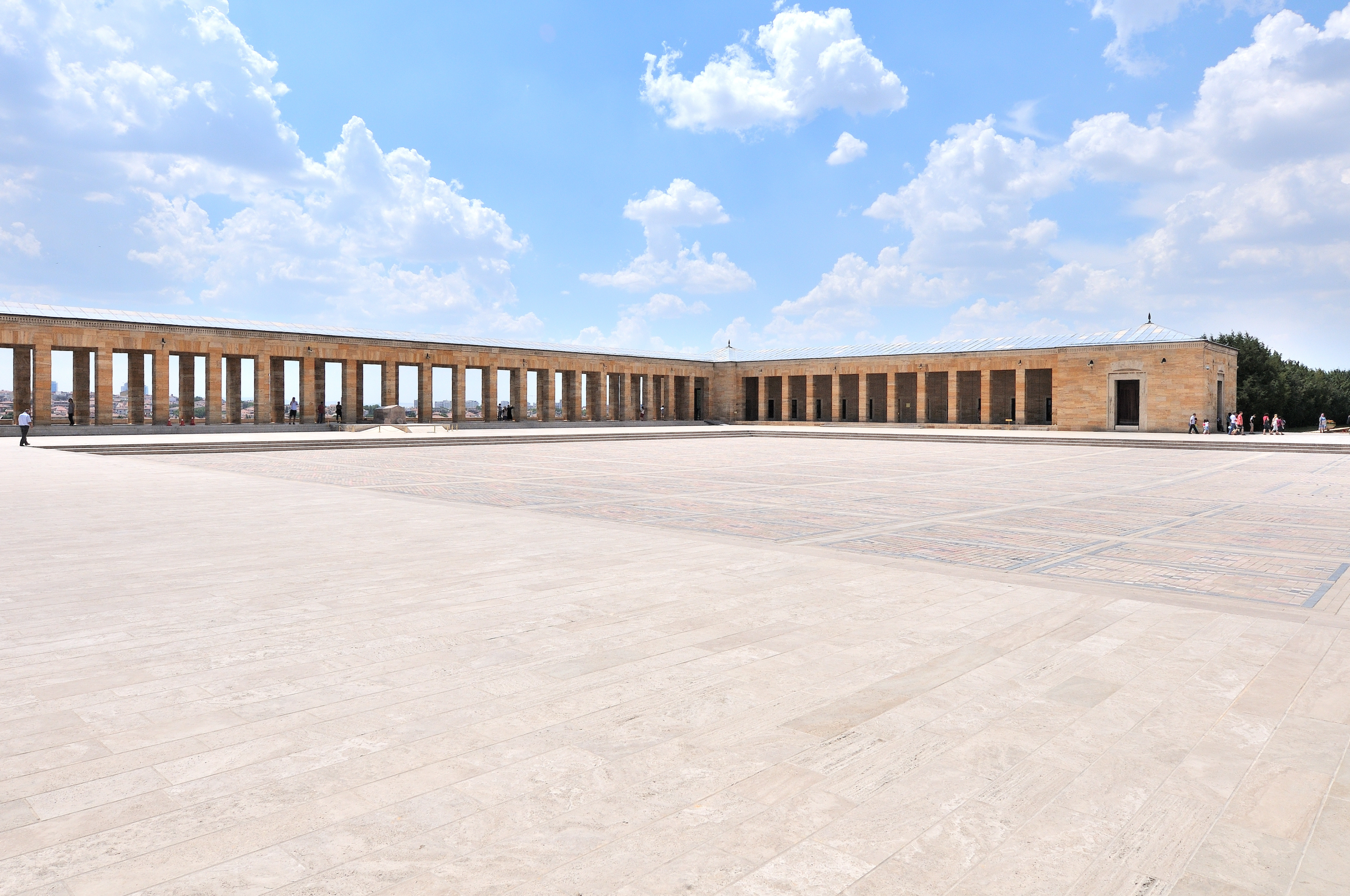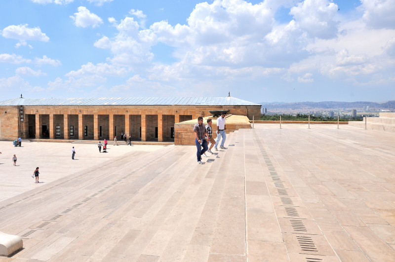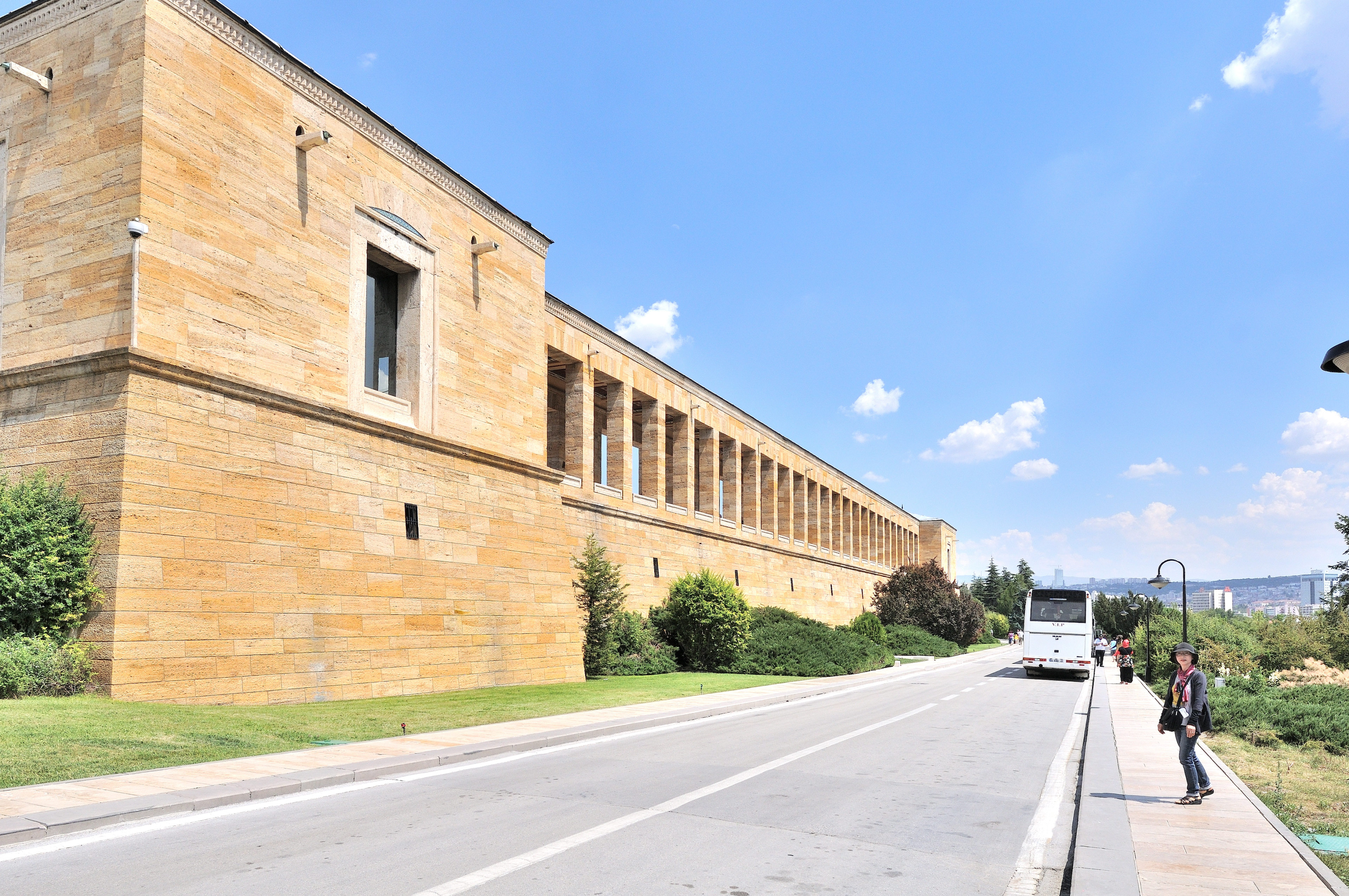 | アタテュルク廟 [Anıtkabir] のゲートを通過し、廟へ向かう (14:13) アタテュルク廟(アタテュルクびょう)とは、トルコ共和国の首都アンカラにある、初代大統領ムスタファ・ケマル・アタテュルク [Mustafa Kemal Atatürk] の霊廟。 トルコではアヌトゥカビル [Anıtkabir] と呼ばれている。 1938年11月10日、イスタンブール滞在中、執務室のあったドルマバフチェ宮殿で死亡。 死後、アンカラに運ばれ、この霊廟に安置された。 「北」MAPLay. 2 G |
