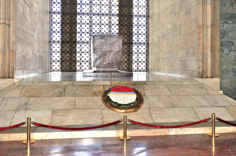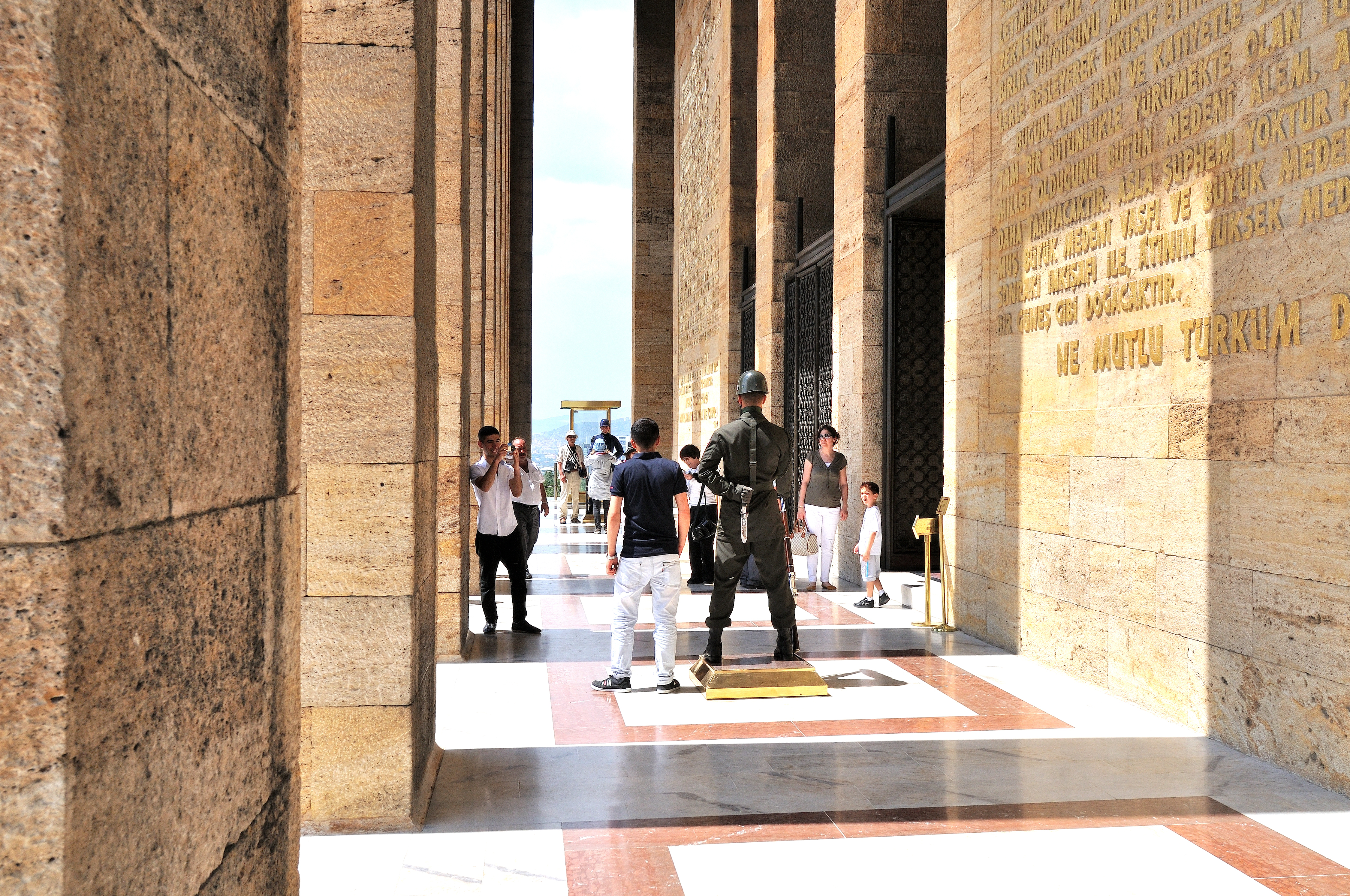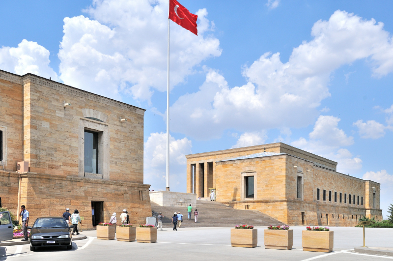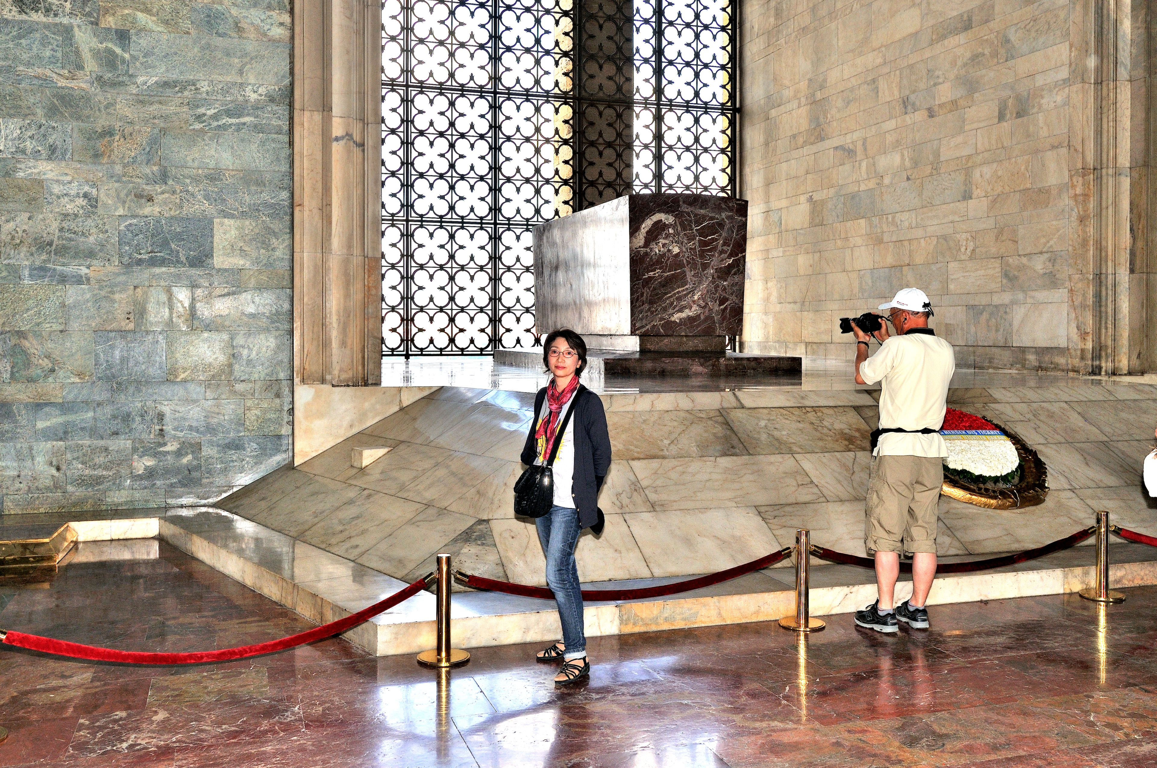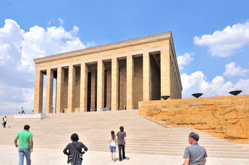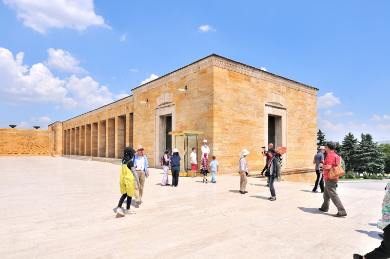 | アタテュルク廟 [Anıtkabir] のゲートを通過し、廟へ向かう (14:13) アタテュルク廟(アタテュルクびょう)とは、トルコ共和国の首都アンカラにある、初代大統領ムスタファ・ケマル・アタテュルク [Mustafa Kemal Atatürk] の霊廟。 トルコではアヌトゥカビル [Anıtkabir] と呼ばれている。 1938年11月10日、イスタンブール滞在中、執務室のあったドルマバフチェ宮殿で死亡。 死後、アンカラに運ばれ、この霊廟に安置された。 「北」MAPLay. 2 G |