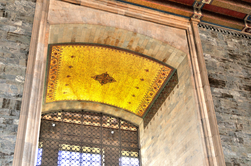 | アタテュルク廟 [Anıtkabir] (14:19) 象徴的な棺が置かれた天井には、絨毯を模したモザイクが貼られている。 また、建物全体は大理石によって造られている。 MAPLay. 2 O |