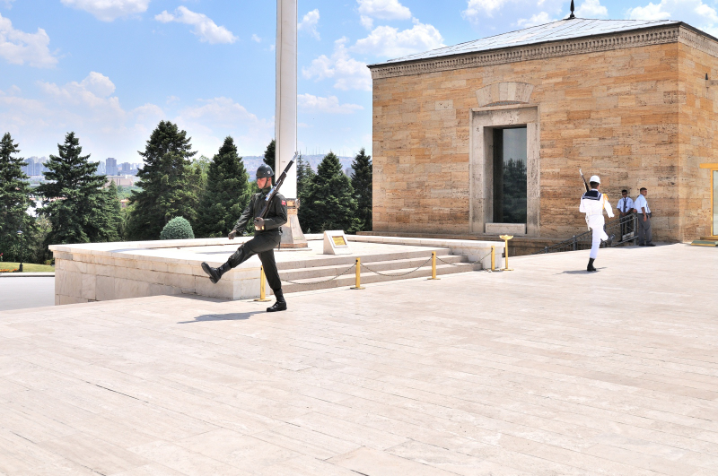 | アタテュルク廟 [Anıtkabir] (14:15) 写真の中央に、白い制服を着て立っている兵隊さんは、一見フィギュアに見えますが本物です。 「東」MAPLay. 2 J |