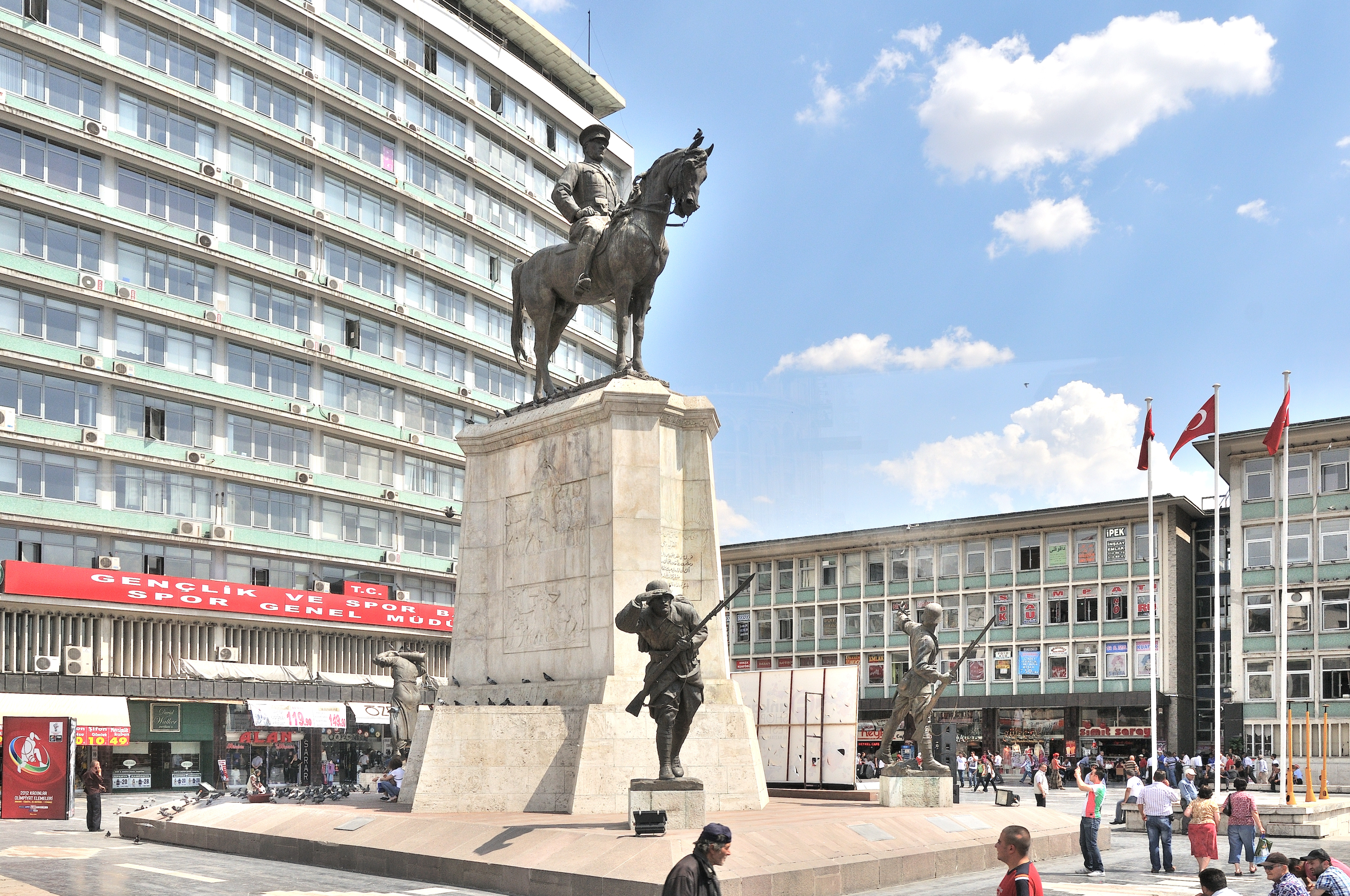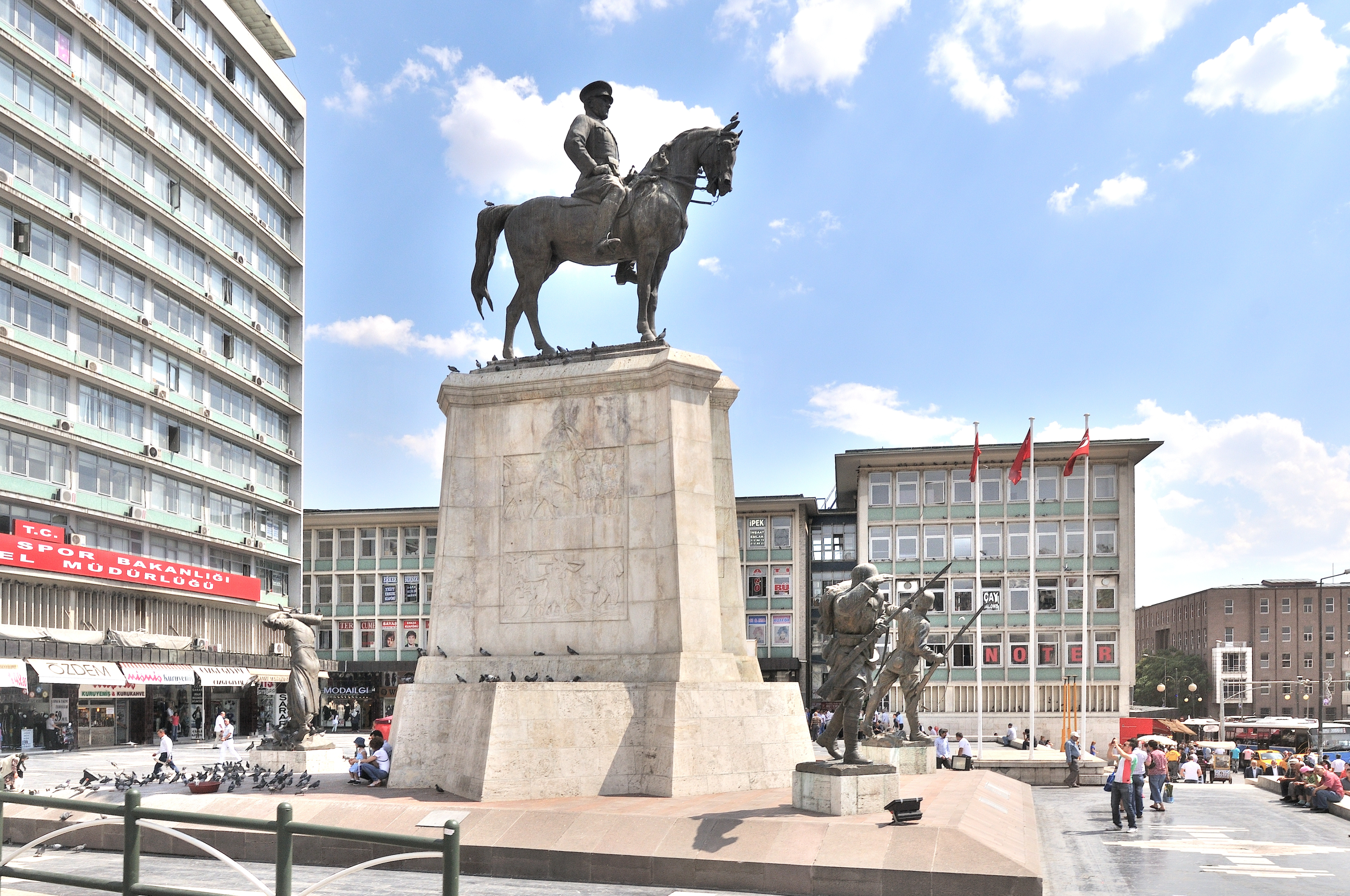 | 国家アタテュルク像 [Ulus Atatürk Heykeli] (15:00) 左手の建物は、青年スポーツ総局 [Gençlik Ve Spor Genel Müdürlüğü] 。 「南南東」MAPLay. 2 U |