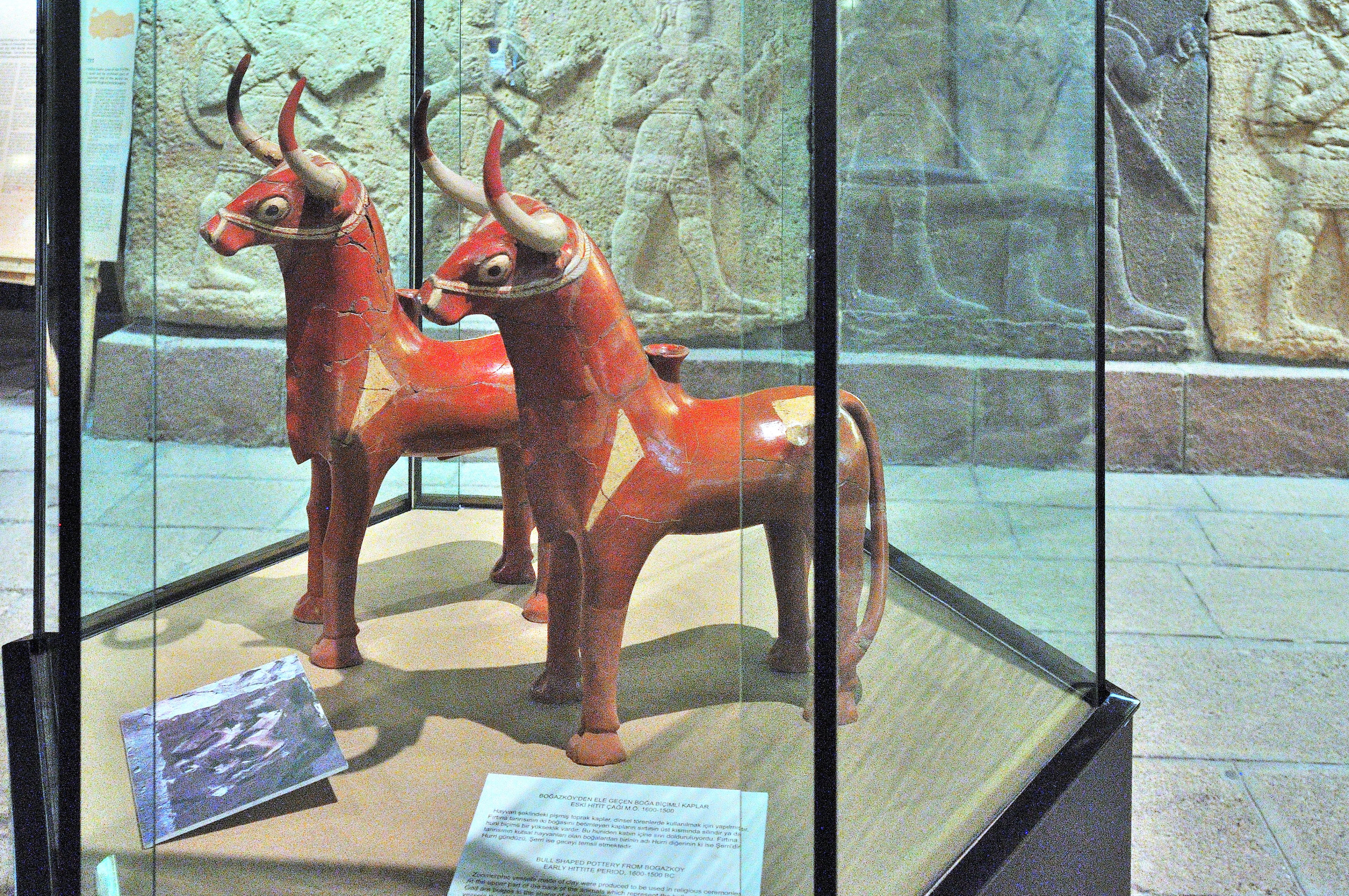| アナトリア文明博物館 (15:22) テシュブ [Teshub] 神 (嵐と戦いの神) とヘパト [Hebat] 神 (天界の女王と称される女神) にワインを捧げるための一対の酒器。 古ヒッタイト王国時代の牲牛を象ったリュトン[Rhyton] 。 MAPLay. 2 W |