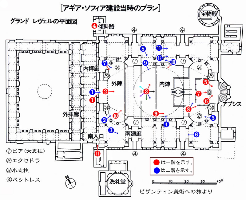 | アヤソフィア博物館内の撮影位置と、撮影方向。 | |