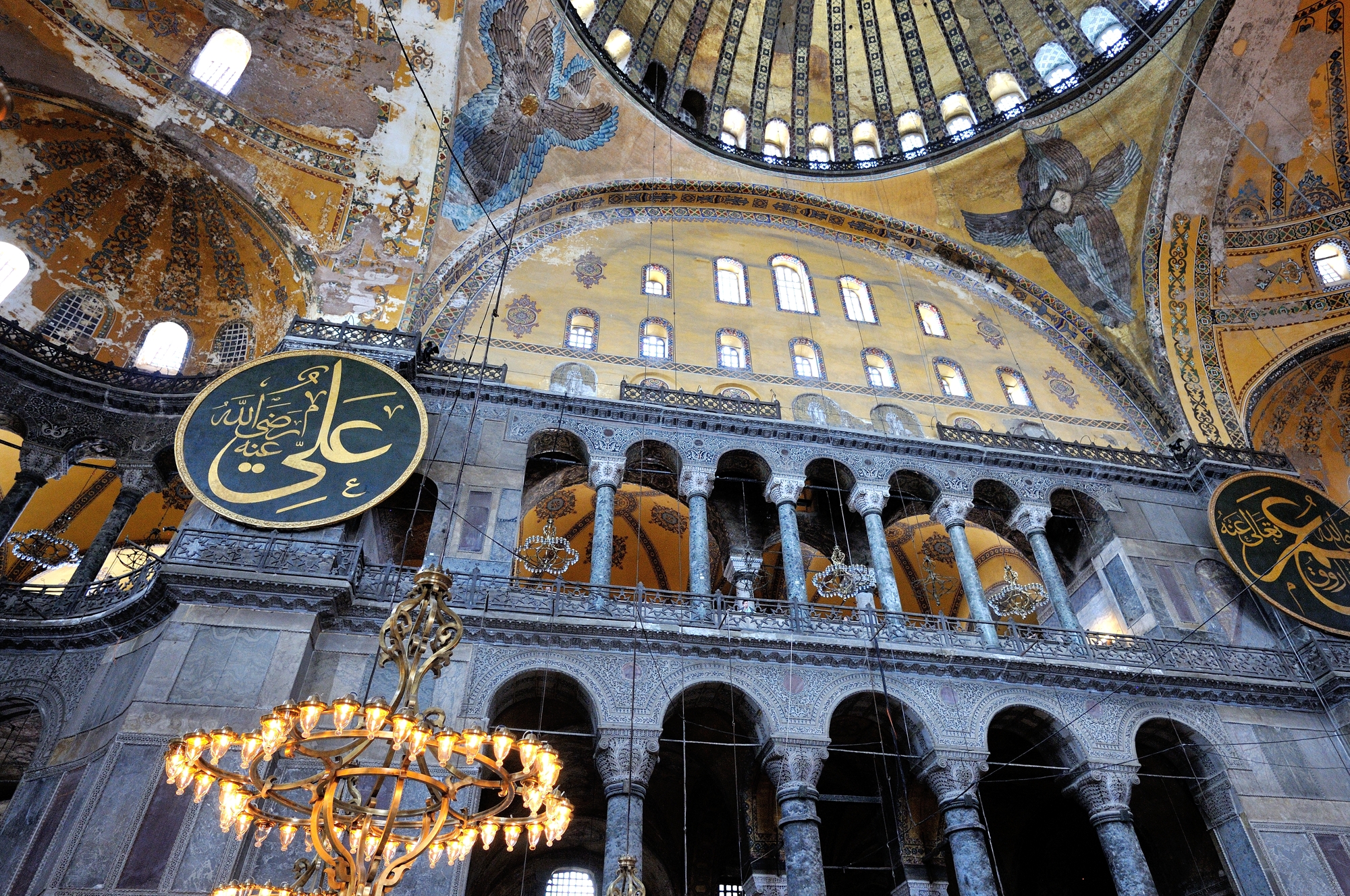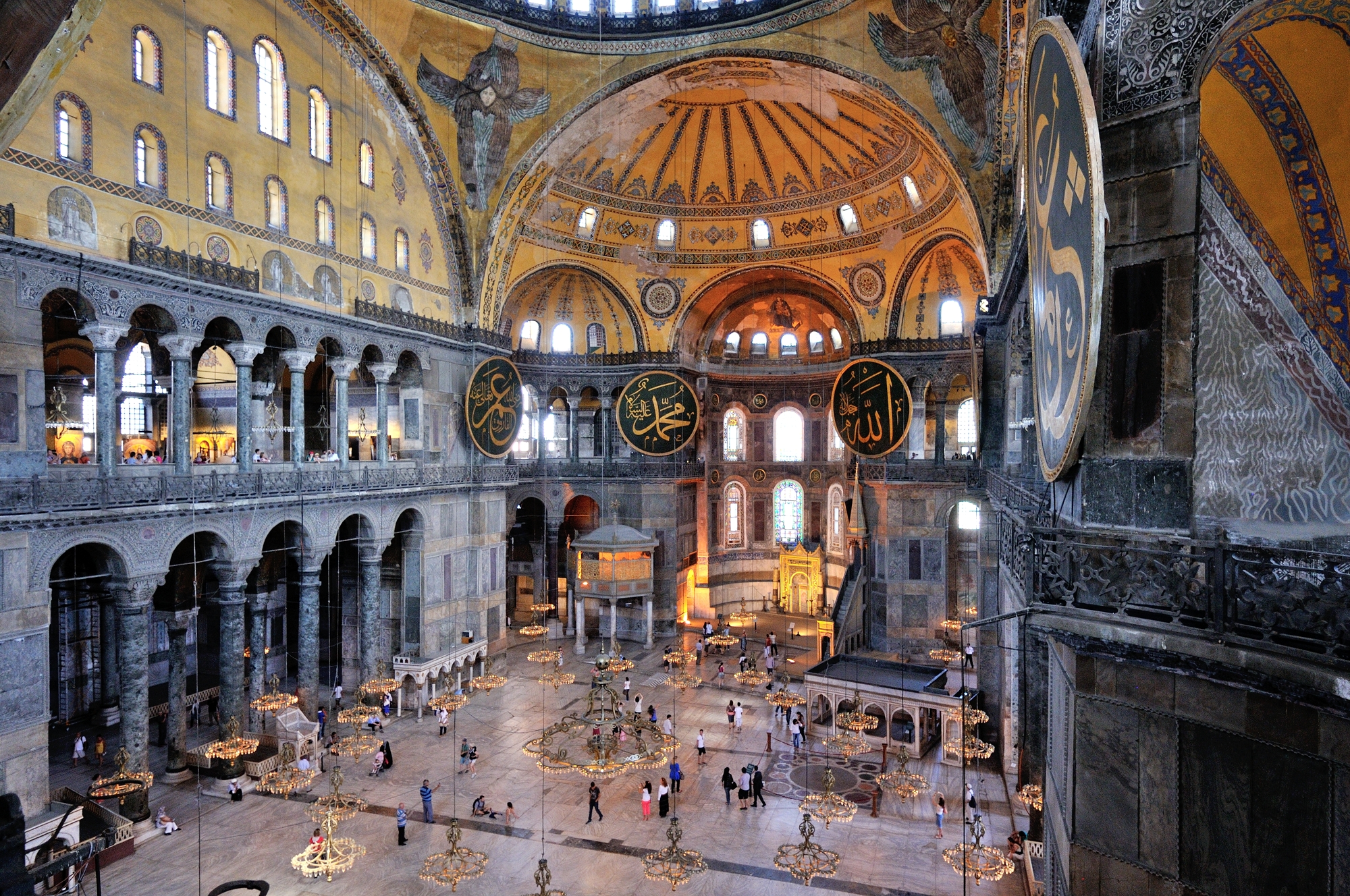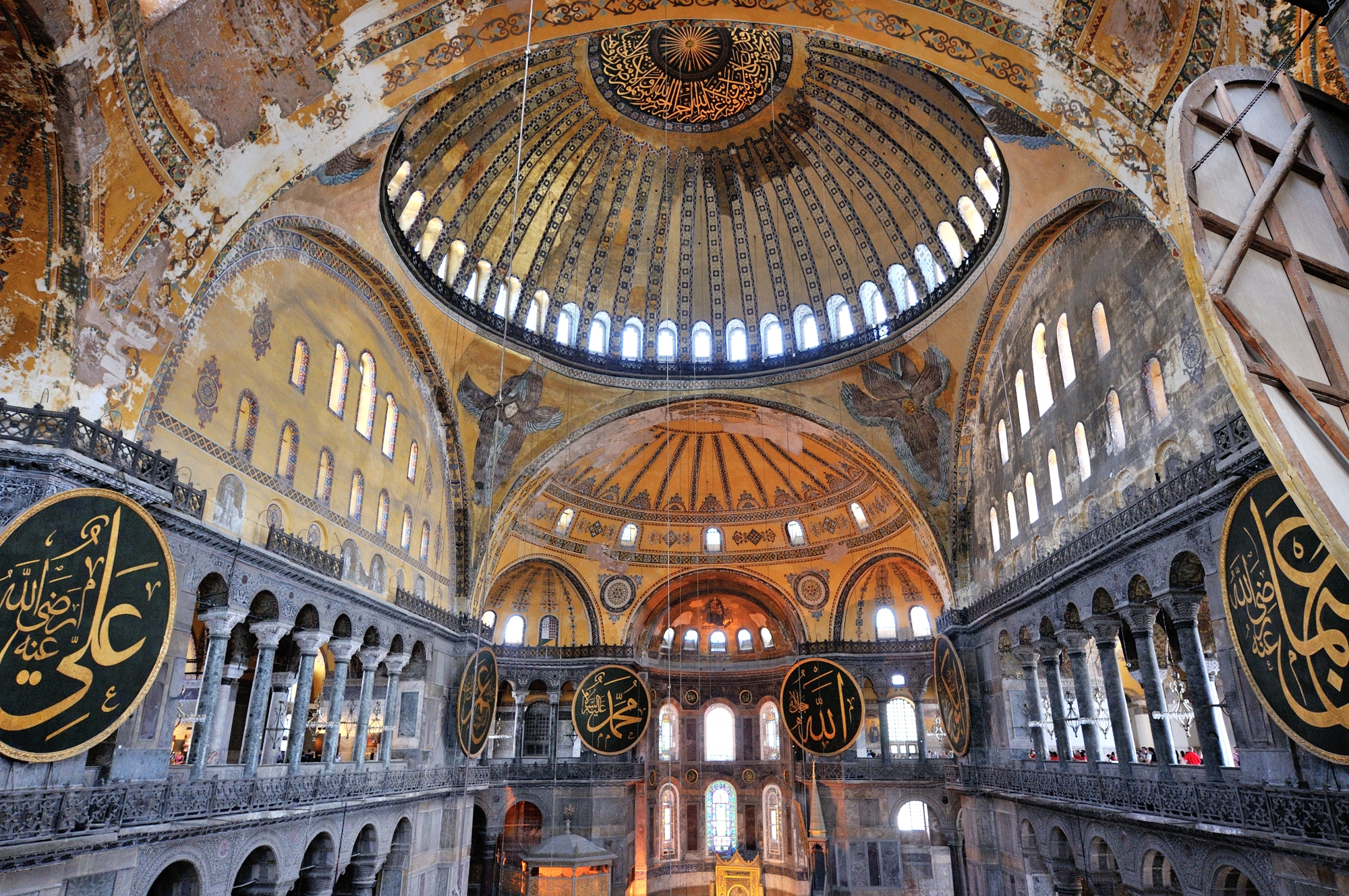 | アヤ・ソフィア博物館 [Ayasofya Müzesi] アヤ・ソフィア、あるいはハギア・ソフィアと命名された教会堂建築は、ギリシアやトルコなど、かつての東ローマ帝国領の各地に数多く残されているが、単にアヤ・ソフィアと言った場合、イスタンブルのアヤソフィアを指す。 元来の名称であるハギア・ソフィアはギリシア語で「聖なる叡智」を意味する。 嘗て、コンスタンティノポリス総主教庁 (ギリシャ正教) が置かれていたが、1453年にモスクに転用され、1935年からは博物館に改められた。 アヤ・ソフィアはビザンチン建築の最高傑作とされている。 ローマ帝国のコンスタンティヌス大帝の意思に基づき、その子コンスタンティウス2世 (在位337 ~ 361) によって、西暦360年に初めてバシリカ建築として建立されたこの大聖堂は、その後、404年に反乱で焼失し、テオドシウス2世がやはりバシリカ形式で再建するのが415年のことである。 これもまた532年のニカの乱によて焼失し、西暦537年に、ビザンチン帝国のユスティニアヌス大帝によって、本格的に 「ドーム・バシリカ」 形式によって再建され、今日の姿になった。 建築家はトラレスのアンテミオスとミレトスのイシドロスで、最も苦労したのは、巨大なドームをいかに支えるかということであった。 この様なドームを備えた大聖堂は今まで存在しなかったため、ドームの崩落は度々生じ、キリスト教徒達はドームに気を配りながら礼拝したと言われている。 再建された当時は世界で1番大きな建築物であった。 |