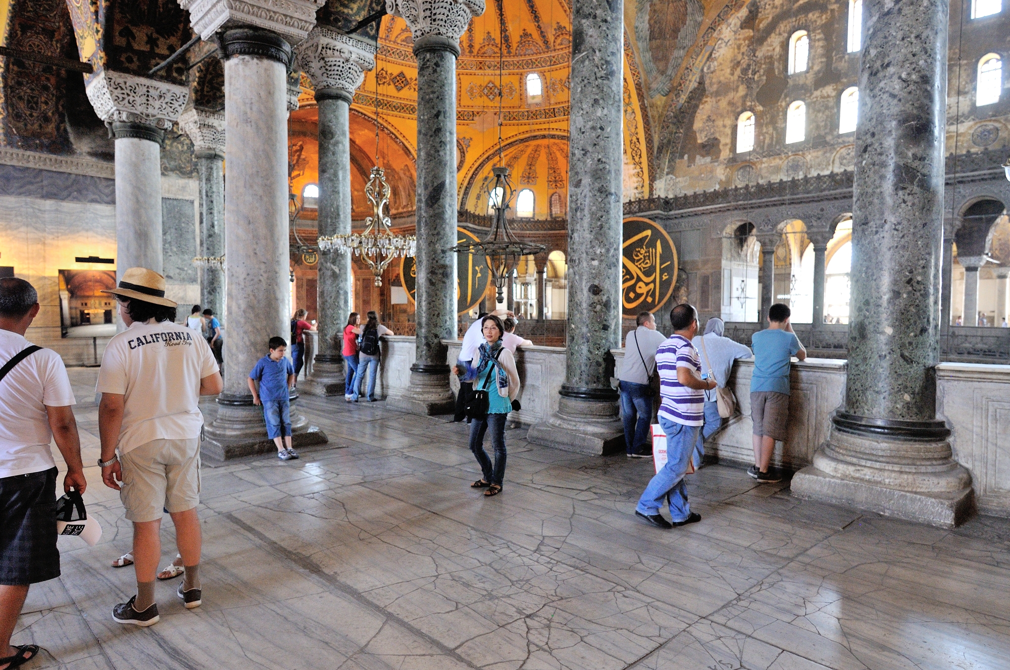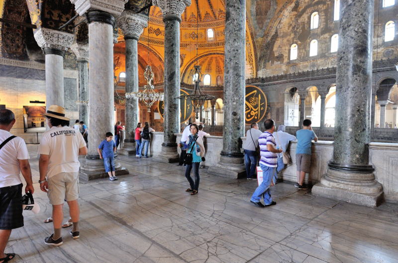 | 階上廊から見る中央身廊全景 (15:30) ここで使われている柱は、アルテミス神殿にあった127本の柱の内、105本がここに運ばれ使用されている。 MAPLay. 1 g Movie 『007 ロシアより愛をこめて』 |