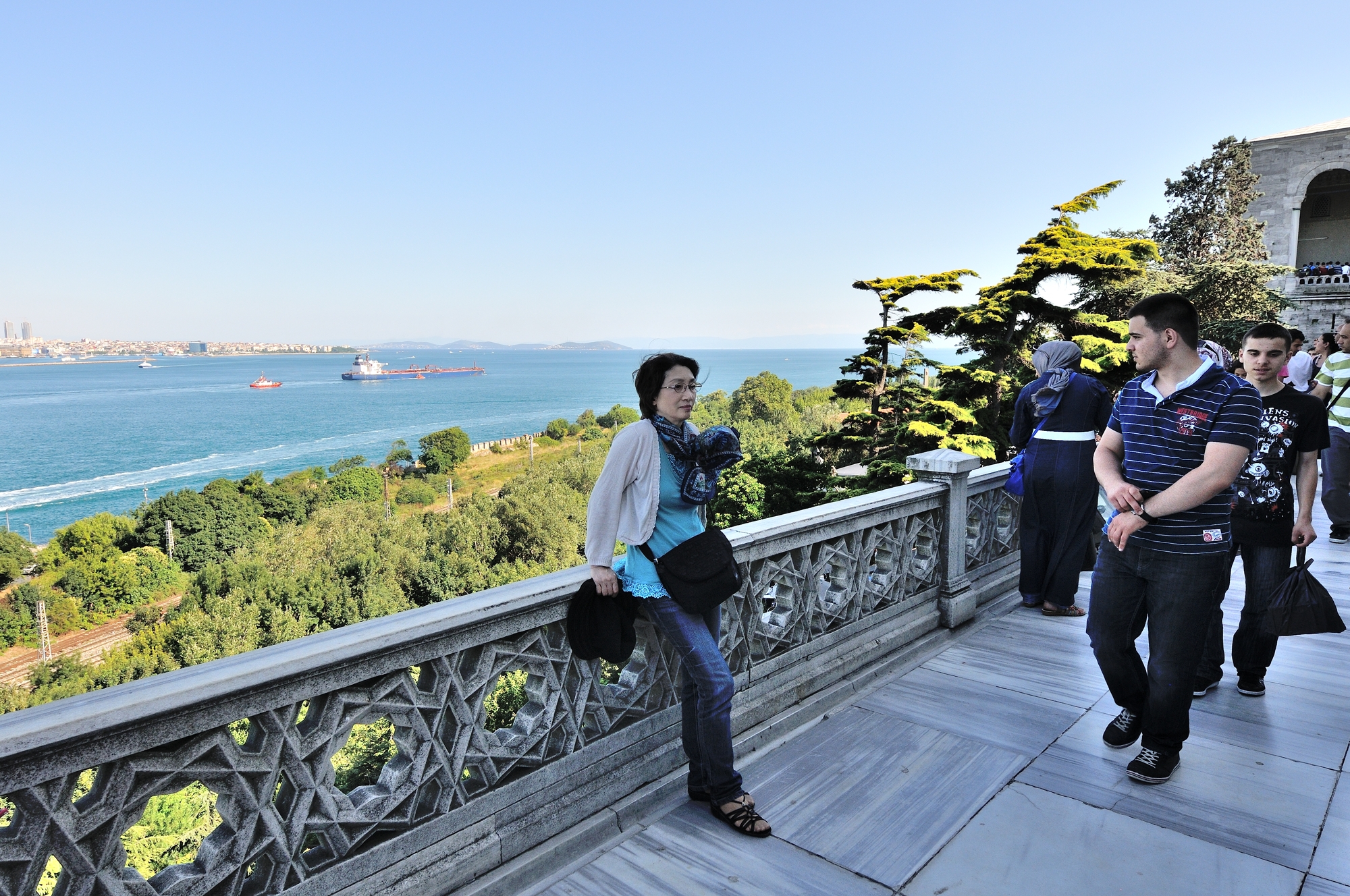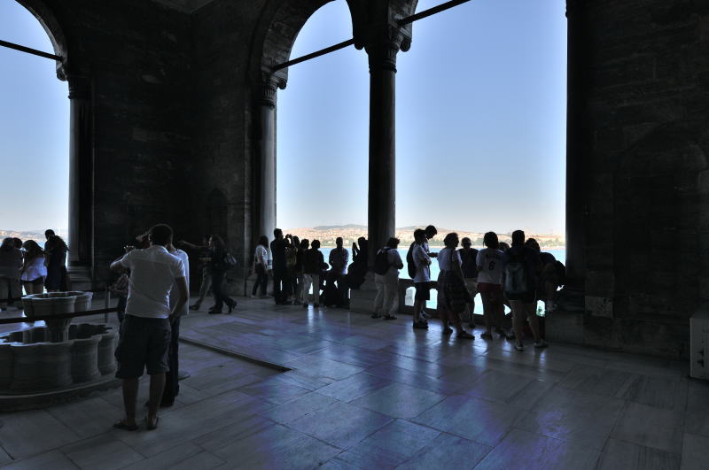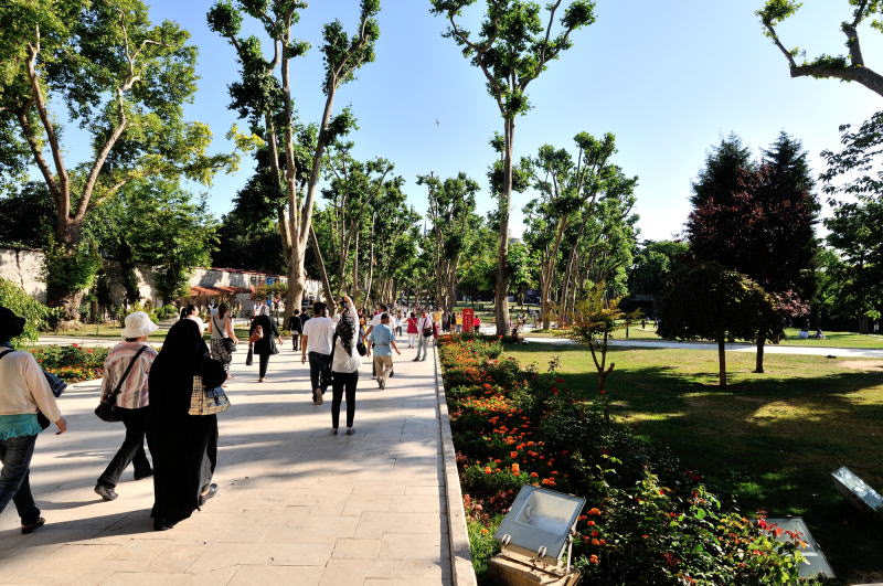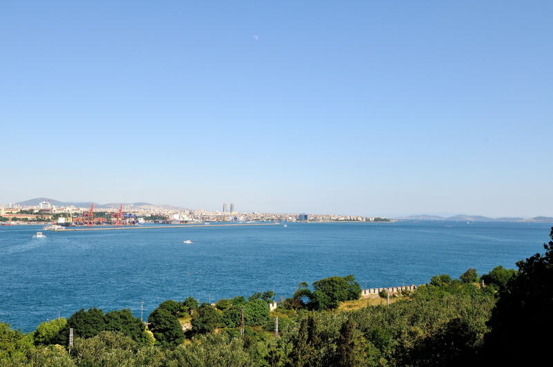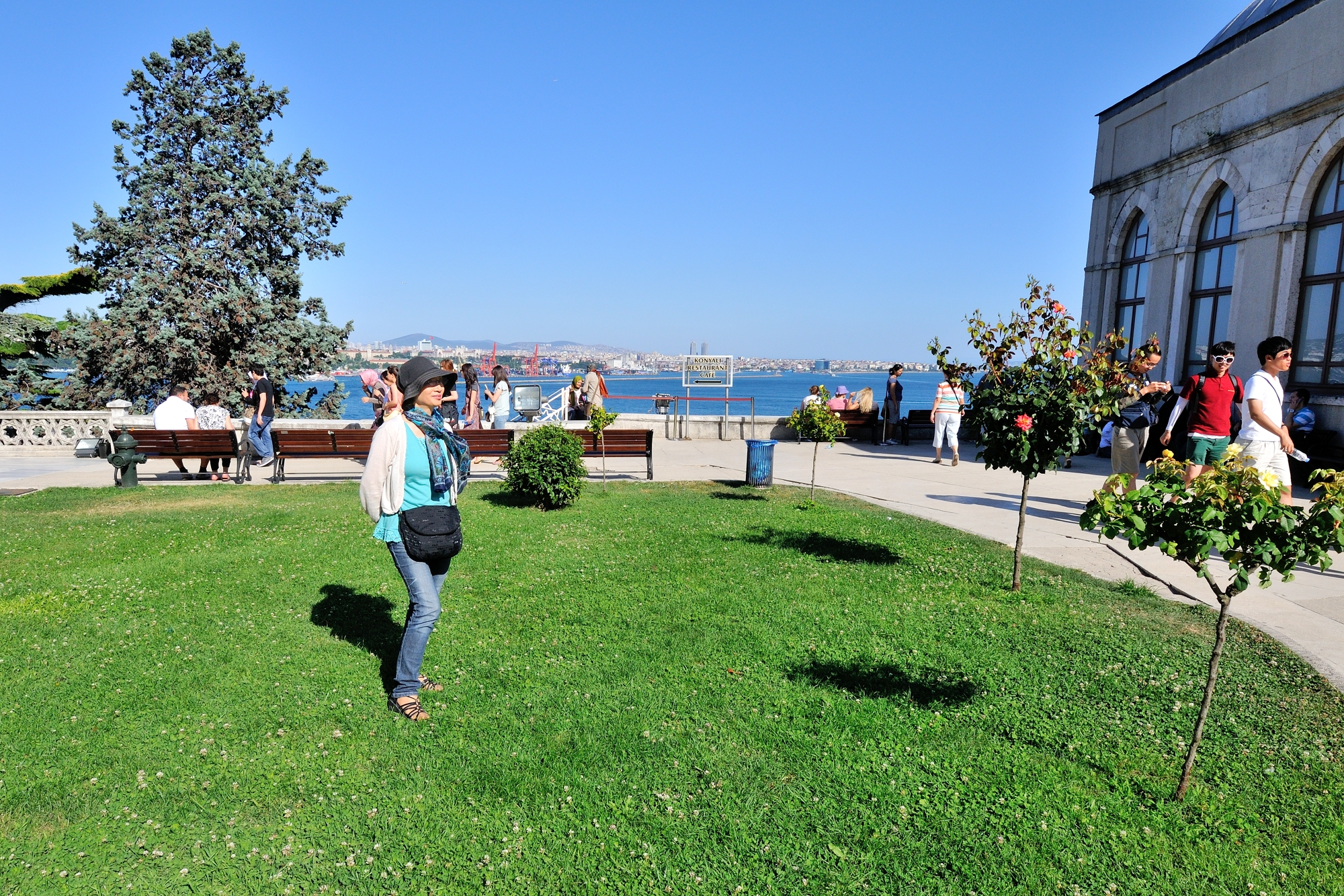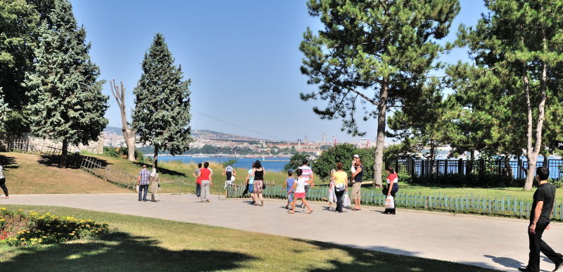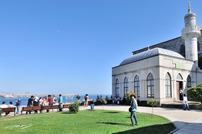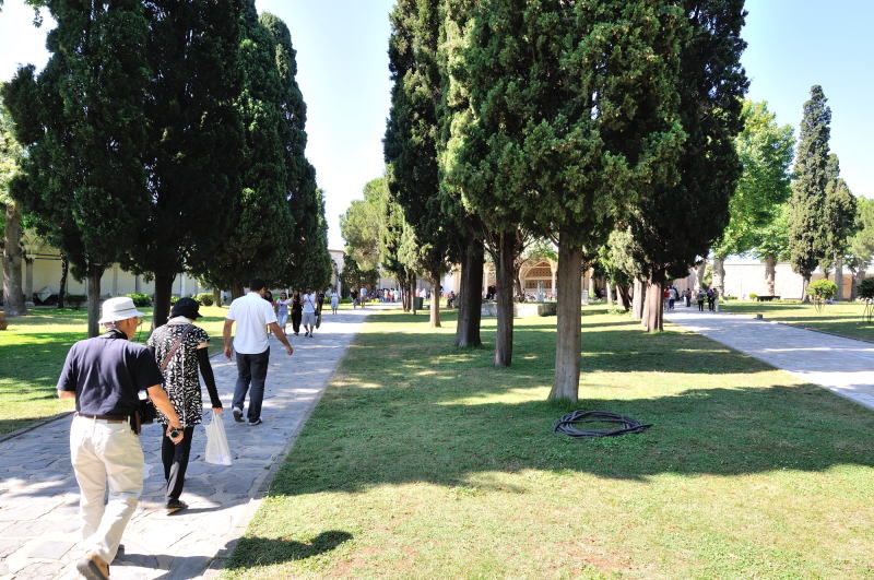 | 第一の中庭 [I. Avlu] (16:00) マルマラ海越しに見える対岸は、ウスクダラ地区。 「帝王の門」 から 「中門」 までが、宮廷の第一の中庭 「東」MAPLay. 1 m |