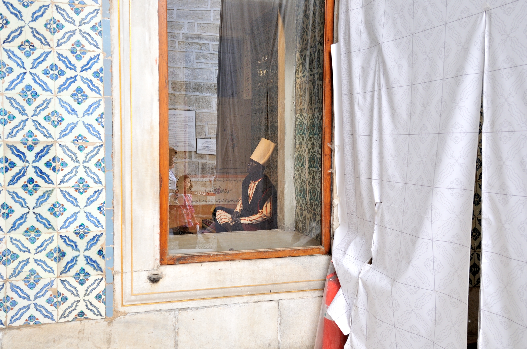 | ハレムの黒人宦官*の中庭 [Harem Ağları Taşlığı] 宦官として黒人が選ばれた理由は、去勢が不十分で、もし子供が出来た場合でも皮膚の色で識別出来る利点があった。 「南西」MAPLay. 1 v * 宦官 (カンガン) は、 去勢を施された官吏。 |