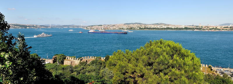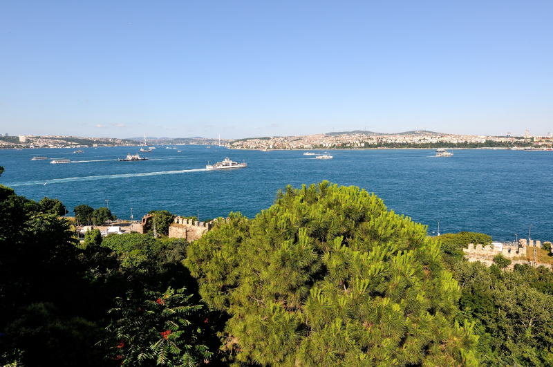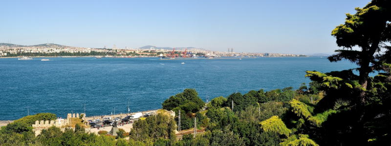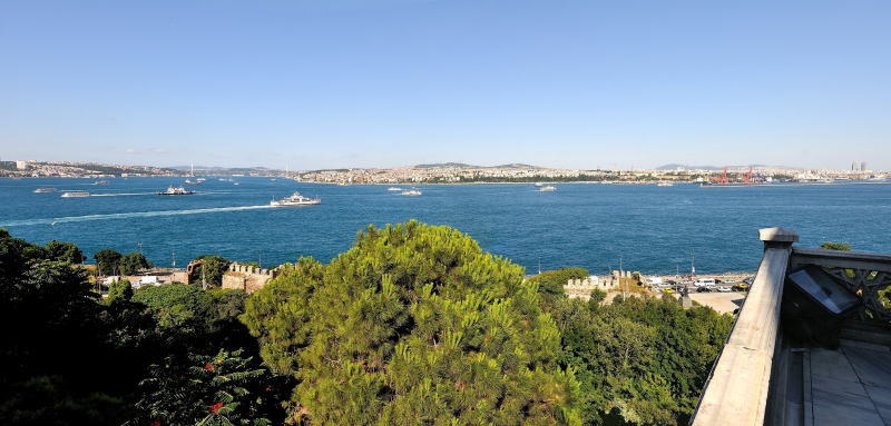 | Mecidiye Köşkü* のテラスからの眺め (16:47) 「東北東」MAPLay. 2 J * 売店などをさして用いられる Kiosk (キオスク) は、トルコ語の キョシュク [Köşkü] (四阿、東屋) が語源。 |