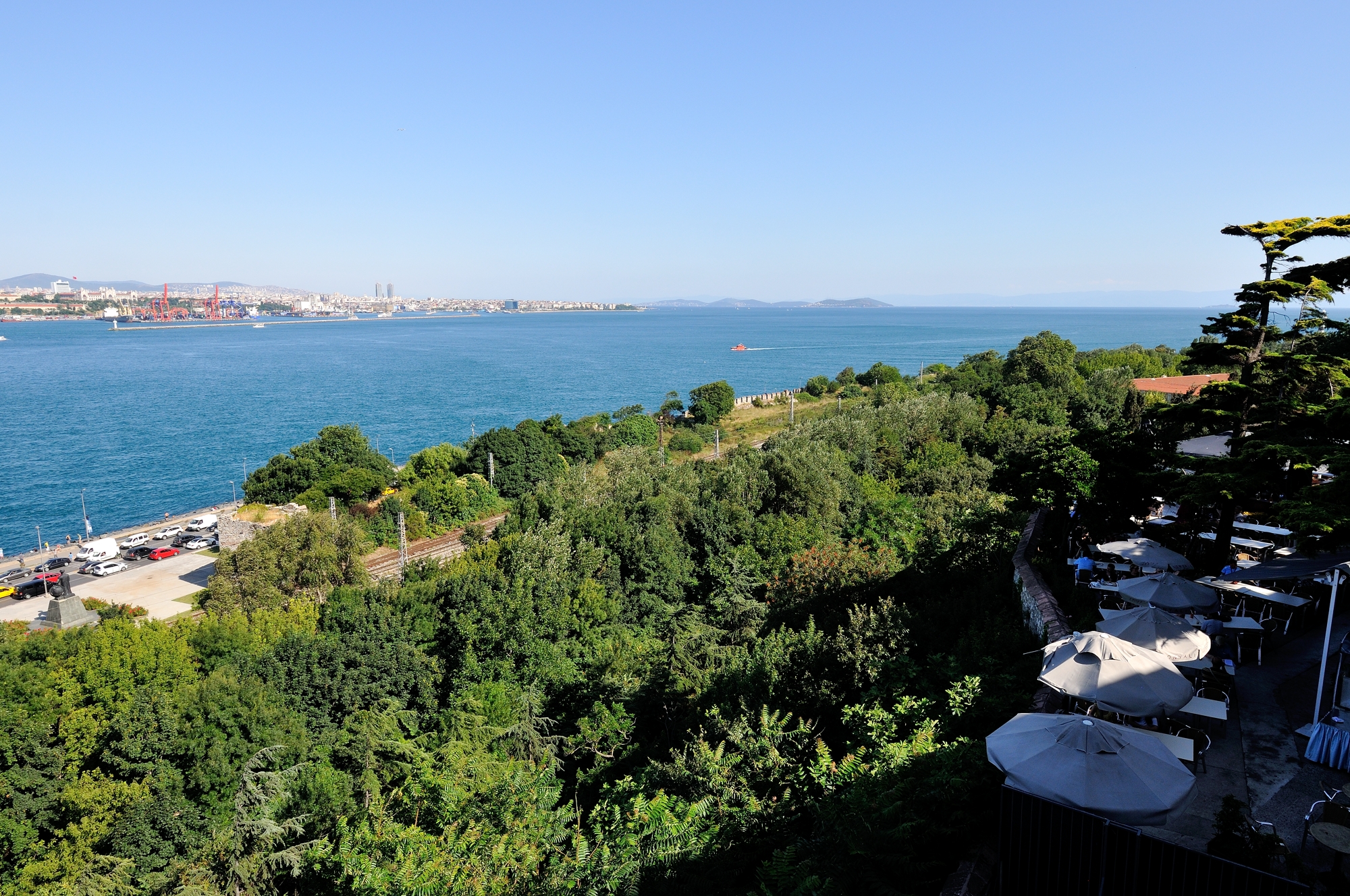 | Mecidiye Köşkü* のテラスからの眺め (17:11) 「北北東」MAPLay. 2 K * 売店などをさして用いられる Kiosk (キオスク) は、トルコ語の キョシュク [Köşkü] (四阿、東屋) が語源。 |