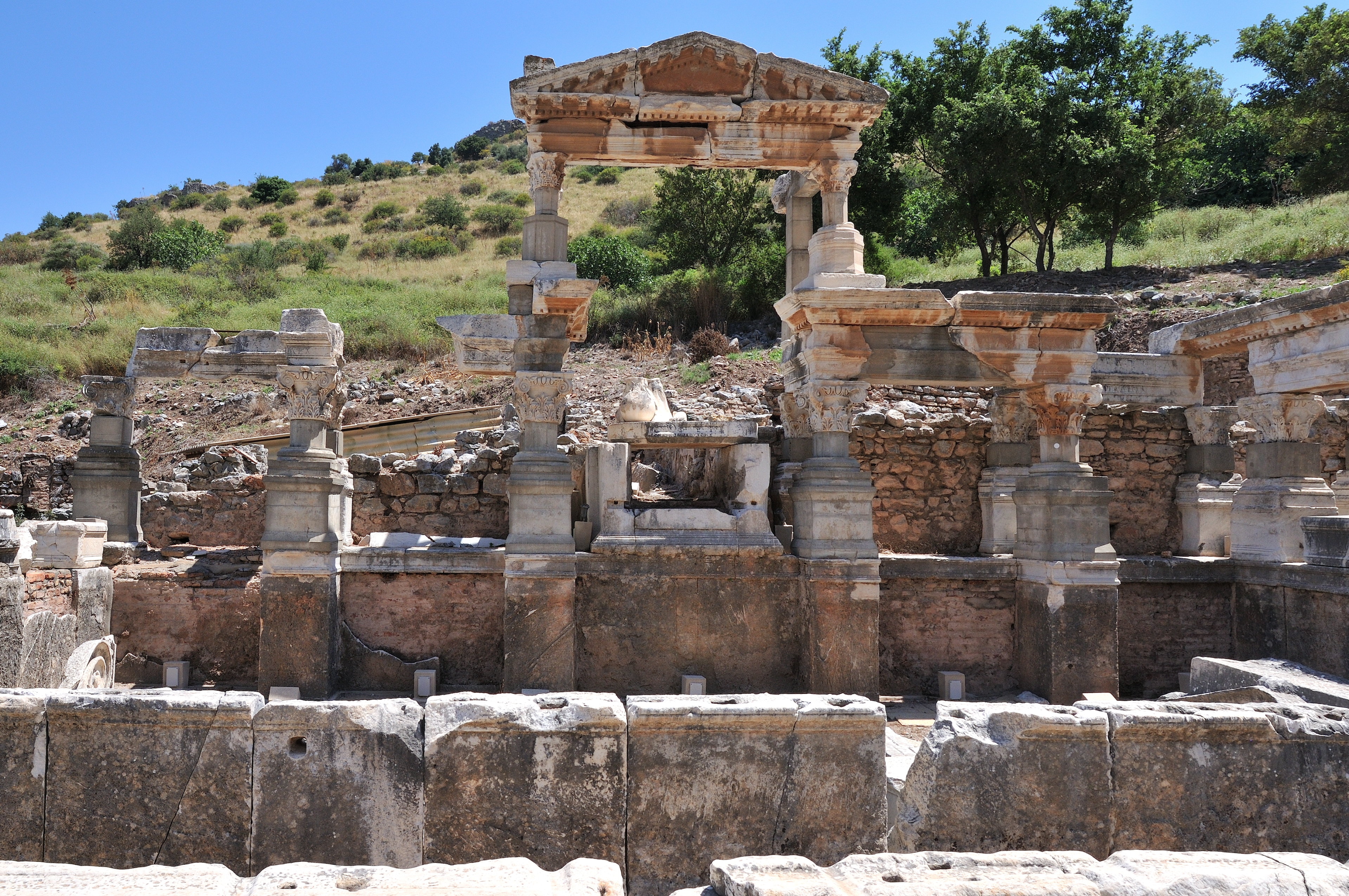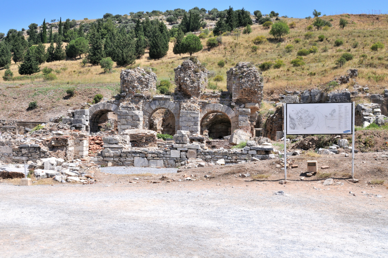 | ポリオの泉 [Pollio Çeşmesi] (11:51) ドミティアヌス神殿の左側にはアーチをもつポリオの泉がある。 97年にセクティリウス・ポリオという人物によって建てられ、商店として使われていた。 「南南東」MAPLay. 2 p |