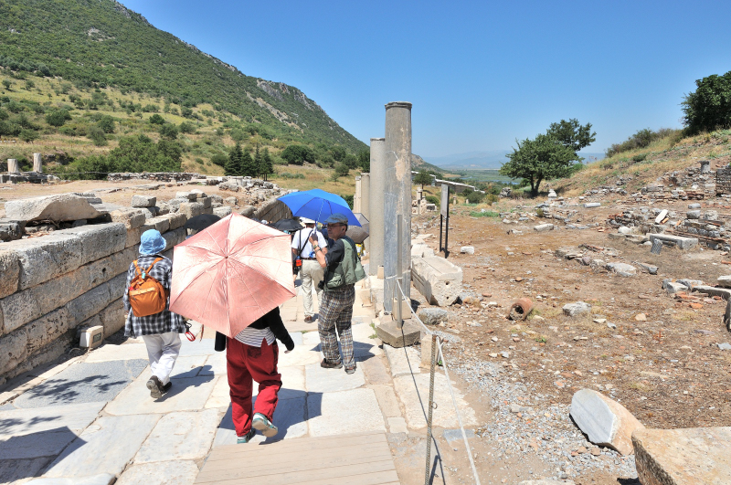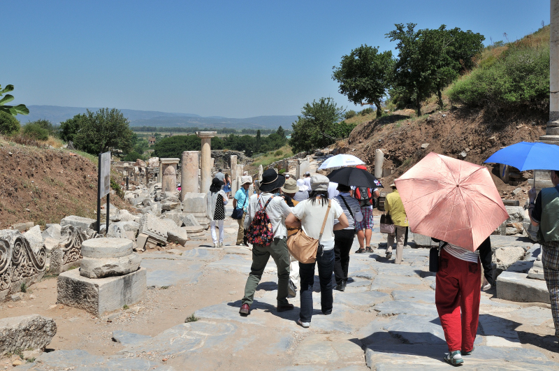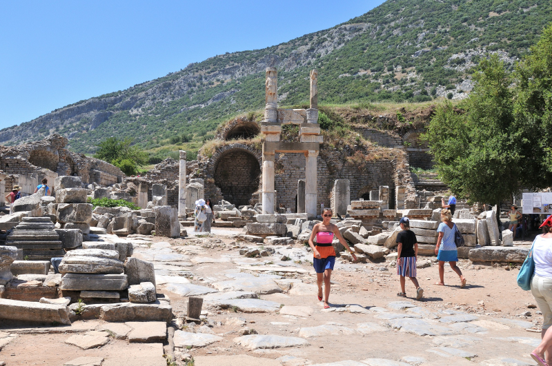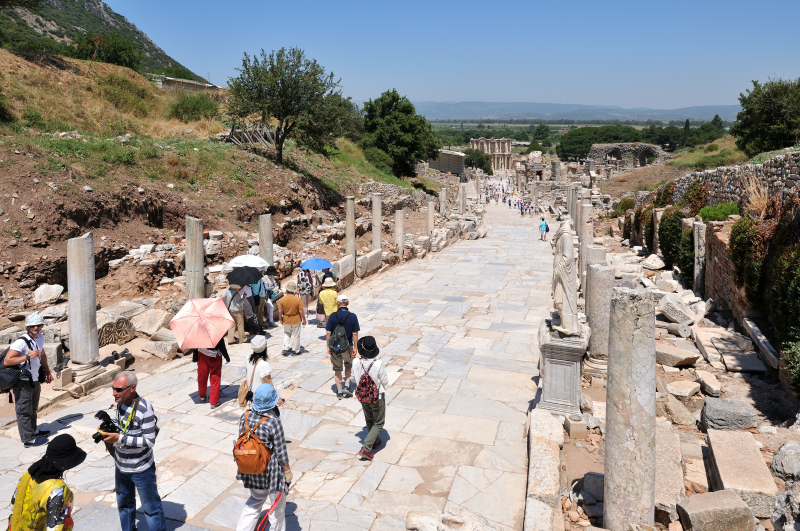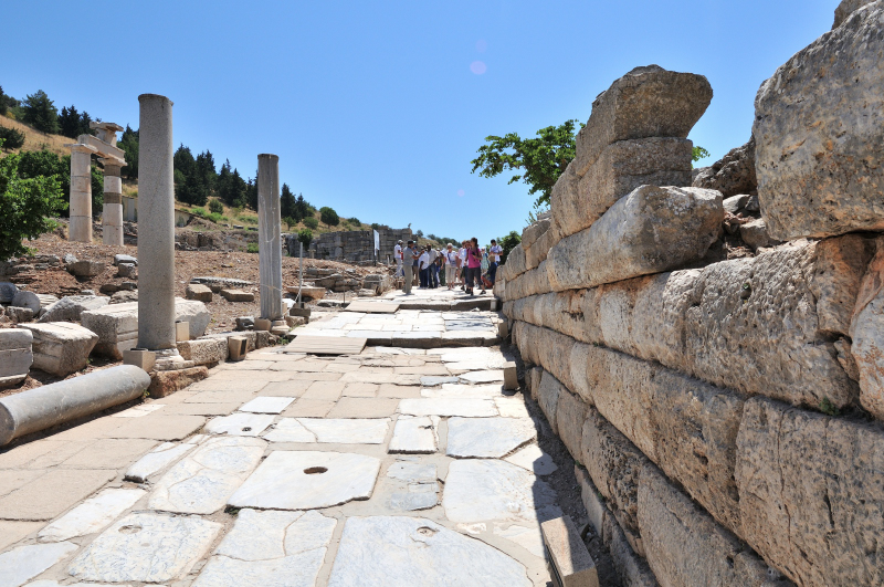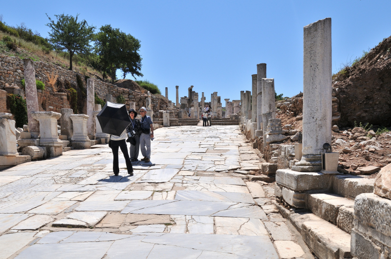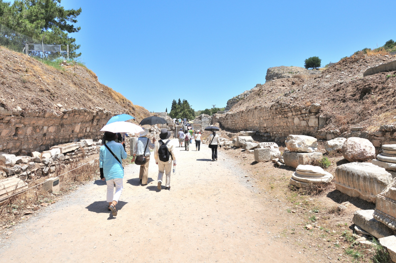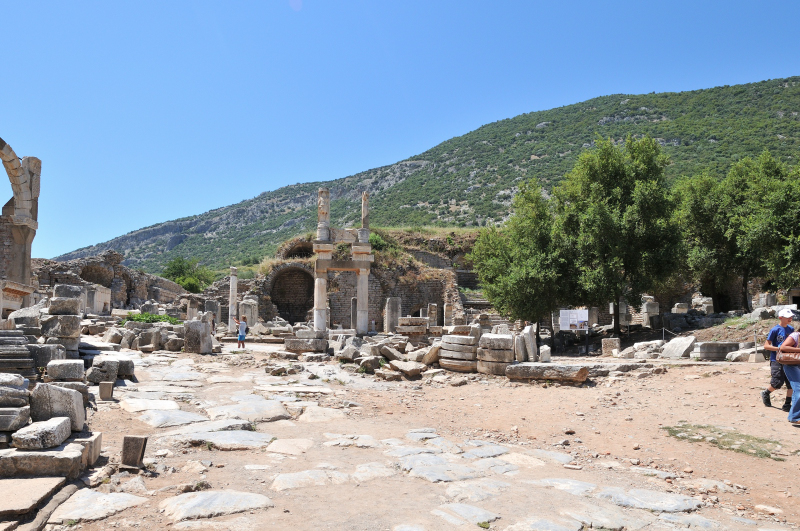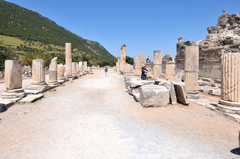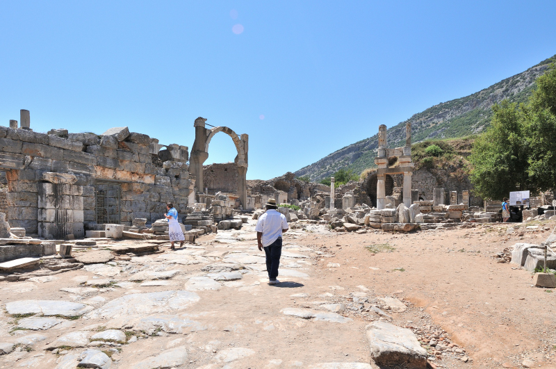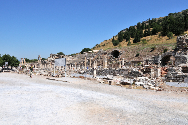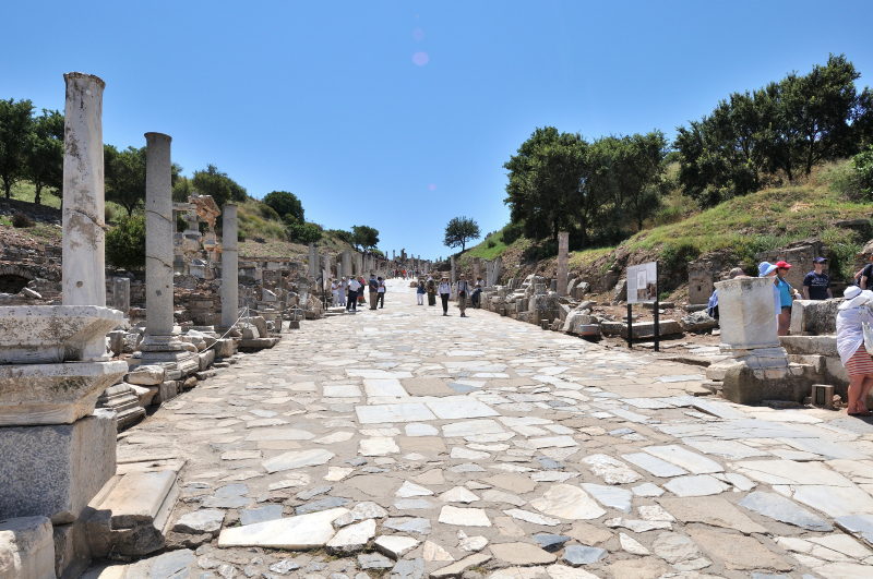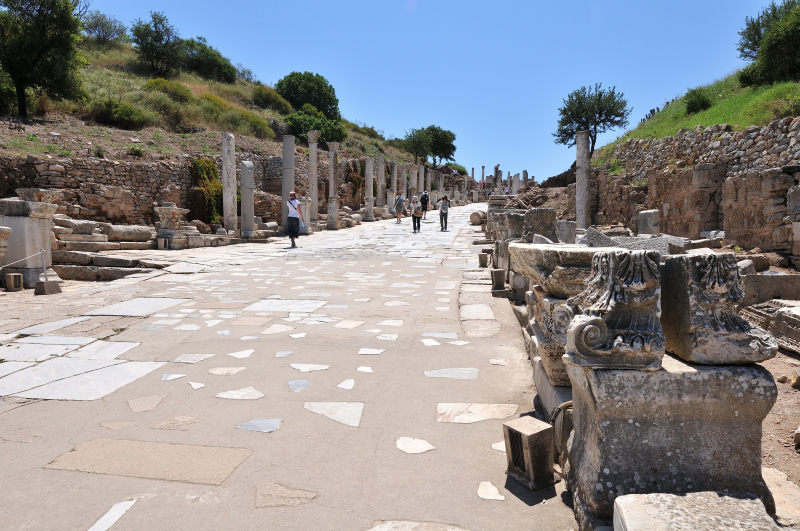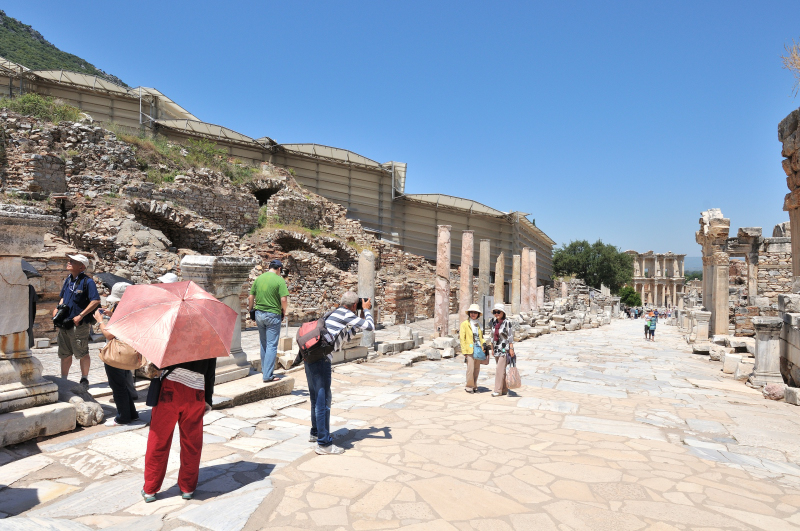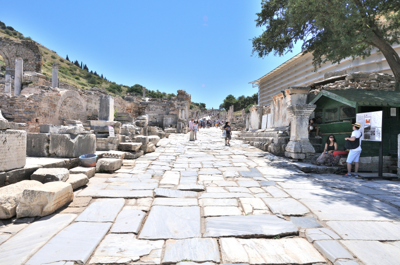 | クレテス通り [Curetes Street] (12:15) 写真の中央部の、一部木に隠れた建物が、ケルスス図書館 [Celsus Kütüphanesi] 。 「東西」MAPLay. 3 C |