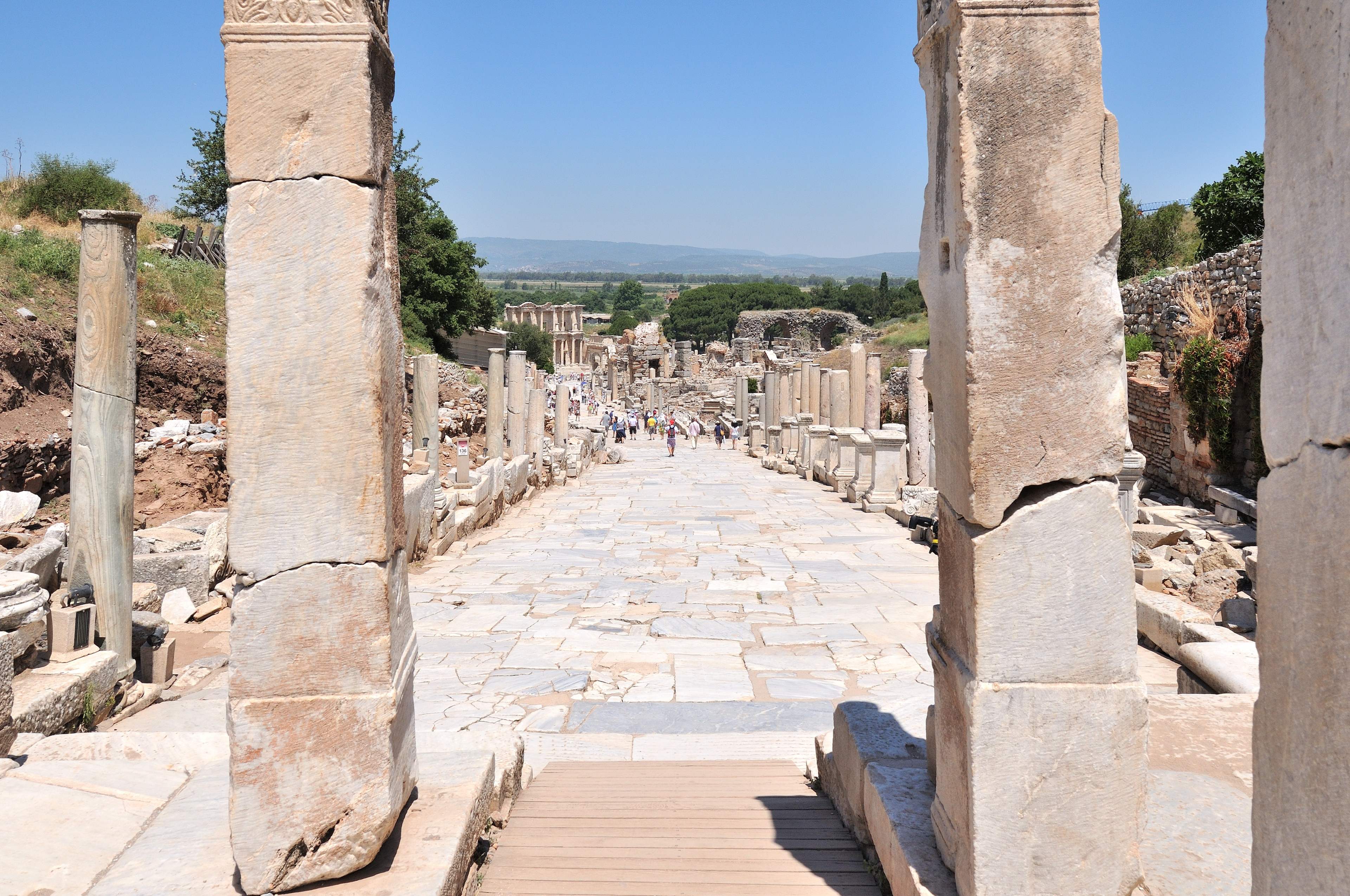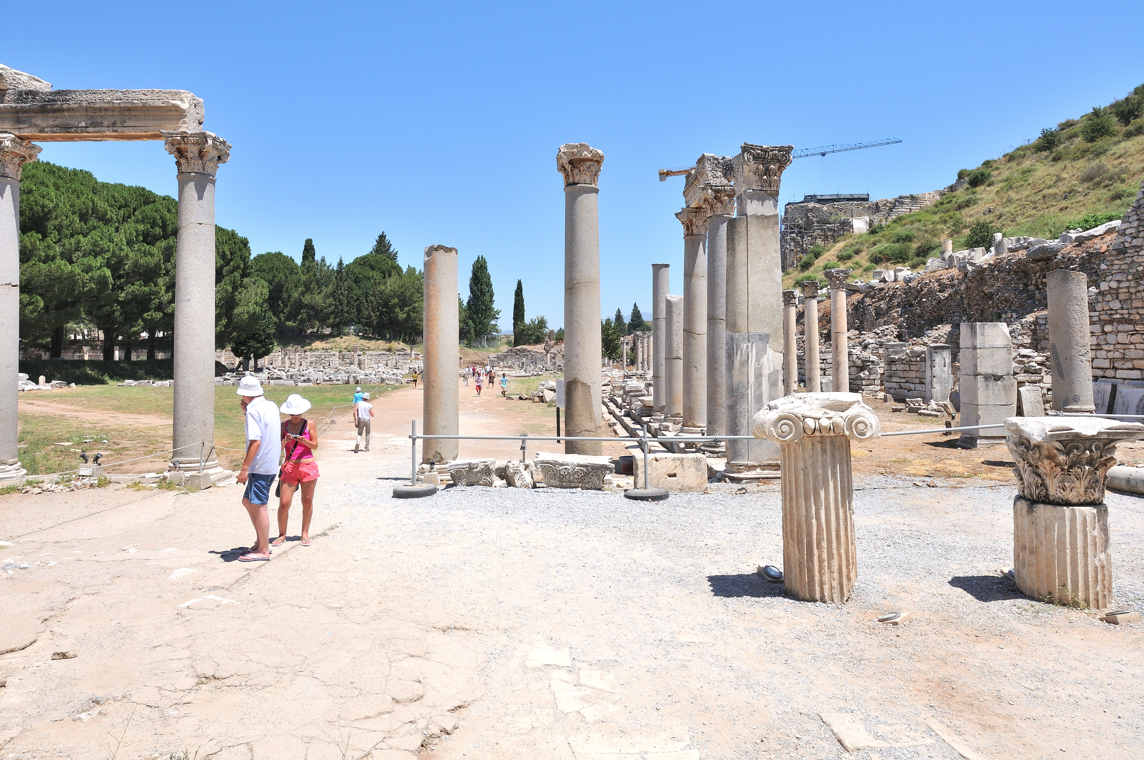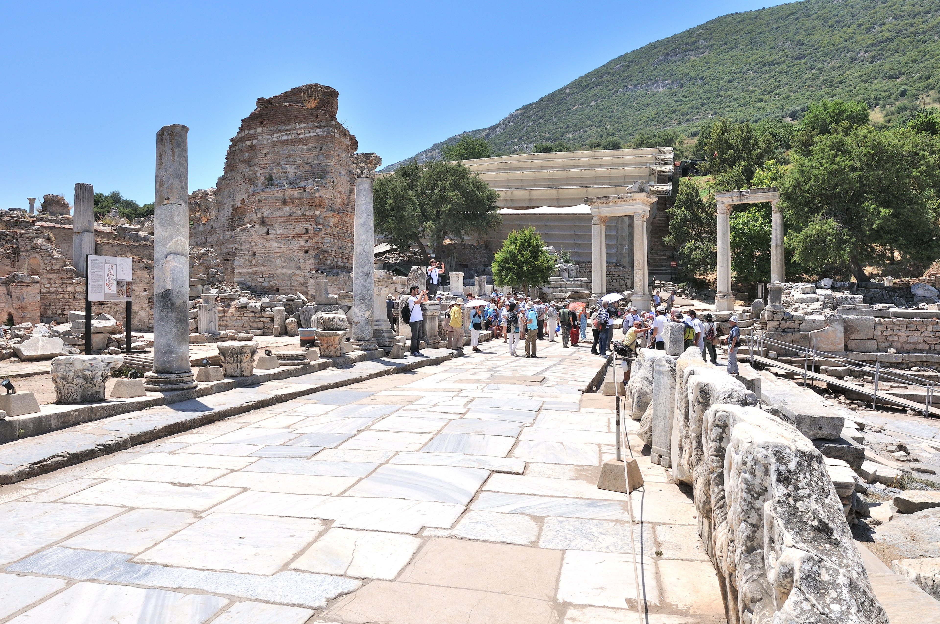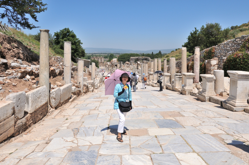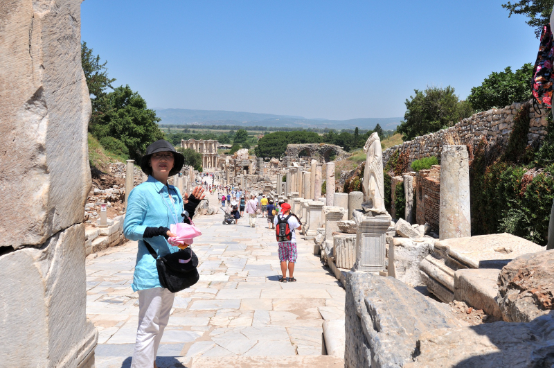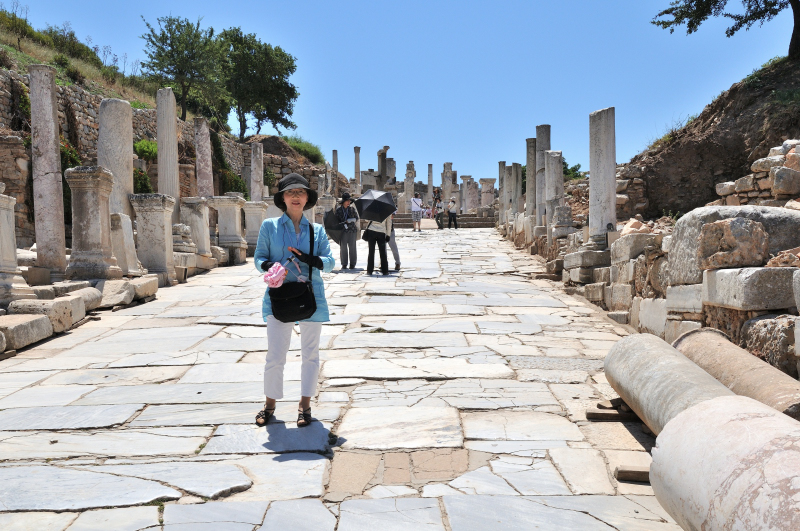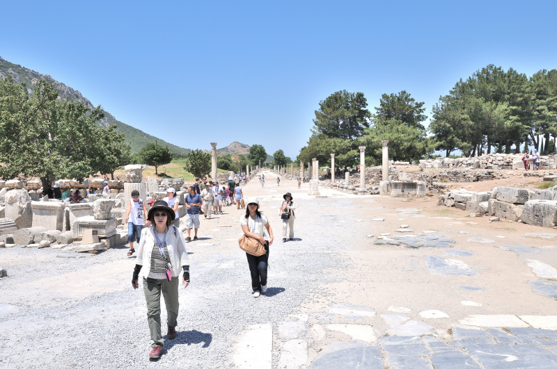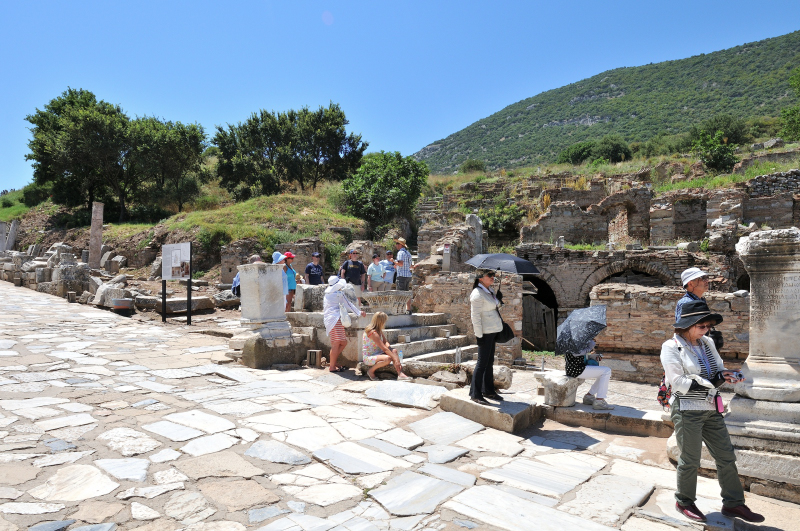 | クレテス通り [Curetes Street] (12:15) 写真の中央部の、一部木に隠れた建物が、ケルスス図書館 [Celsus Kütüphanesi] 。 「東西」MAPLay. 3 C |