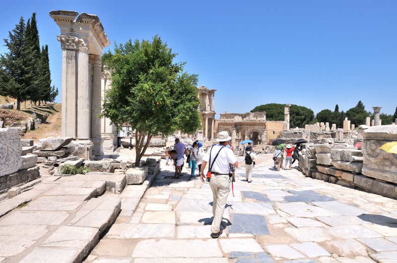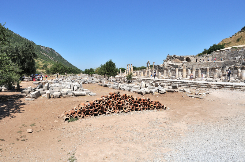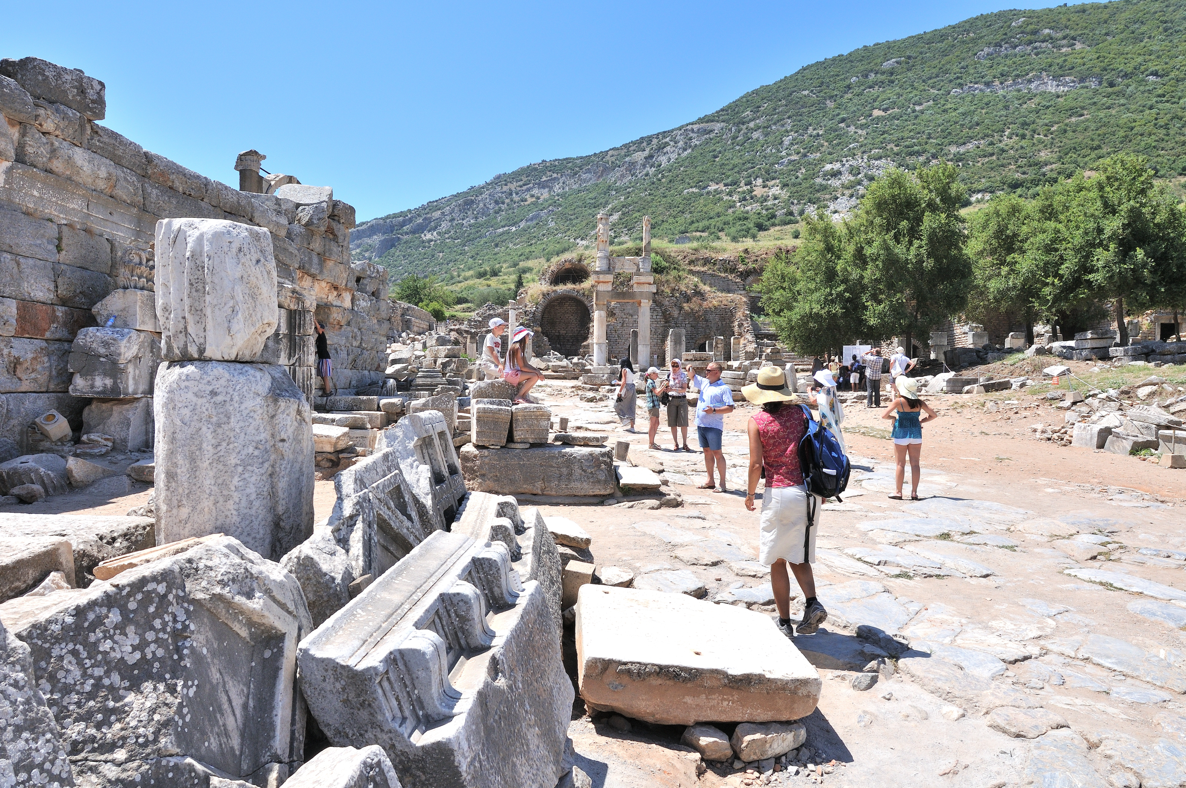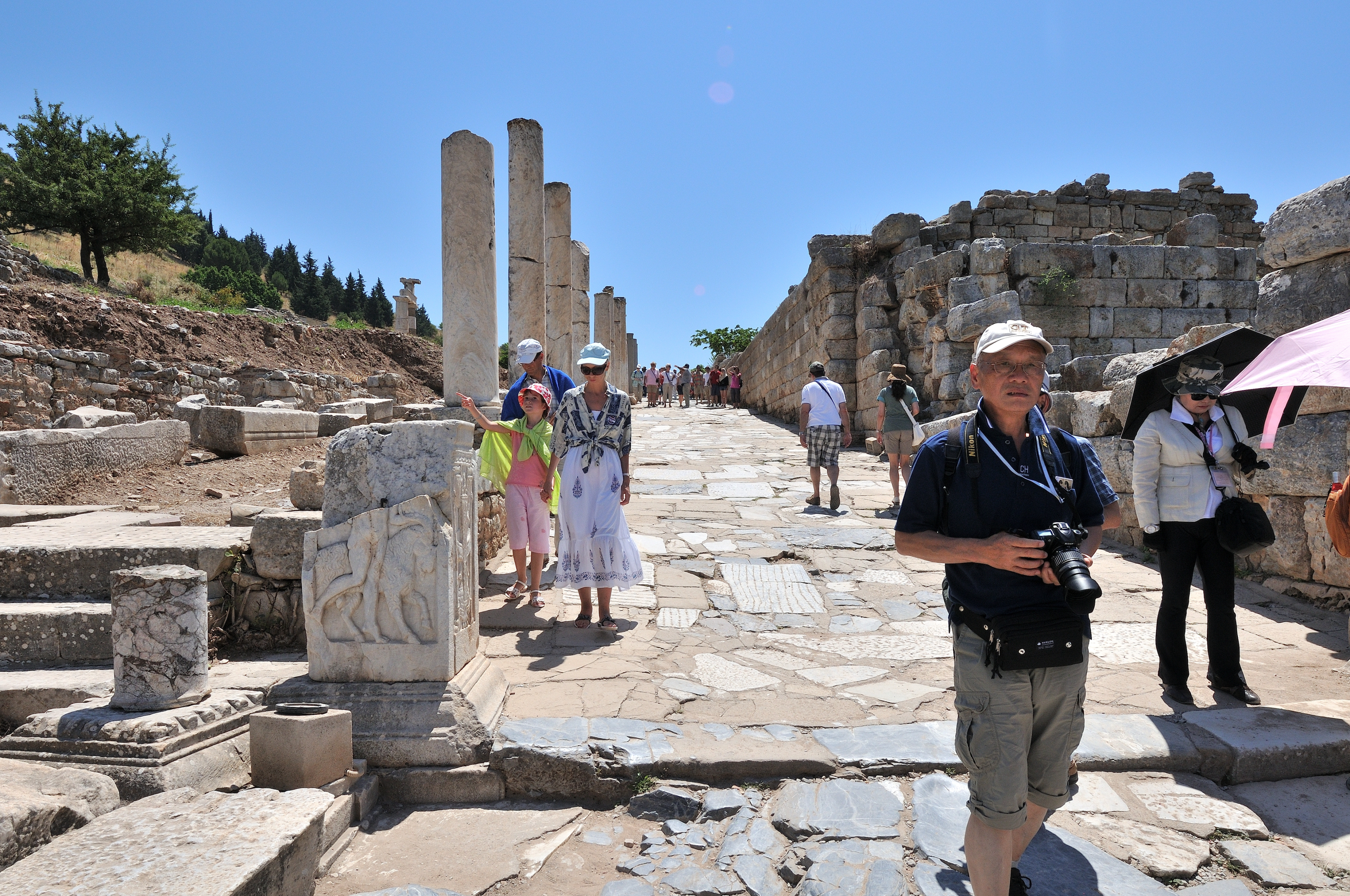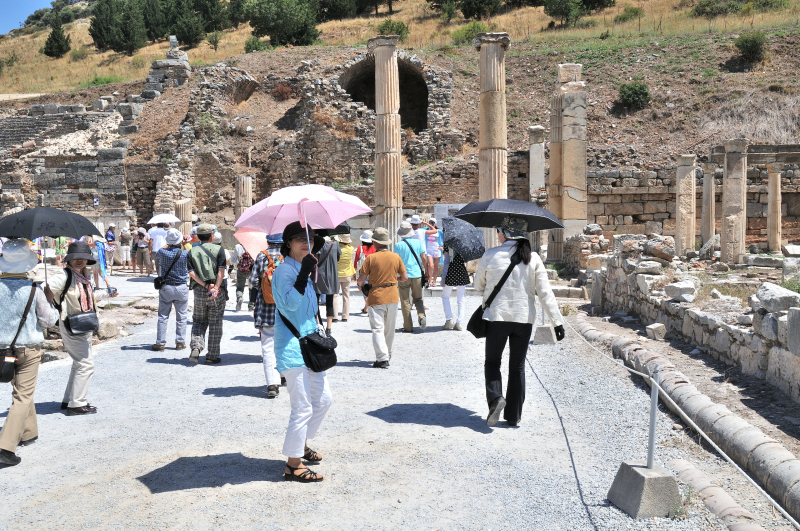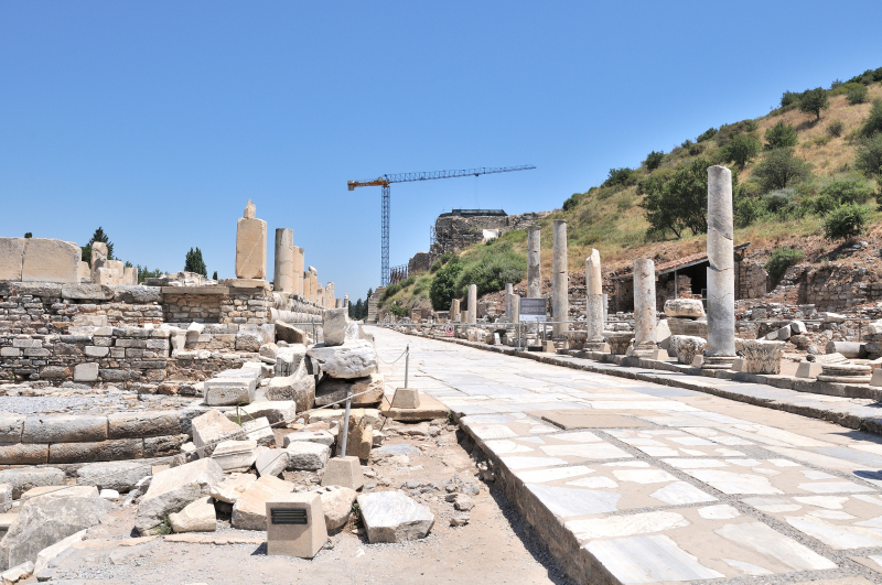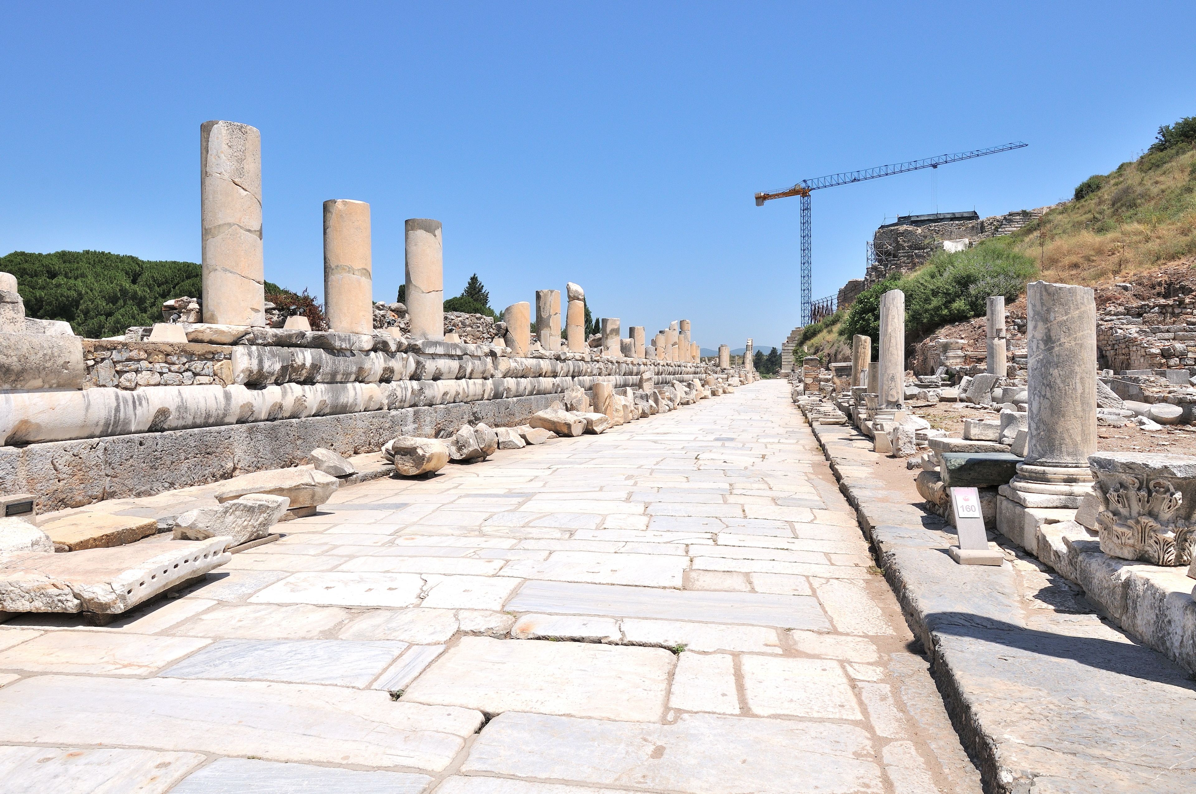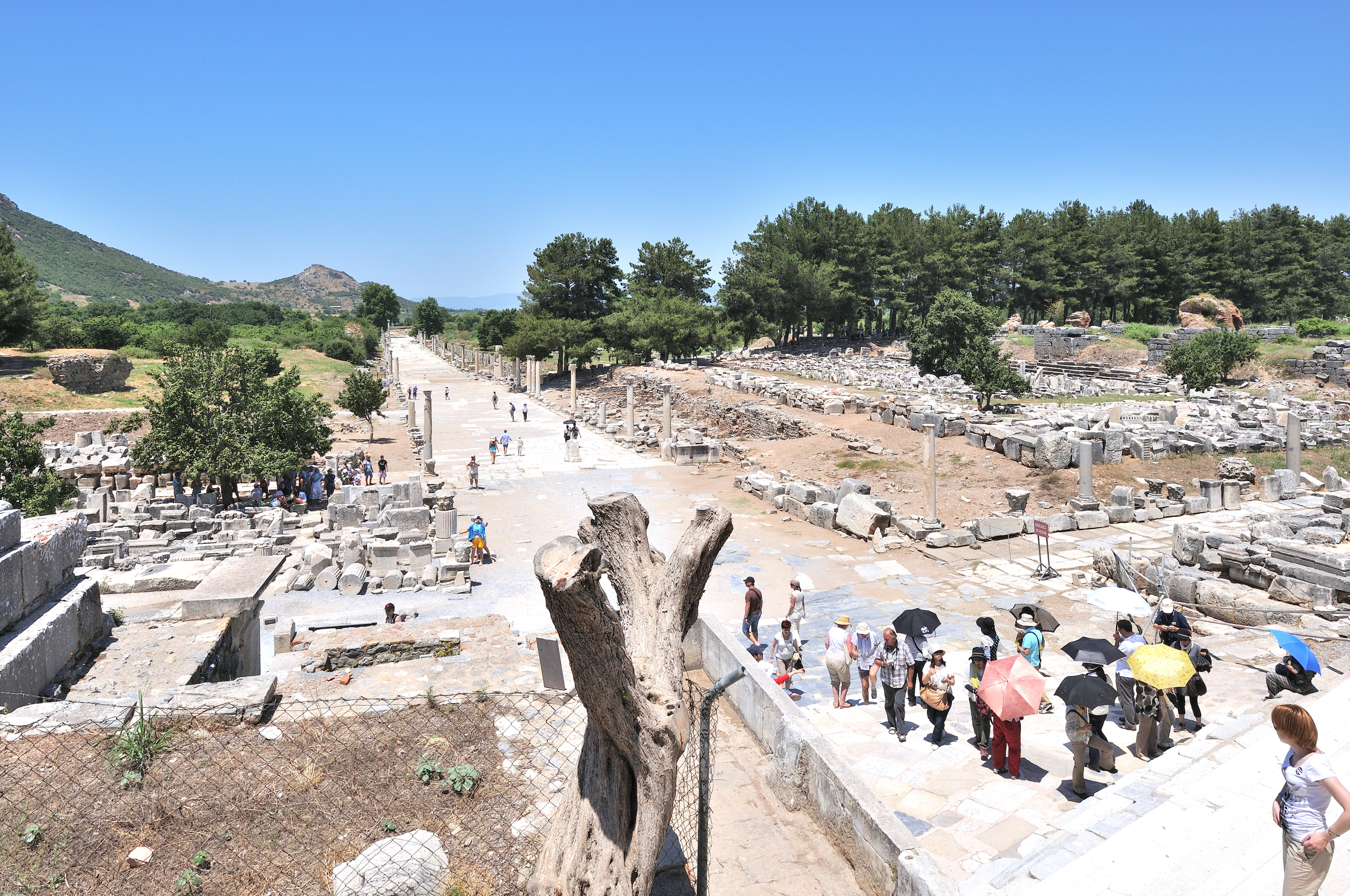 | クレテス通り [Curetes Street] (12:15) 写真の中央部の、一部木に隠れた建物が、ケルスス図書館 [Celsus Kütüphanesi] 。 「東西」MAPLay. 3 C |