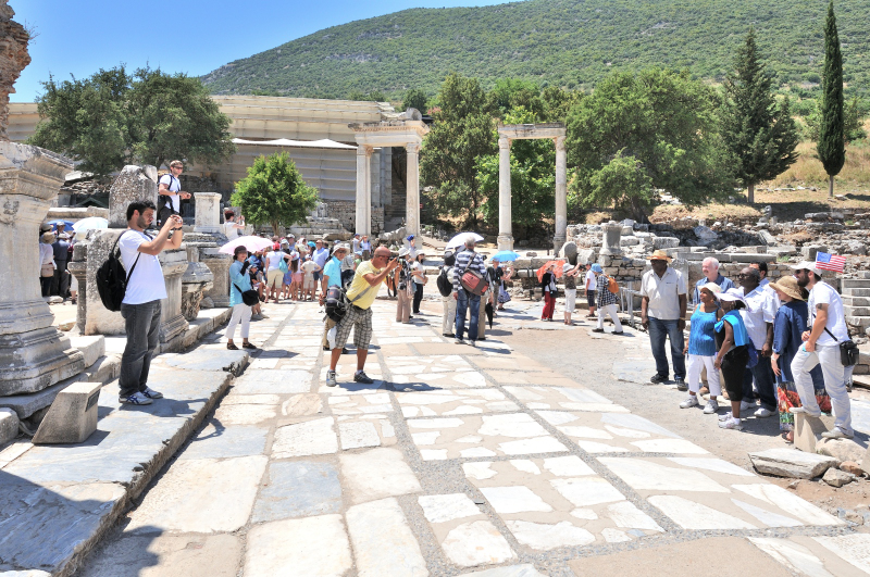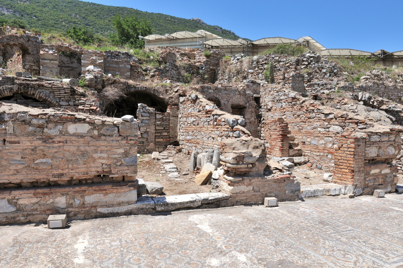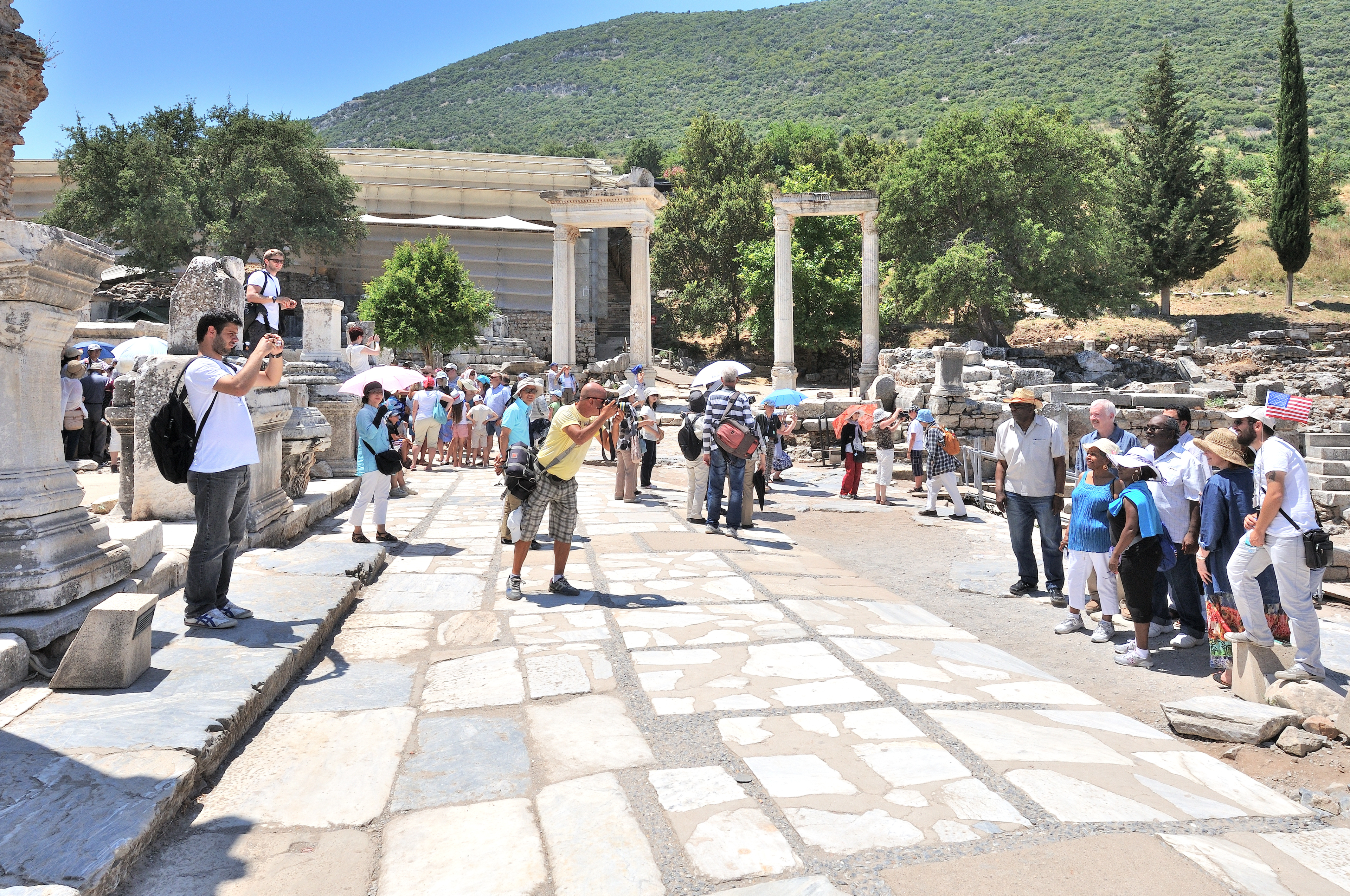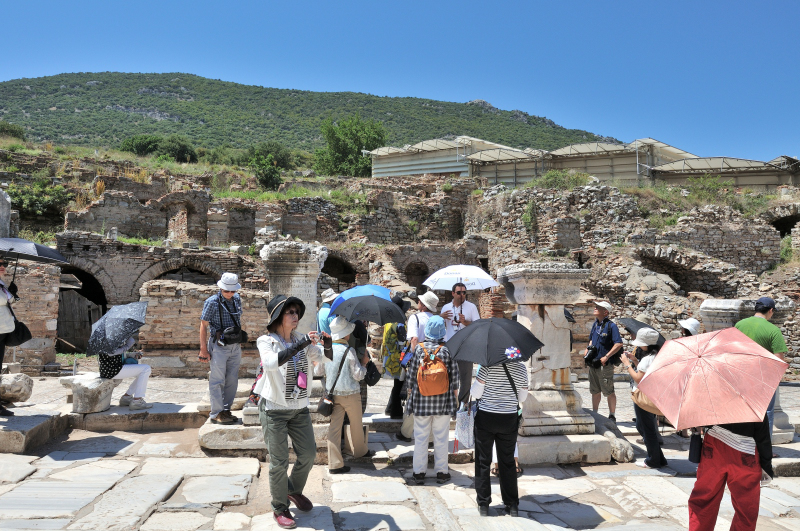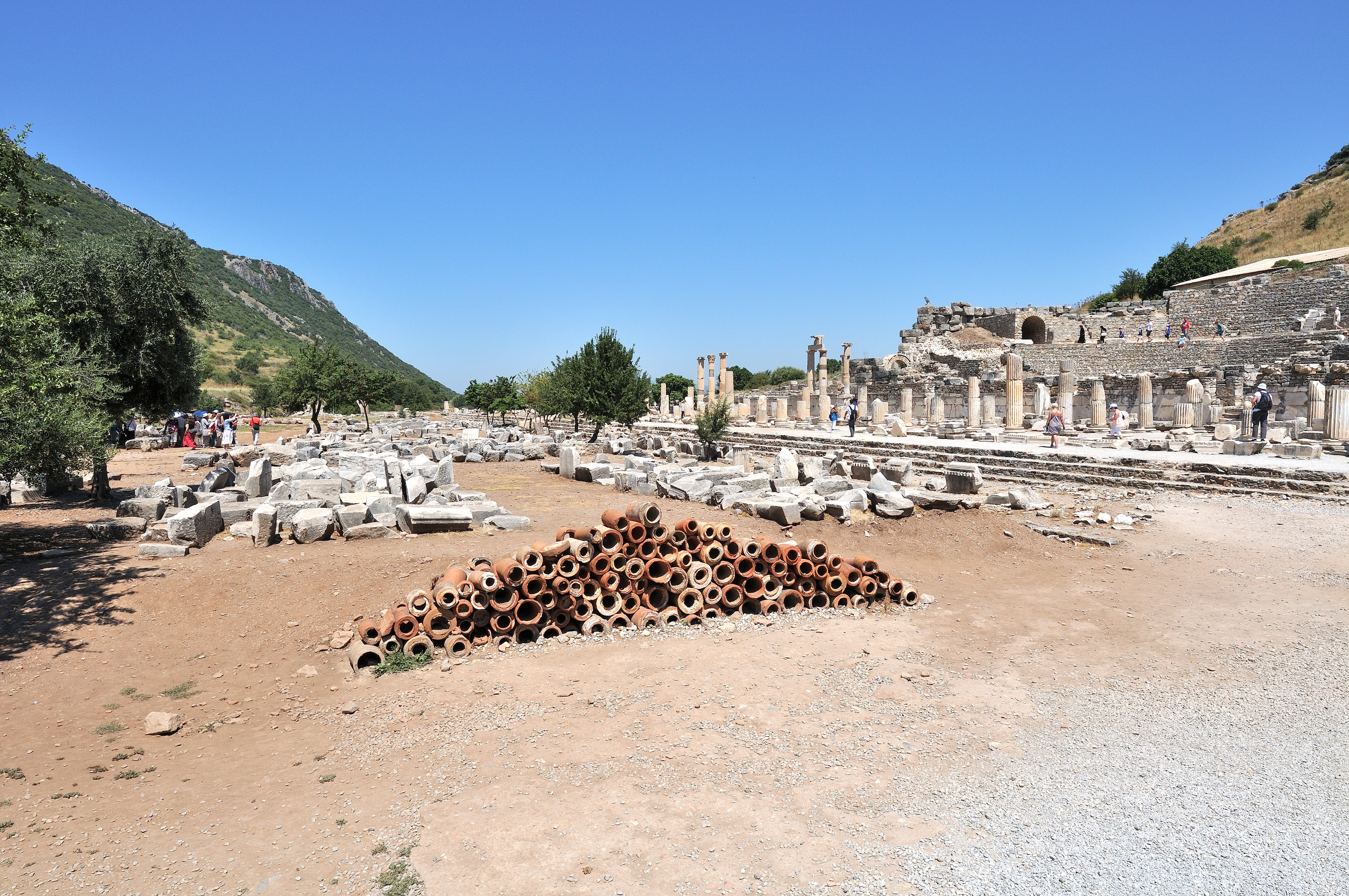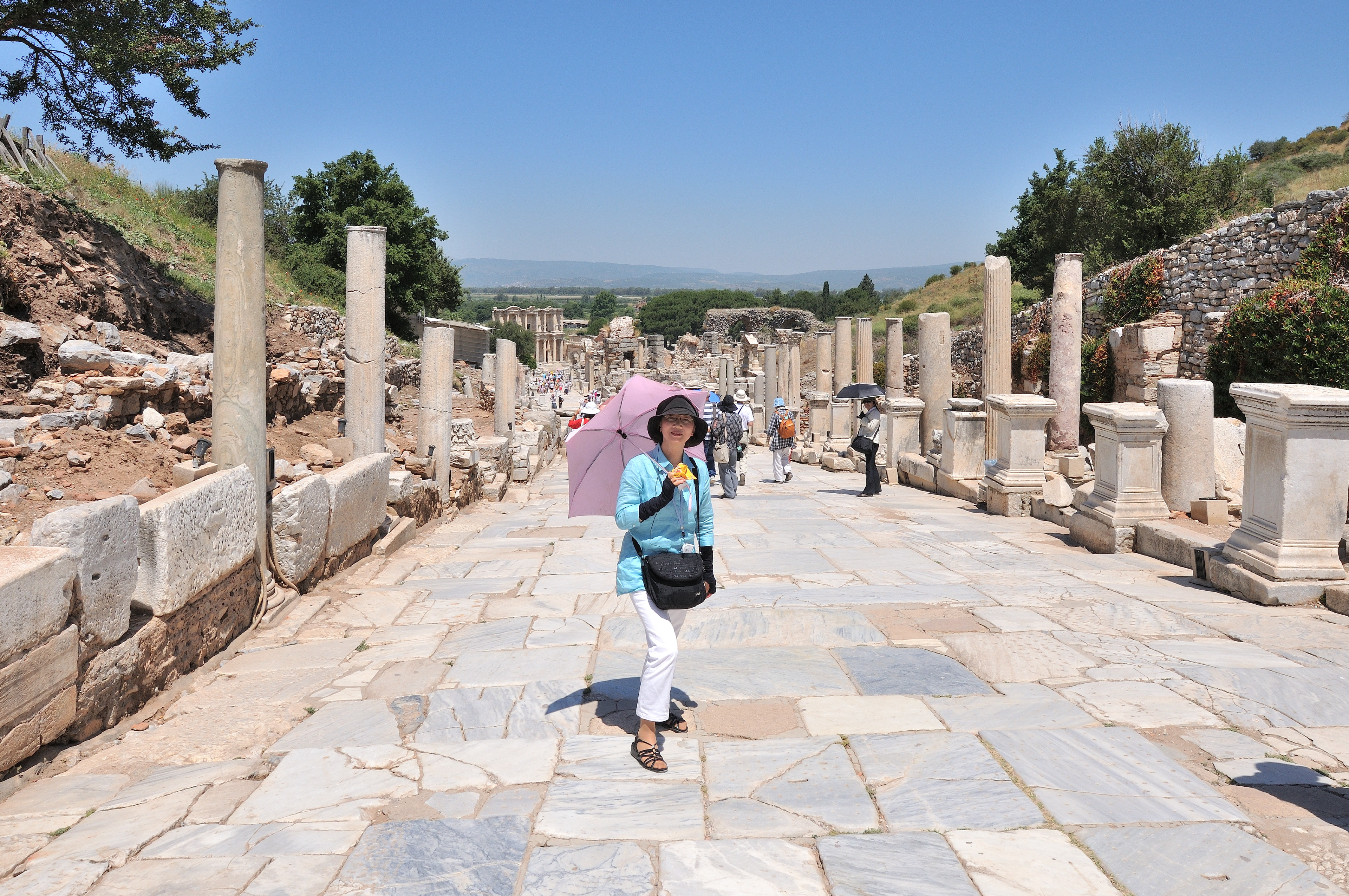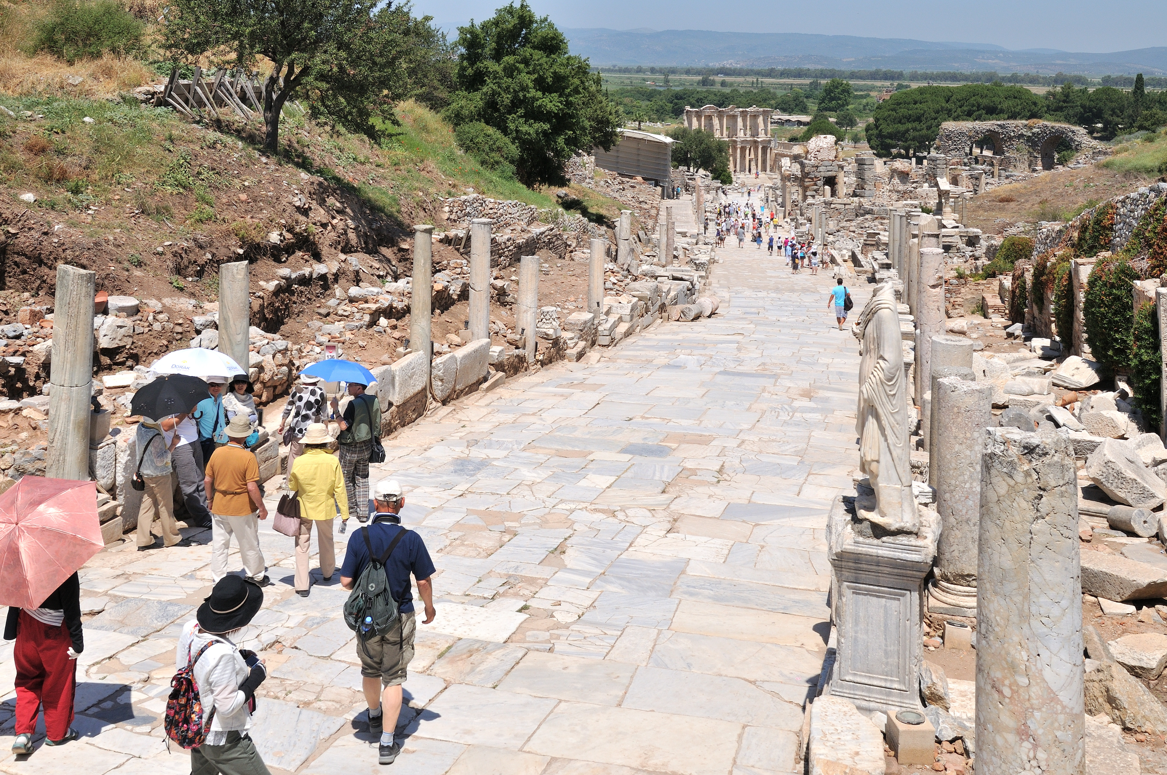 | クレテス通り [Curetes Street] (12:15) 写真の中央部の、一部木に隠れた建物が、ケルスス図書館 [Celsus Kütüphanesi] 。 「東西」MAPLay. 3 C |