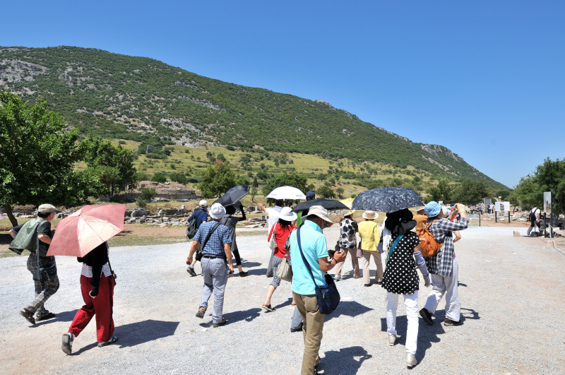| エフェス遺跡 [Efes Örenyeri] エフェソスの起源、一説によれば、紀元前20世紀頃すでに、アナトリアの地母神キベレの神殿をもつ集落があったが、紀元前16世紀になってアマゾネス [Amazónes] と言う女性部族によってこの都市は築かれたと言われている。 この頃、トルコの北にある黒海はアマゾン海と呼ばれており、その地方に住む女性部族は、アマゾネスと呼ばれていた。 この部族は極端な女性主導の社会で、男児が生まれた場合は障害を負わせて奴隷にするか、あるいは父親の元に引き渡し、女児のみを後継者として育てたという。 その反面、女の子が生まれると、優秀な戦士になるための一連の武器の扱い方、馬術などが徹底的に教え込まれ、弓を引くのに邪魔にならないように、片方の乳房を切り取っていたと言われている。 アマゾネスは、勢力を拡大し、小アジア (トルコ共和国のアジア部分) 全体を占領して、無数の都市を築いていった。 紀元前16世紀頃、この地にやって来たアマゾネス達は、アルテミス神殿 [Artemis Tapınağı] の近くで都市を築いた。 その時のアマゾネスのリーダーの名前から、この地はエフェソスと呼ばれるようになった。 紀元前11世紀以降、ギリシアからの移民イオニア人の都市が、アルテミス神殿を中心に栄えたが、小メンデレス川の運んでくる土砂やマラリアの発生に悩まされ、都市の位置を何度か移している。 紀元前6世紀、リディアのクロイソス王が都市を支配した。 このリディア王国時代は、世界で 初めて金 (金と銀の合金) を用いた鋳造貨幣を導入したことで知られている。(エレクトロン貨) その後、起源前5世紀、ペルシャ人が侵攻してきて都市は破壊され、ペルシャの属州となった。 紀元前356年、放火によりアルテミス神殿が焼け落ちた後にアレクサンドロスがやって来て、都市をペルシャから解放し、大王の死後はリシマコスがそれに代わり、神殿は再建された。 この時、神殿の近くにあったエフェソスの都市は、現在遺跡の発掘が進められている場所に移された。 この頃の人口は約10万人と推定されている。 アルテミス神殿は市民のよりどころであり、他の都市から神殿を訪れる者も多かった。 ローマ時代になり、収奪をうけて沿岸の町々が衰退する中で、エフェソスはアジア州の州都として繁栄を続けた。 1世紀、キリスト教がこの地方を中心に浸透し始めていた。 パウロも伝道のためこの都市を訪れており、彼が投獄されたという建物が、ビュルビュル山の中腹に残っている。 3世紀、ガリア人が侵入して神殿を破壊。 4世紀初め、キリスト教がローマ国教になり、エフェソスはキリスト教の中心地となる。 この頃の人口は約25万人で6世紀頃まで栄えた。 15世紀オスマン時代には、マラリアの恐怖から都市の人口が激減、もとは港湾都市であったが、土砂の堆積により港は完全に埋まってしまい、衰退したエフェソスは建物まで埋没してしまった。 19世紀の末から発掘が進められているが、現時点では全体の10分の1しか発掘されておらず、全て発掘されるまで200年~300年かかると言われている。 現在は、エーゲ海域で最大の遺跡が眠る、エーゲ海地域随一の観光地となっている。 |