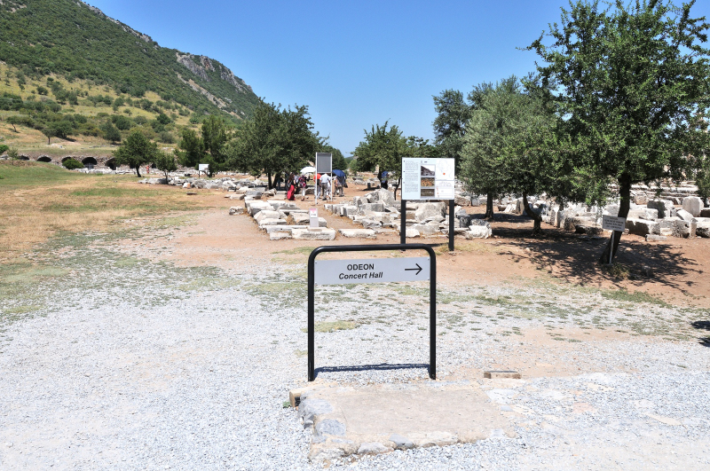 | オデオン [Odeon] (11:40) かつて数百人が集まって政治議論を行った共同議会場跡で、音楽会なども行われた。 屋根があったため比較的保存状態が良い。 「北北西」MAPLay. 2 j |