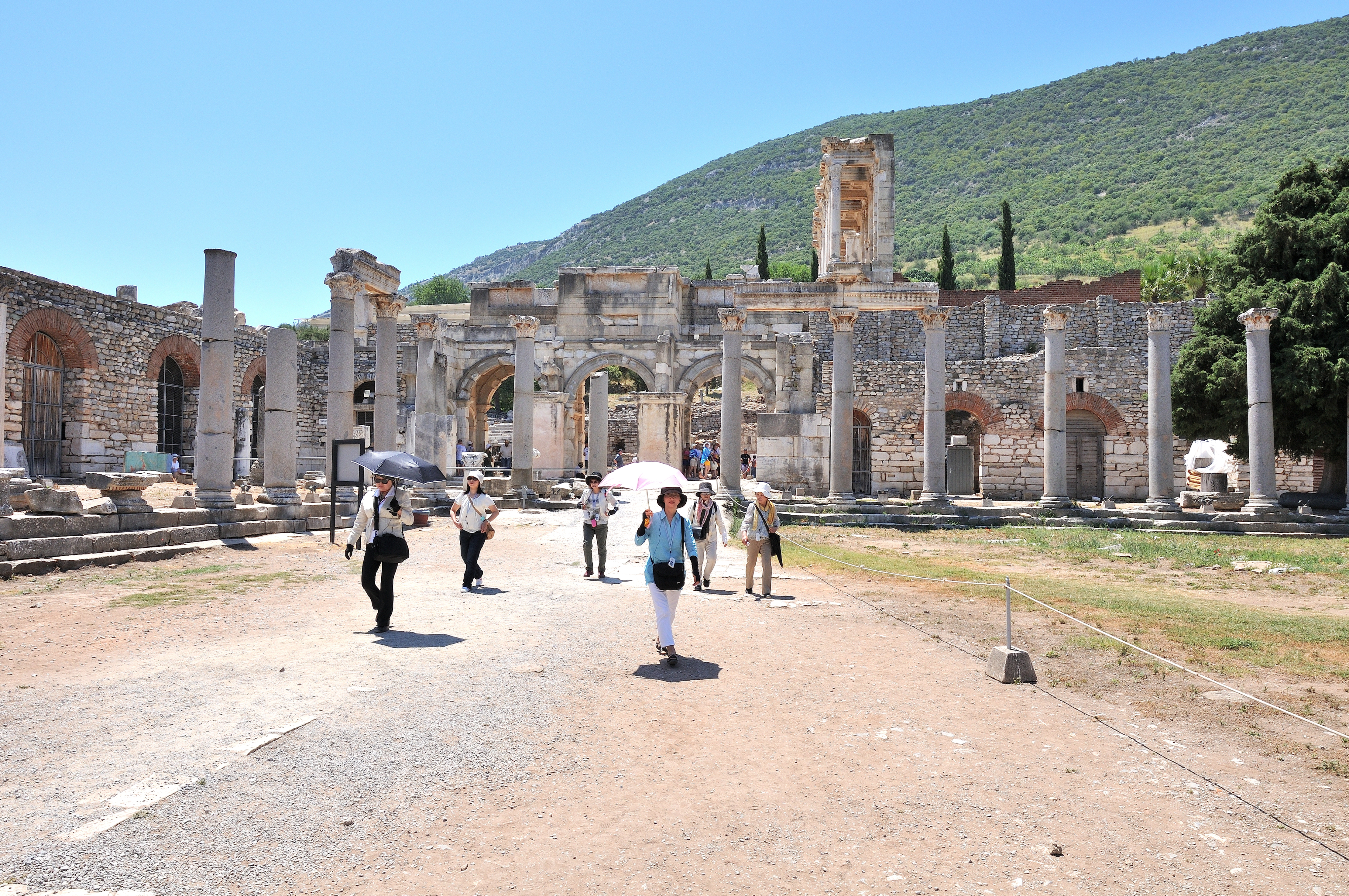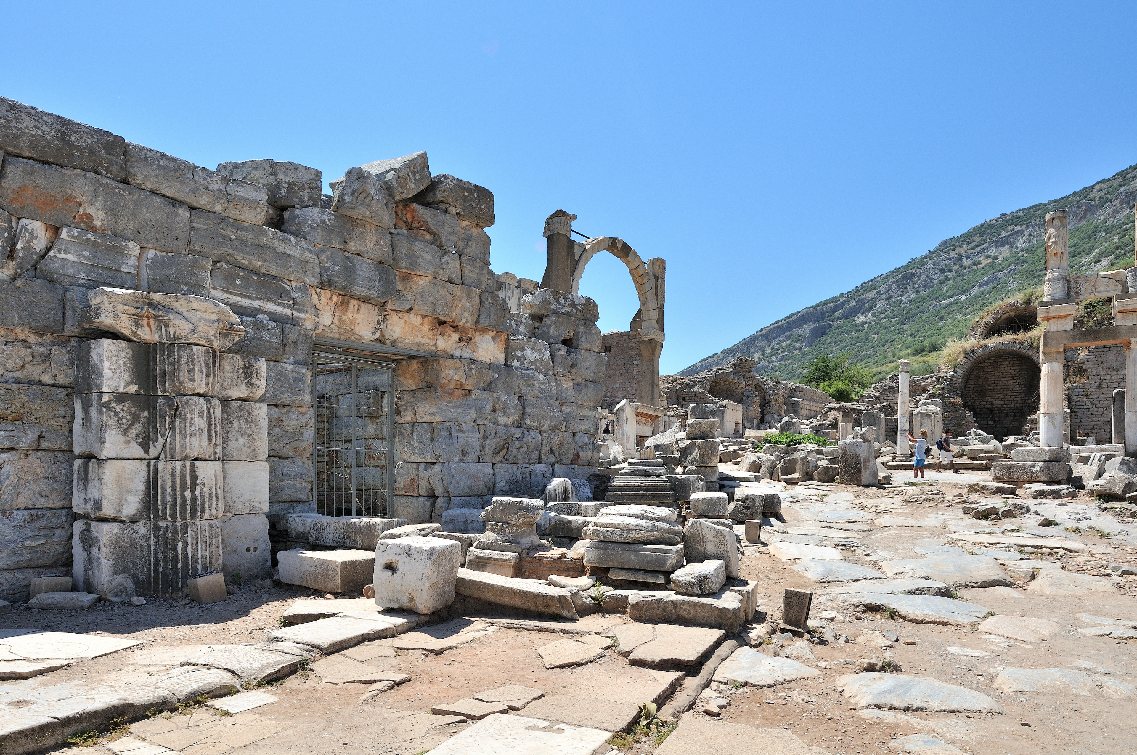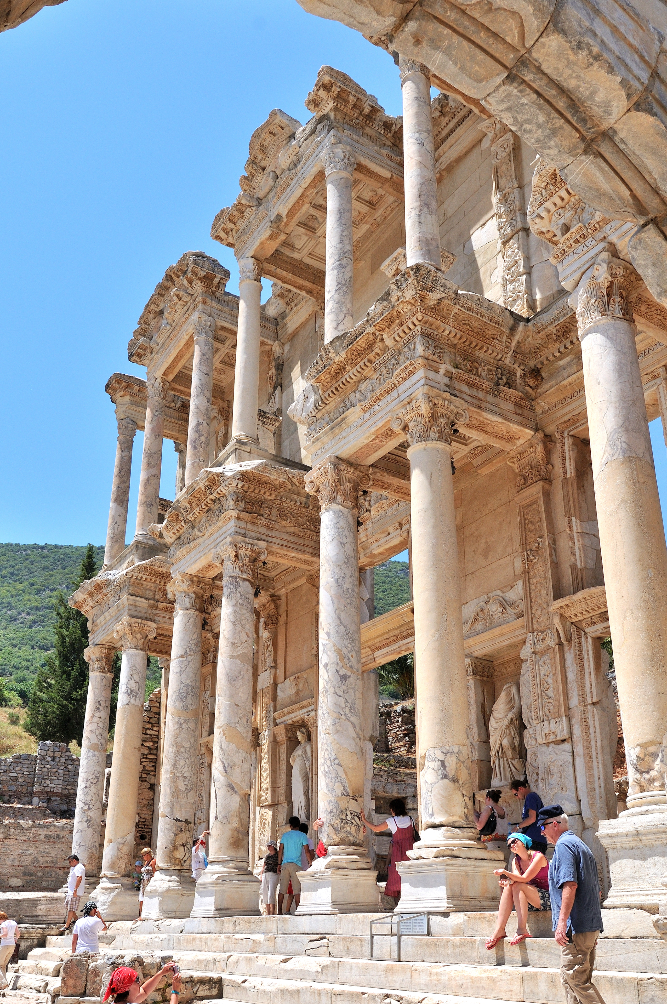 | ケルスス図書館 [Celsus Kütüphanesi] (12:26) 図書館の壁龕/ニッチ[Nichi] には4体の女性像がありケルススの人物像を表していると言われている。 向かって左から一つ目は知恵、二つ目は美徳、三つ目は疑問、四つ目は理解を表している。 この図書館は全て土の中に埋まっていたが、修復によって現在の姿になった。 「西南西」MAPLay. 3 F |