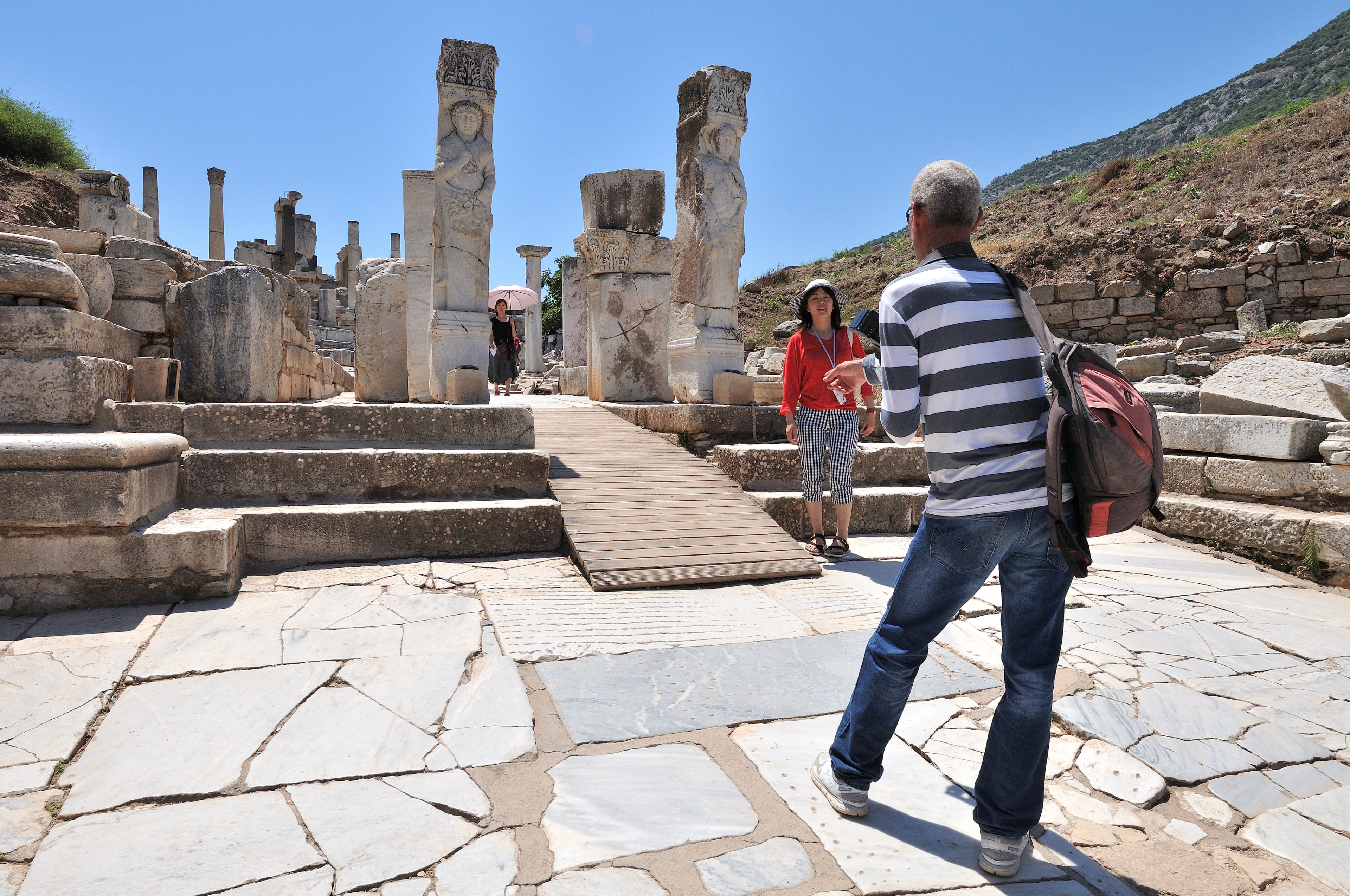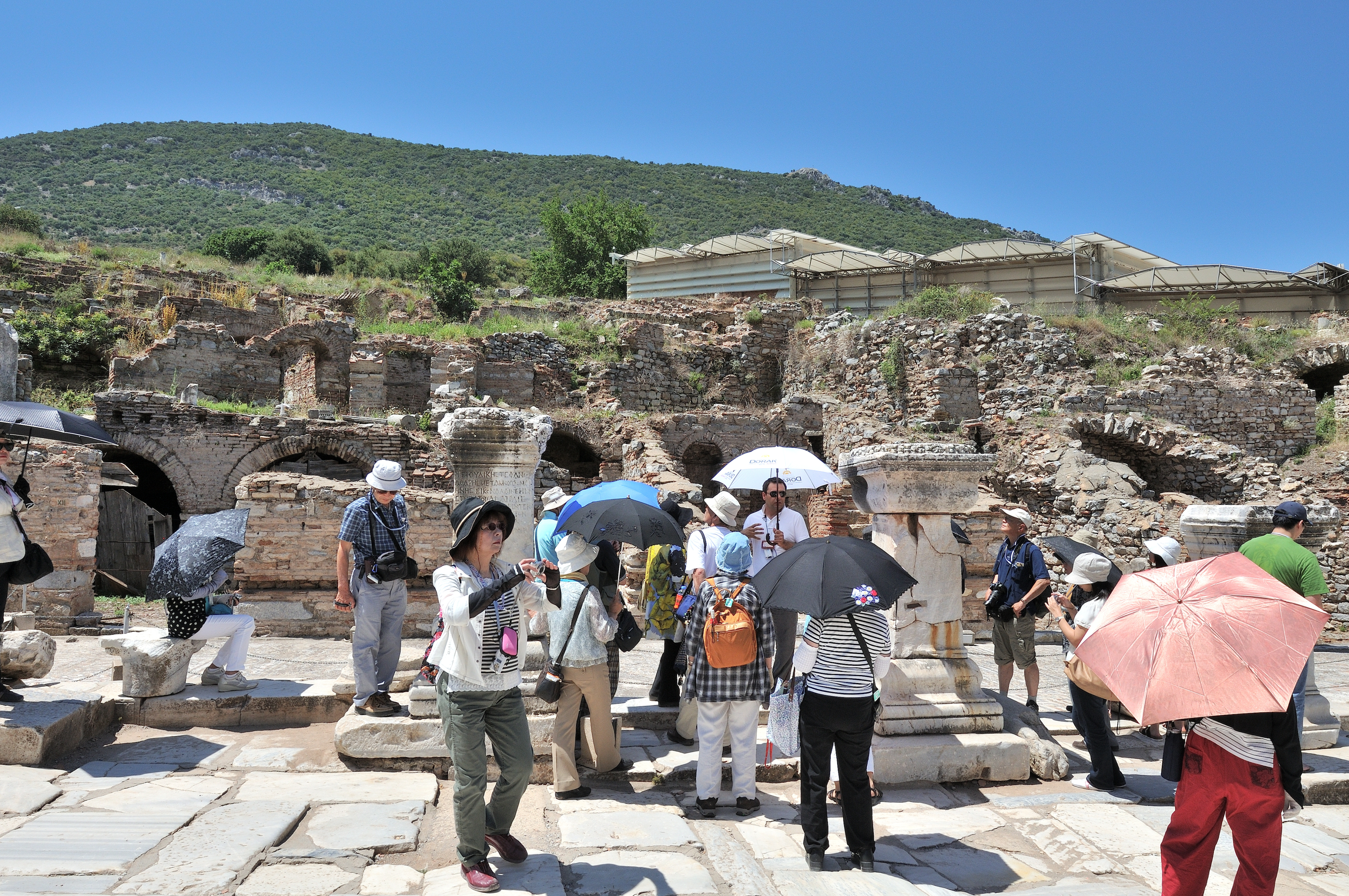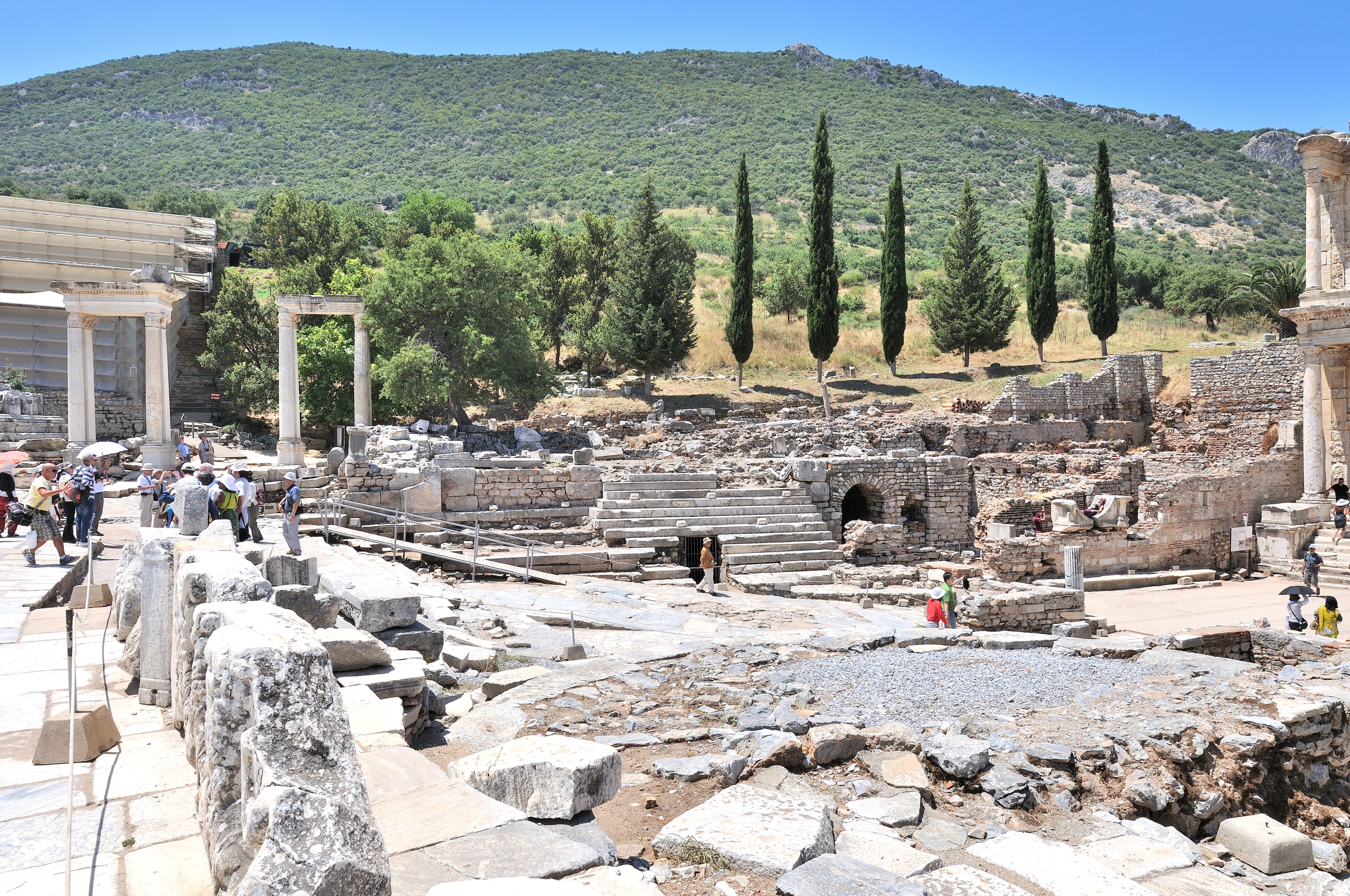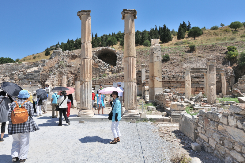 | ケルスス図書館 [Celsus Kütüphanesi] (12:26) 図書館の壁龕/ニッチ[Nichi] には4体の女性像がありケルススの人物像を表していると言われている。 向かって左から一つ目は知恵、二つ目は美徳、三つ目は疑問、四つ目は理解を表している。 この図書館は全て土の中に埋まっていたが、修復によって現在の姿になった。 「西南西」MAPLay. 3 F |