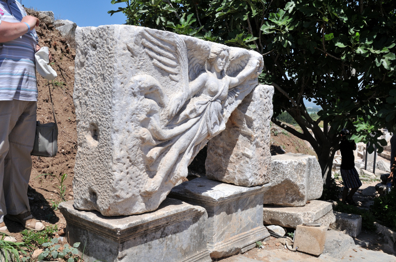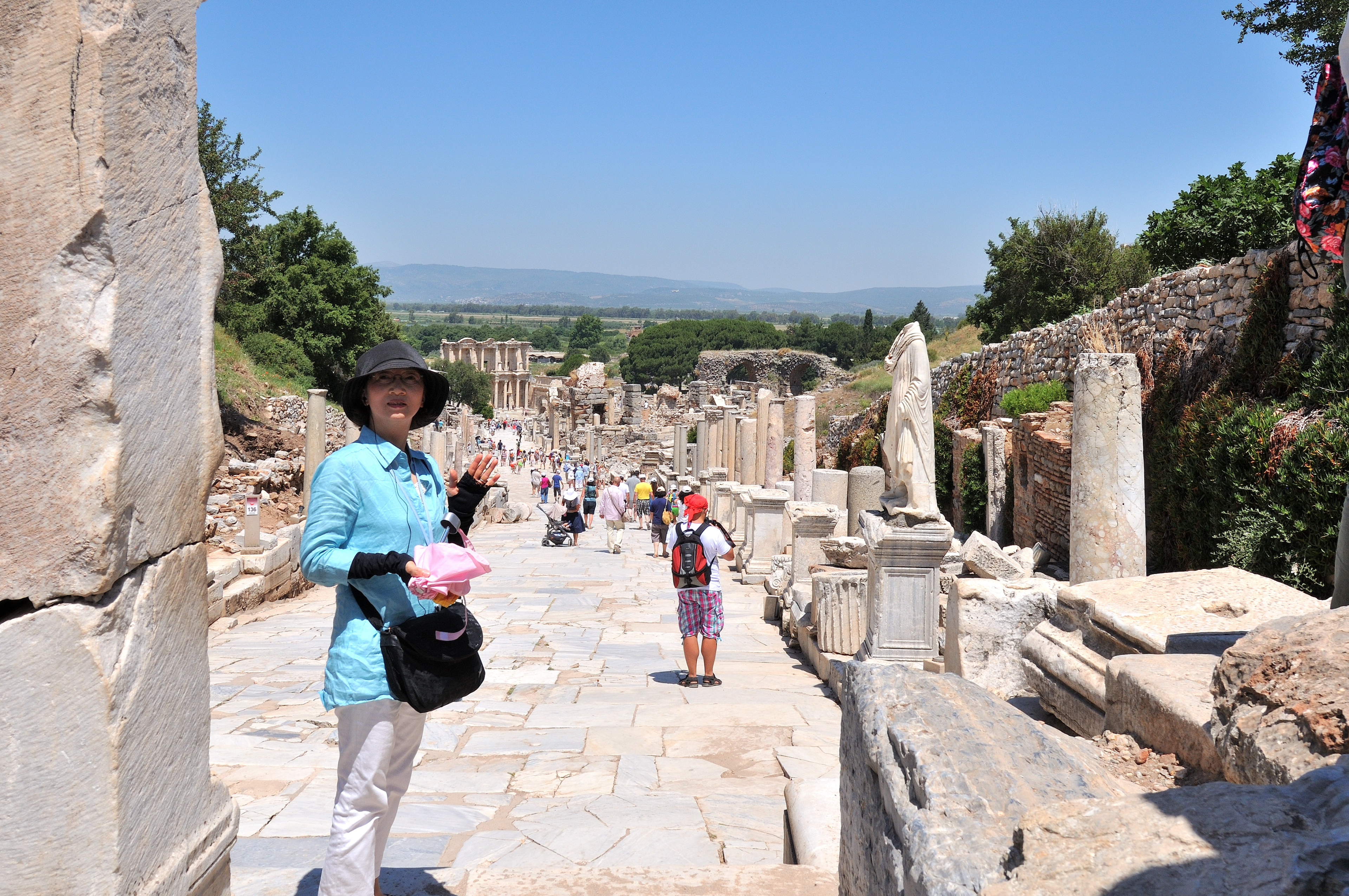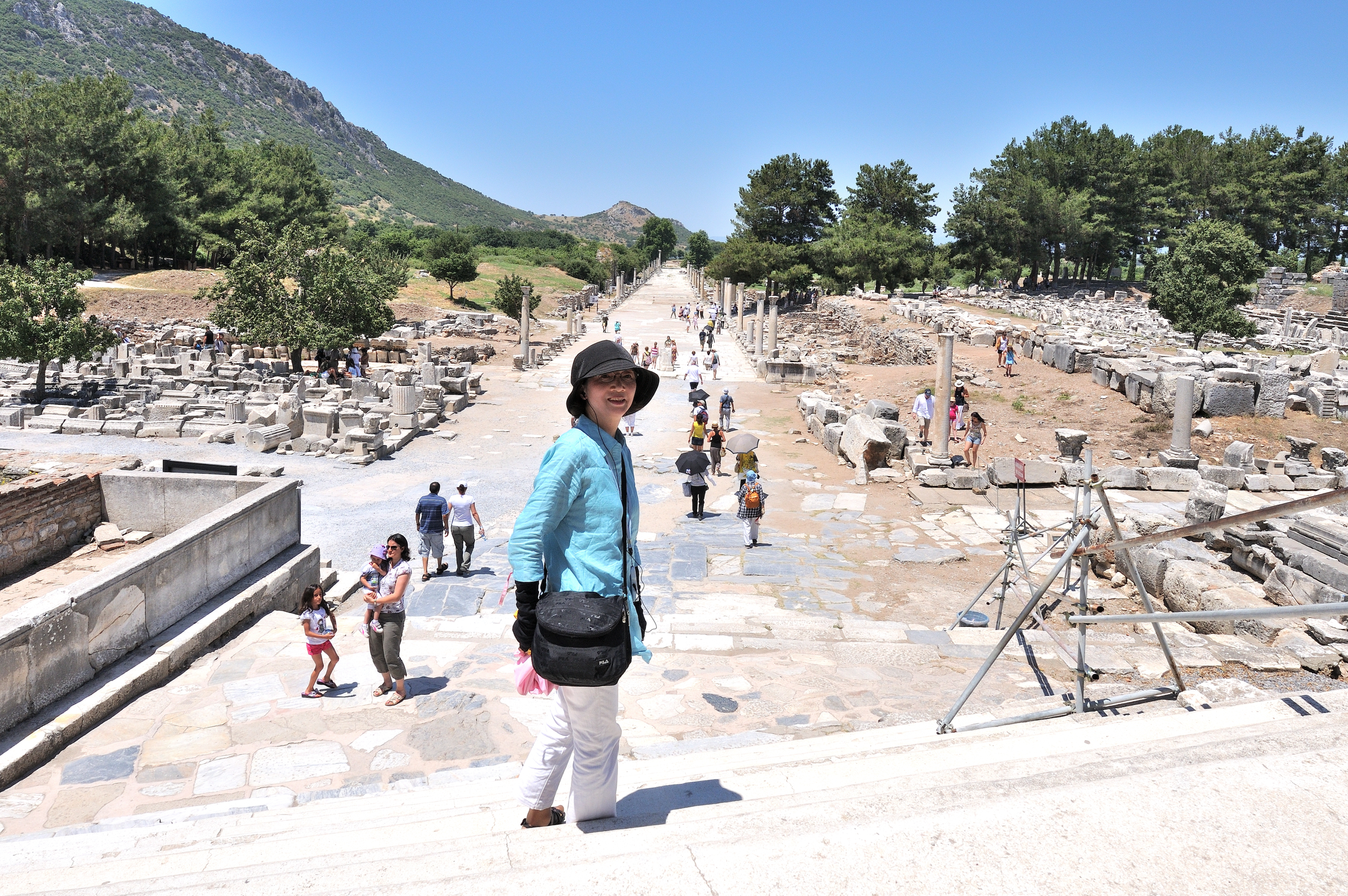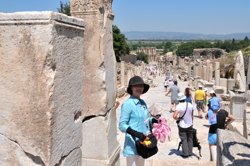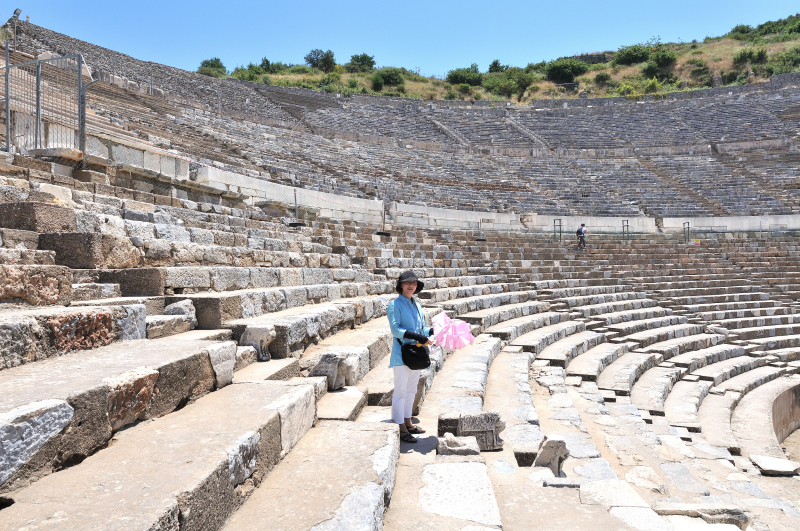 | エフェス円形劇場 [Efes Anfi Tiyatro] (12:42) 石段に座って写真を撮っている女性の両腕に、漢字で “ 飛行機 ” と書いてあったので、『 あっ飛行機と書いてある 』 と言うと彼女は振り向いて 『 I want to be an engineer because I love airplanes. So,I'm writing "飛行機" to the arms. 』 と応えてくれた。 どこの国の人で、なぜ日本語で書いてあるのかは不明。 「東北東」MAPLay. 3 N |