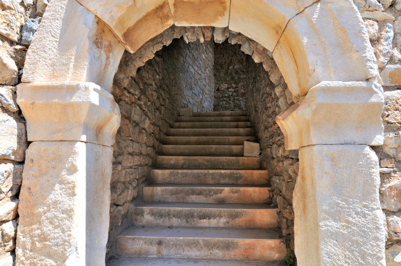 | オデオン [Odeon] (11:40) 階段の両サイドにはライオンの足のレリーフがあり、ローマの権力を表している。 「北北東」MAPLay. 2 j |