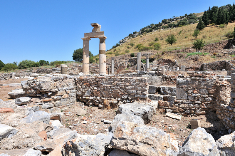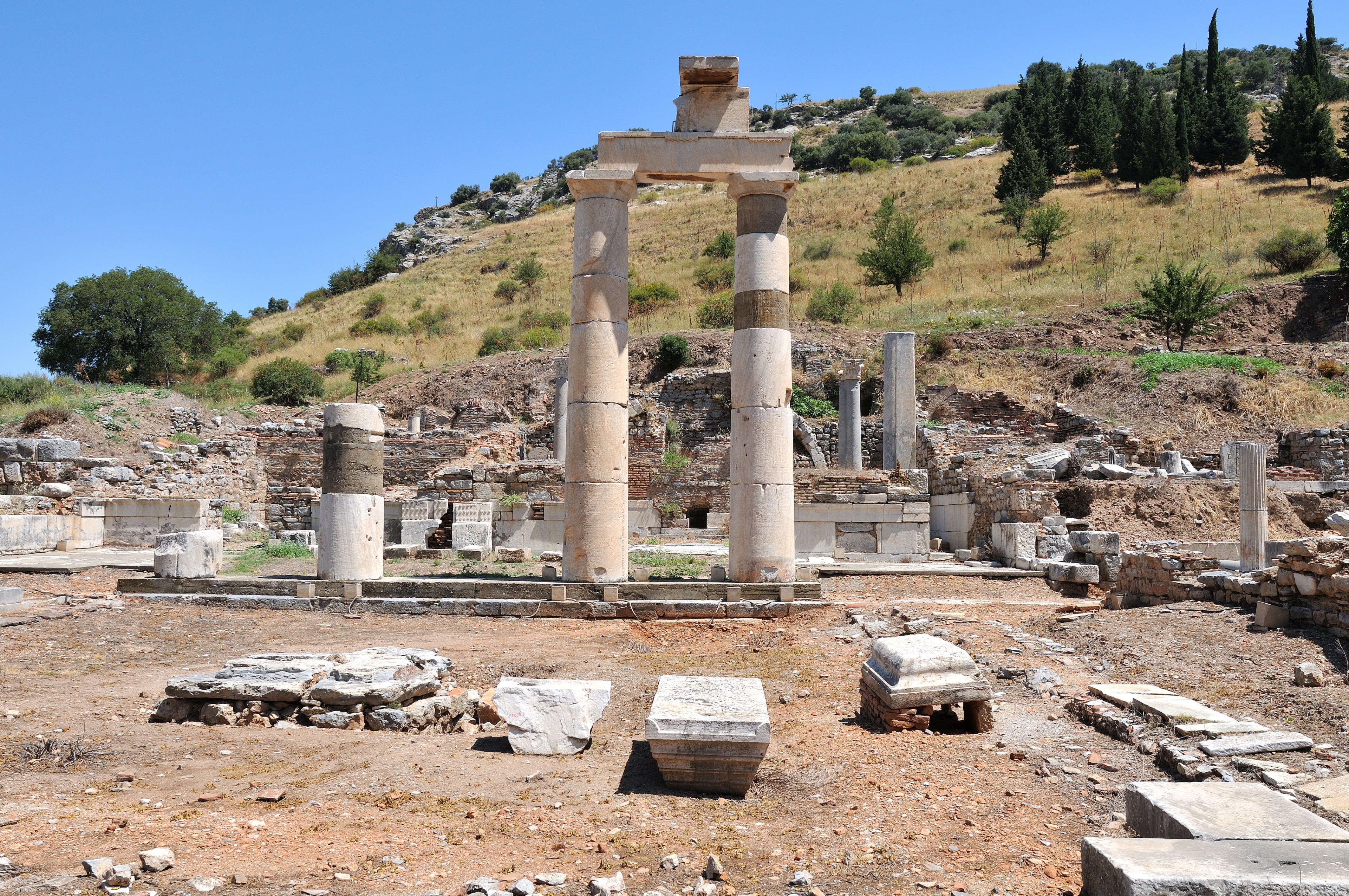 | ドミティアヌス神殿 [Domitianus Tapınağı] (11:50) 2本の柱の上にはレリーフがあり、左はドミティアヌス皇帝、右は夫人のレリーフ。 「南」MAPLay. 2 q |
