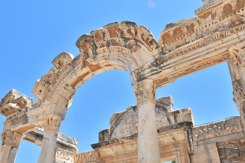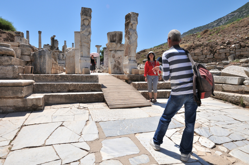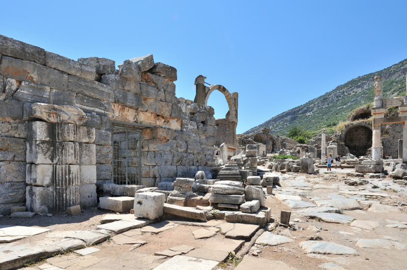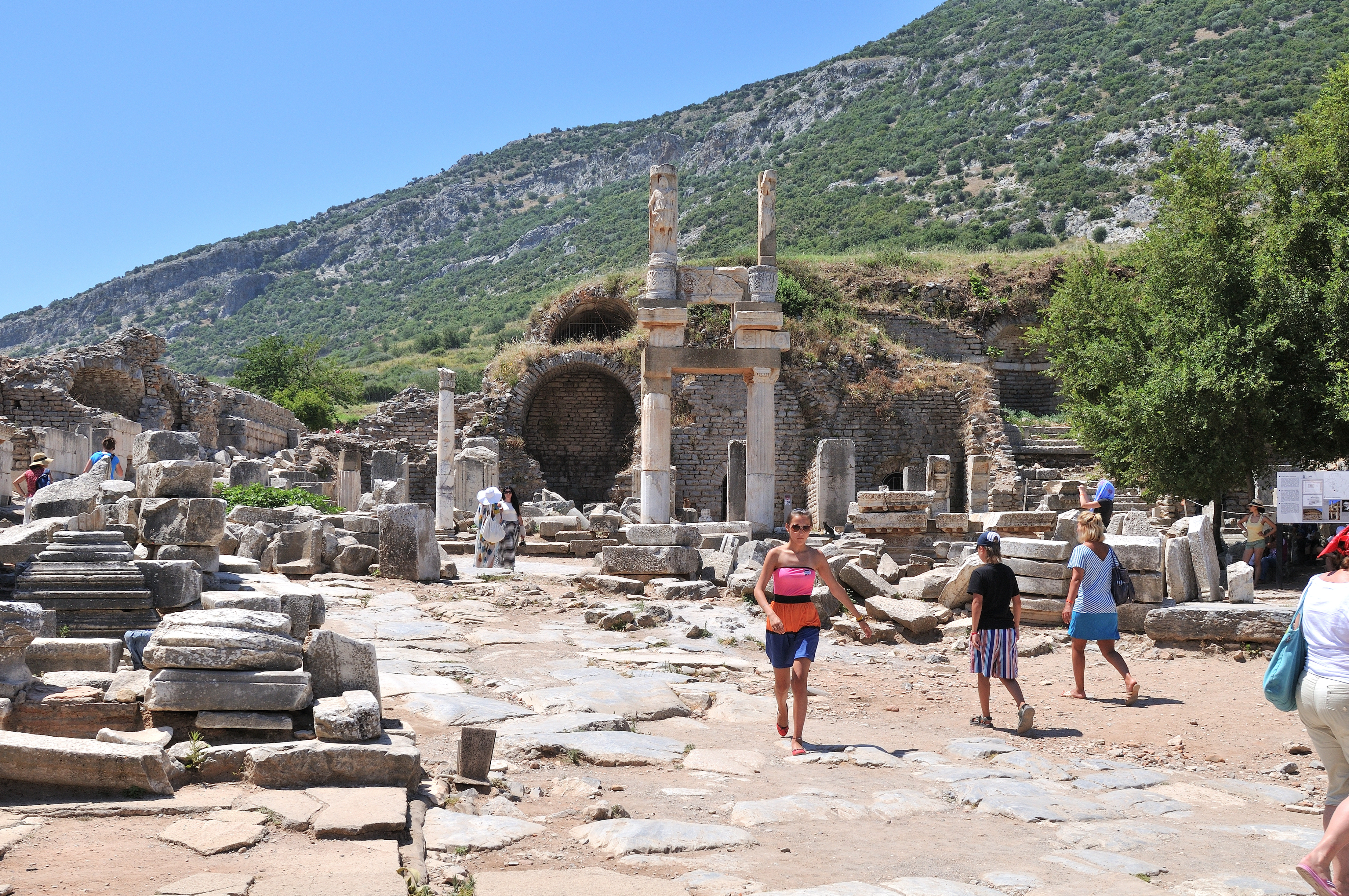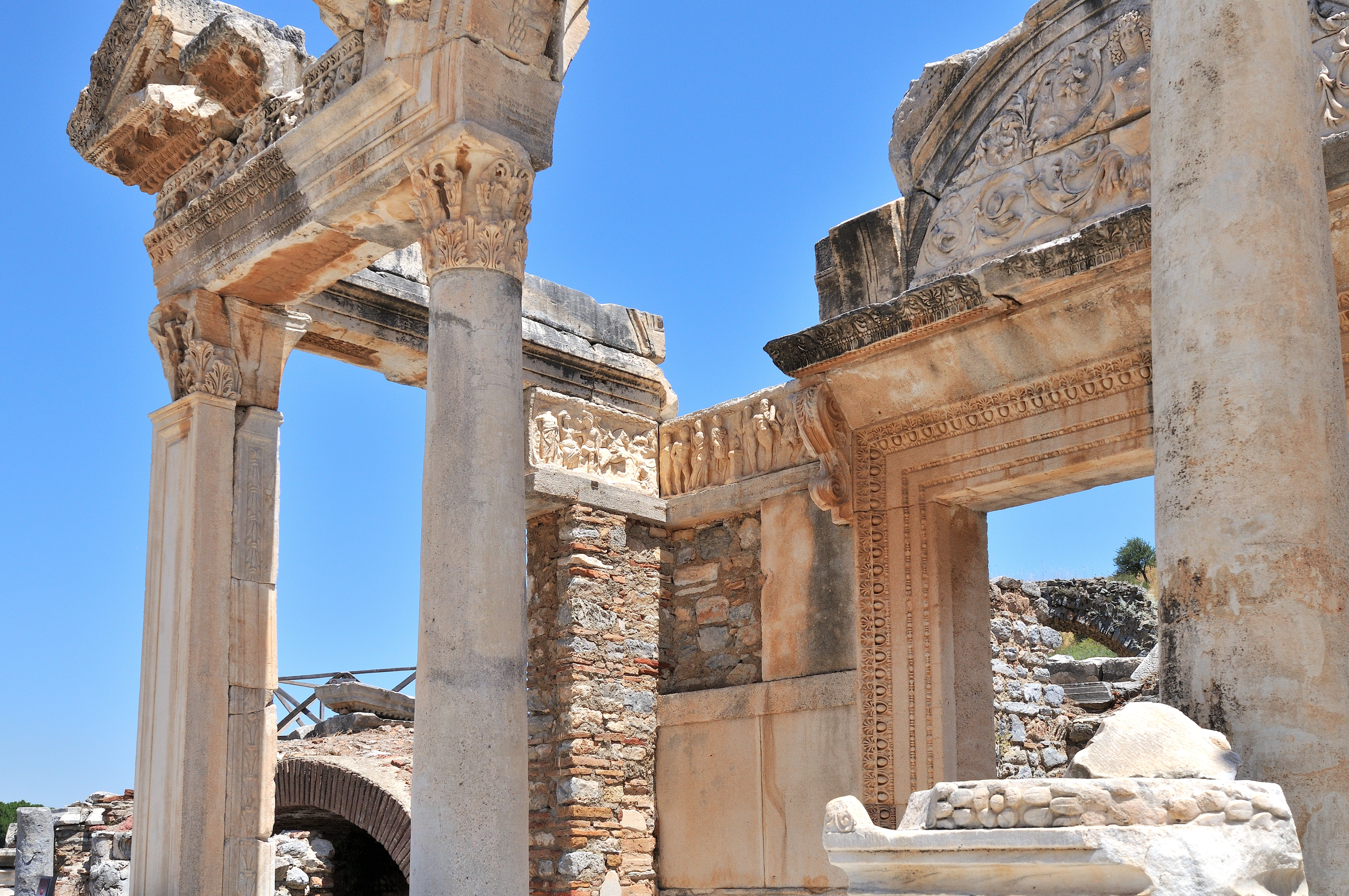 | ハドリアヌス神殿 [Hadrian Tapınağı] (12:10) 左の壁には沢山の女神や神の像が彫られている。 「北」MAPLay. 3 A |