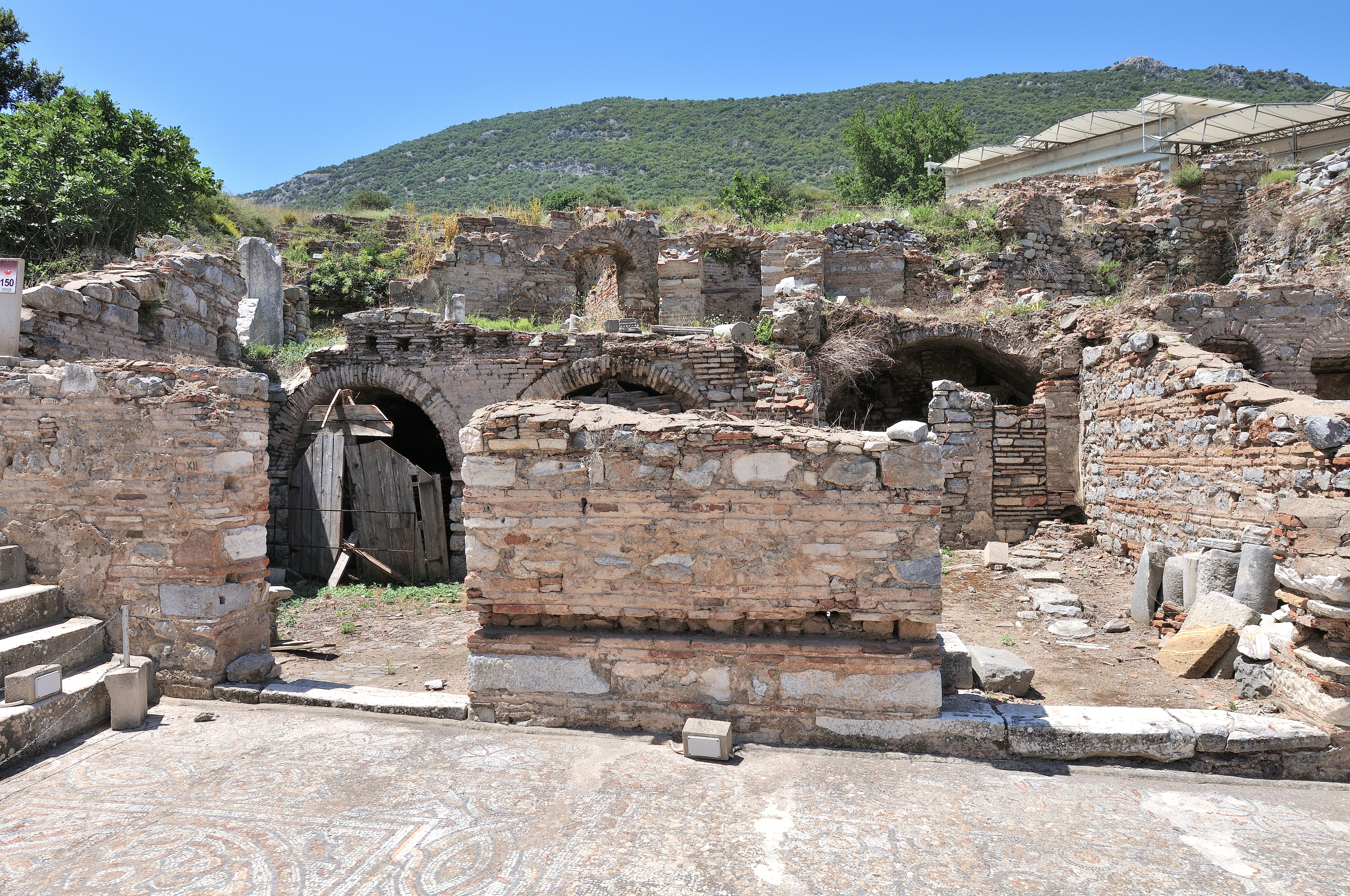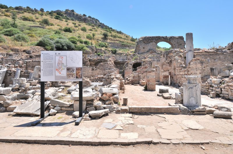 | 売春宿の遺跡 [genelev kalıntısına] (12:24) クレテス通りとマーブル通りに面する絶好地にあった古代最古の娼館で、アルテミス神殿が火事で焼失した後、神殿の再建のために売春宿の収入が使われたと言われている。 この町は大きな港町であったため、神聖な役目として始まった、この売春宿は世界最古の職業となった。 ちなみに、娼館の前には図書館があり、この図書館から娼館まで地下道でつながっていたと言われている。 「東」MAPLay. 3 E |