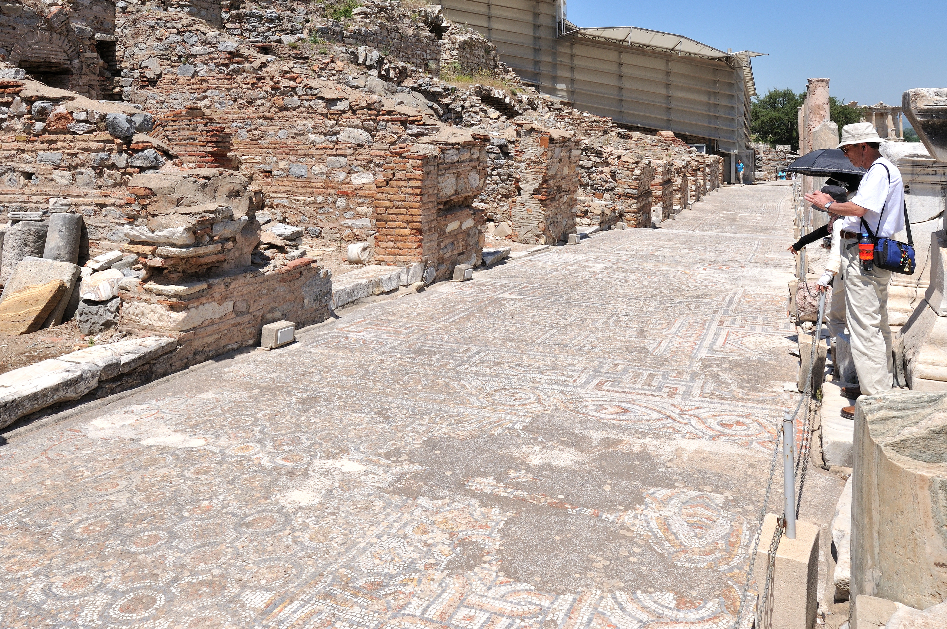 | モザイクの歩道 (12:07) 高級住宅地の前では、2000年も前に造られたモザイクの歩道が発掘されている。 「西北西」MAPLay. 2 w |