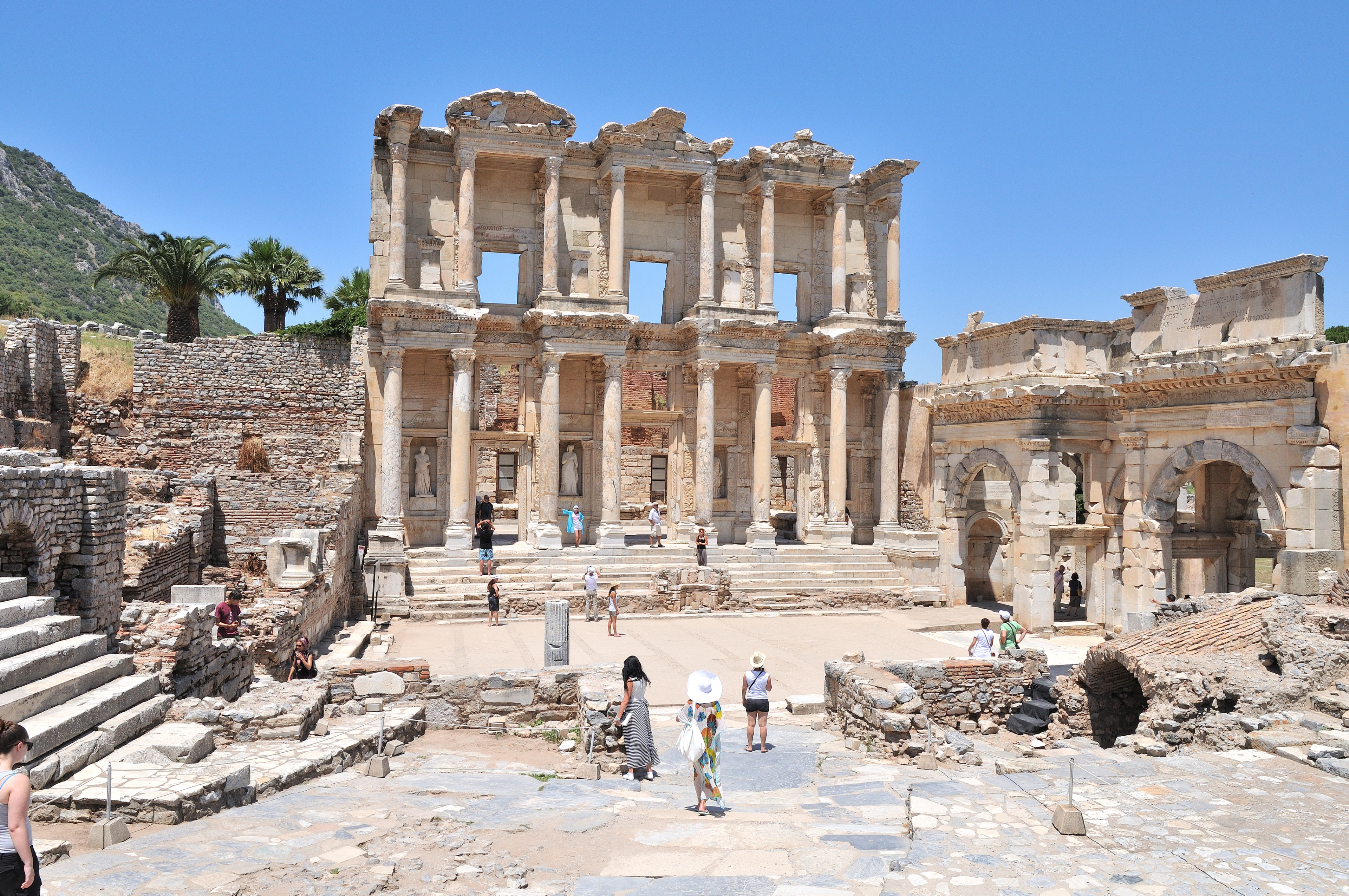 | ケルスス図書館 [Celsus Kütüphanesi] (12:16) ケルスス図書館は古代の図書館で、三番目に大きな図書館と言われている。 一番目はエジプトのアレクサンドリア図書館 [Βιβλιοθήκη της Αλεξάνδρειας ] 、二番目はトルコのベルガマ図書館 [Bergama Kütüphanesi] 、そして三番目がケルスス図書館だと言われている。 ここには羊皮紙に書かれた、10万冊以上の本が所蔵されていたと言われている。 かつては、大学はなく図書館が大学の役目を果たしていた。 「北西」MAPLay. 3 D |