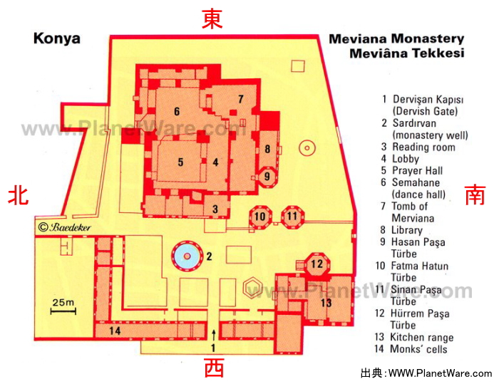 | メヴラーナ博物館内の見取り図。 Map from PlanetWare.com |