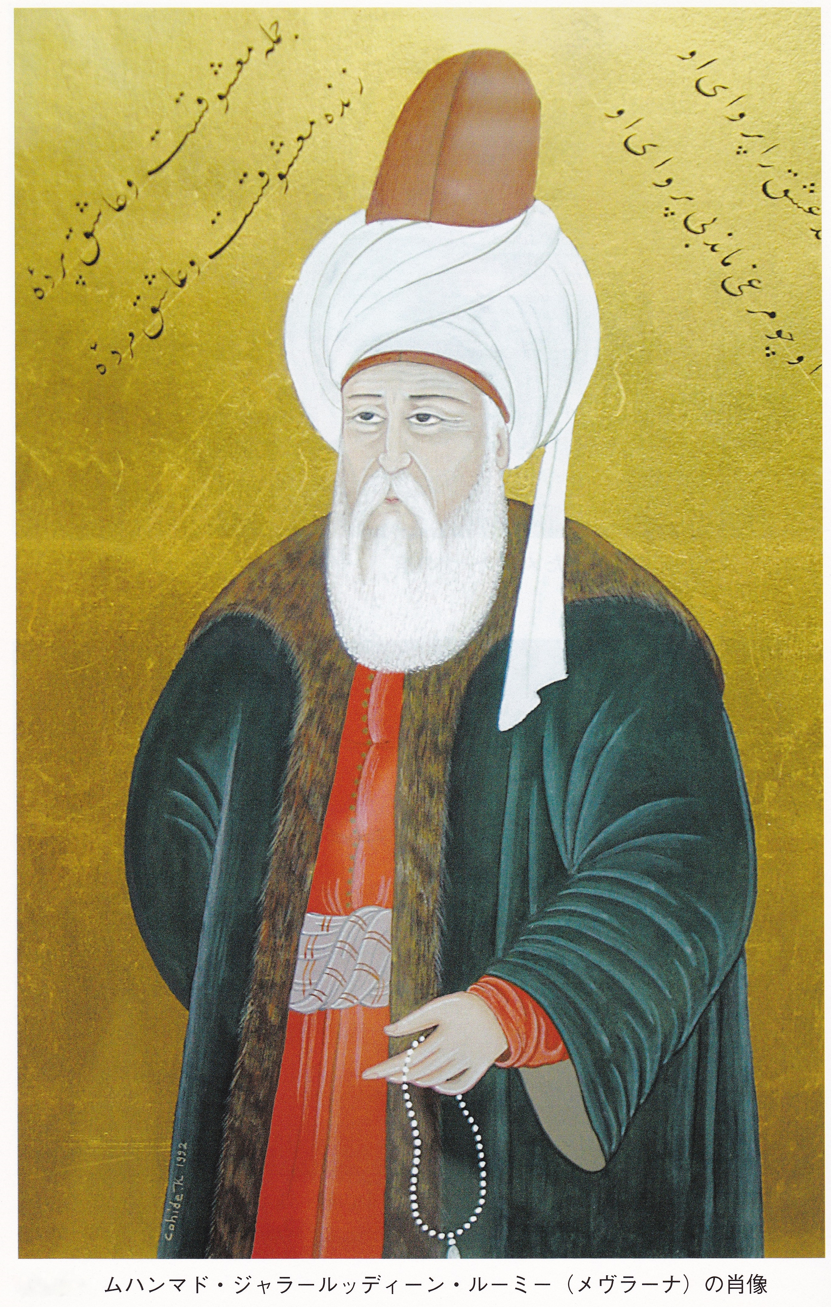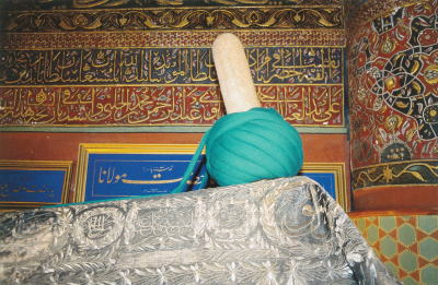 | 霊廟内に安置されたメヴラーナの棺 メヴラーナの肖像 |
