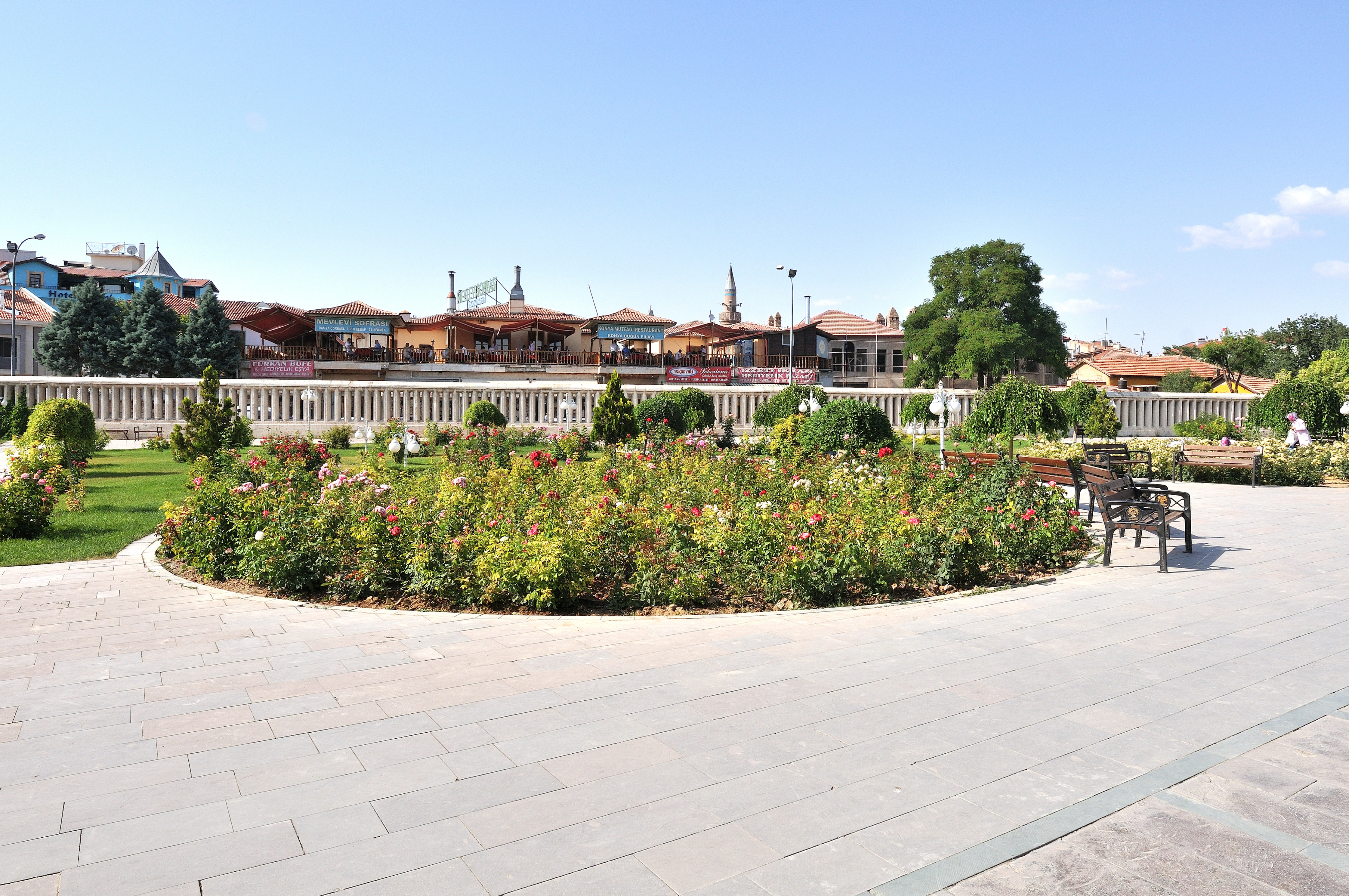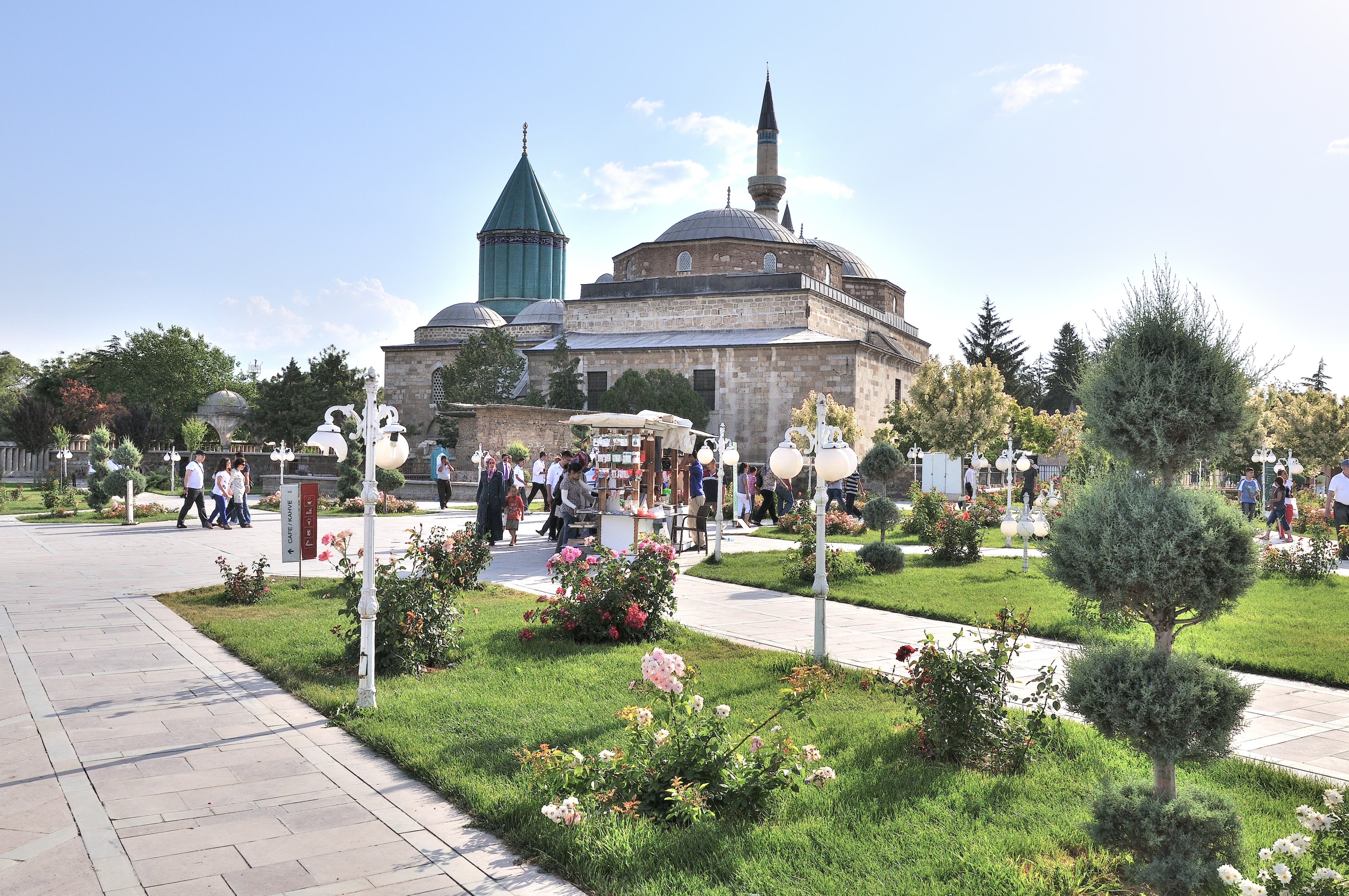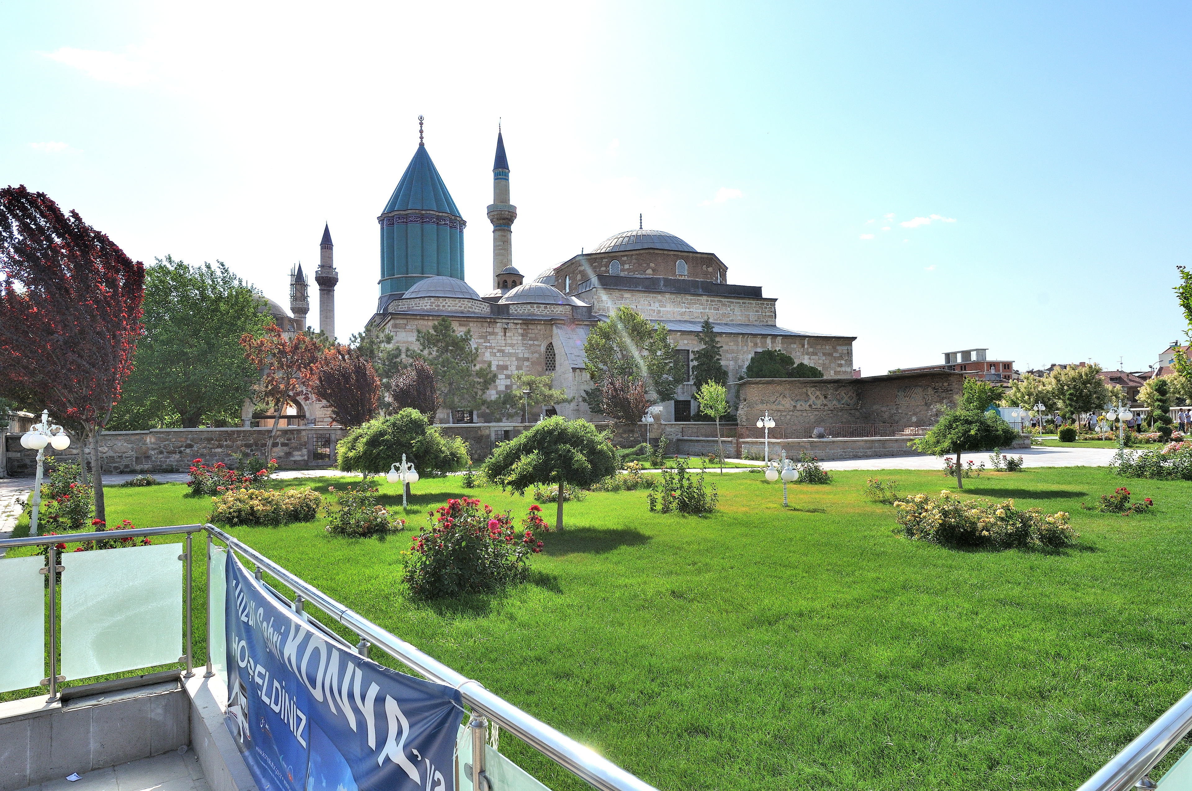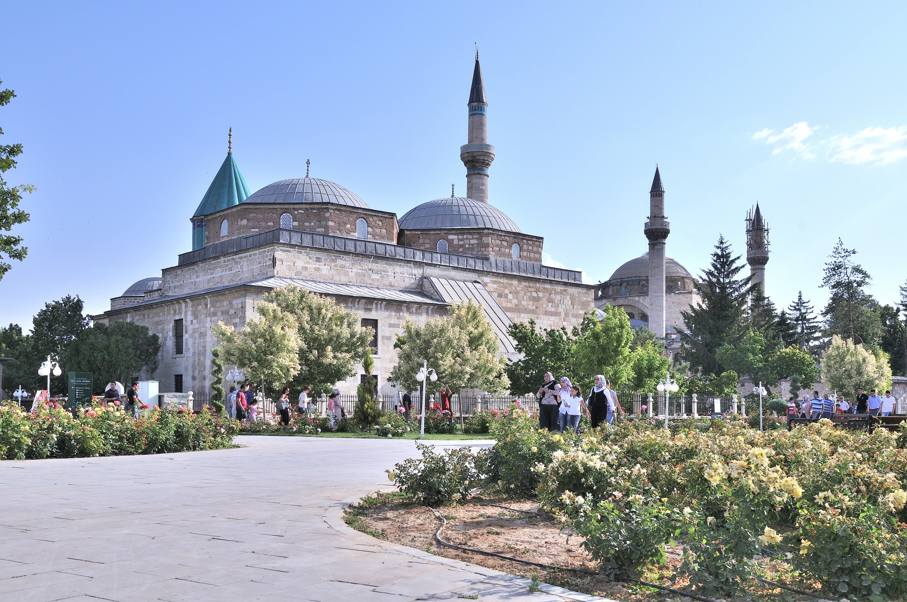 | メヴラーナ博物館 [Mevlana Müzesi] (17:37) 博物館の庭園。 かつて、この地はセルジューク朝宮殿のバラ園だった。 「南西」MAPLay. 3 M |