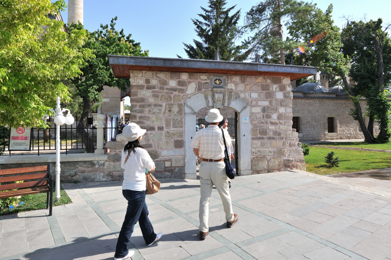 | メヴラーナ博物館 [Mevlana Müzesi] (16:54) セレビィアン門 [Çelebiyân Kapısı]* から博物館の中庭に入る。 「南」MAPLay. 3 A * "見取り図" (記号ⓒ) |