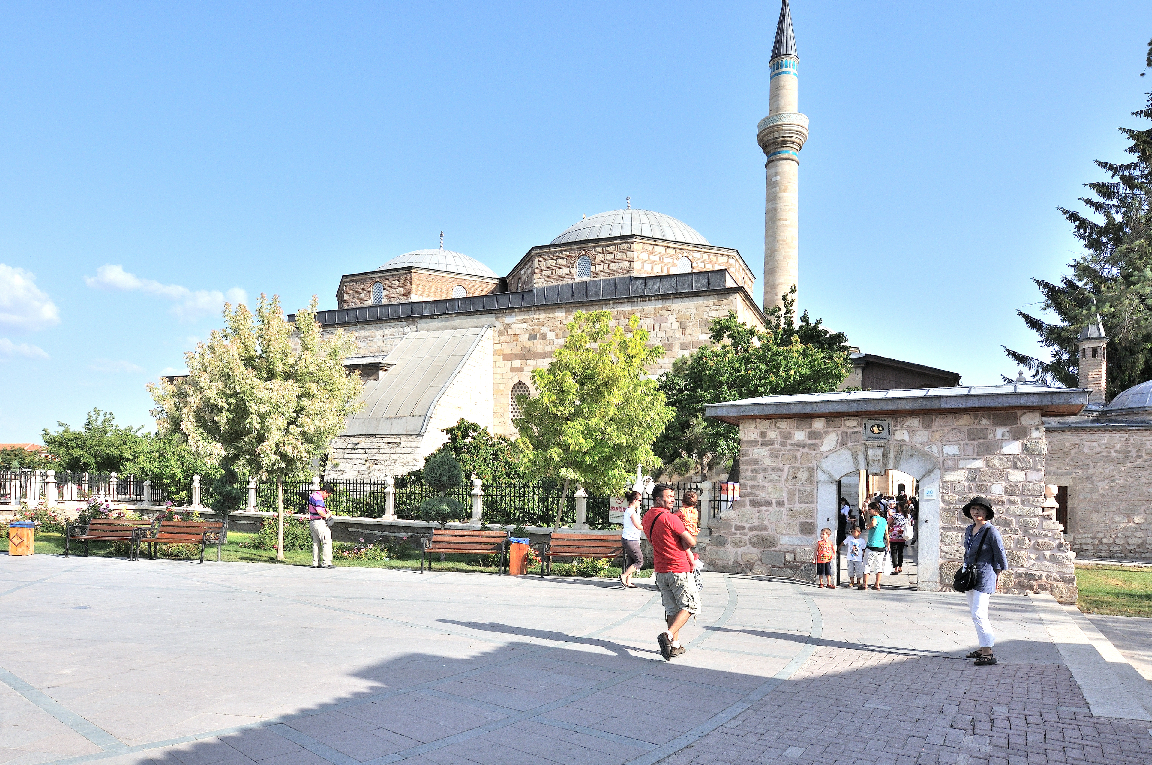 | メヴラーナ博物館 [Mevlana Müzesi] (17:33) 庭園から見る、博物館とセレビィアン門 [Çelebiyân Kapısı] 。 「南東」MAPLay. 3 I |