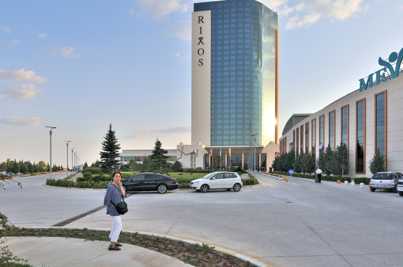 | リクソス コンヤ [Rixos Konya] 100,000uの敷地内に位置するコンヤの5つ星ホテルで、コンヤで一番目立つホテル。 無料駐車場、屋外スイミングプール等が備わっている。 本日の観光が終わり、再びホテルに戻る。 (チェックインを済ませた後、観光に出かけていた。) |
